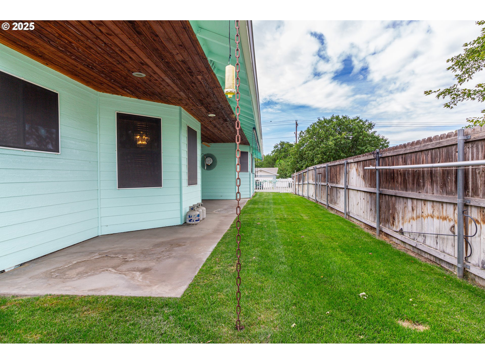 Welcome home!! Upon entering this 3 bed 2 bath home you will be greeted by a large living area along with tons of natural light, formal dining space, the kitchen is equipped with lots of cabinets, breakfast nook and family room. Double sinks in both primary and 2nd bathrooms. Huge primary suite with walk-in closet. Step outside to a private backyard with covered patio, sunshade to block evening sun fully landscaped with TUGS. Park your toys in the triple car garage and even a dedicated space for RV parking. All on a corner lot right in the heart of Hermiston AND...... a front row seat for annual fireworks.