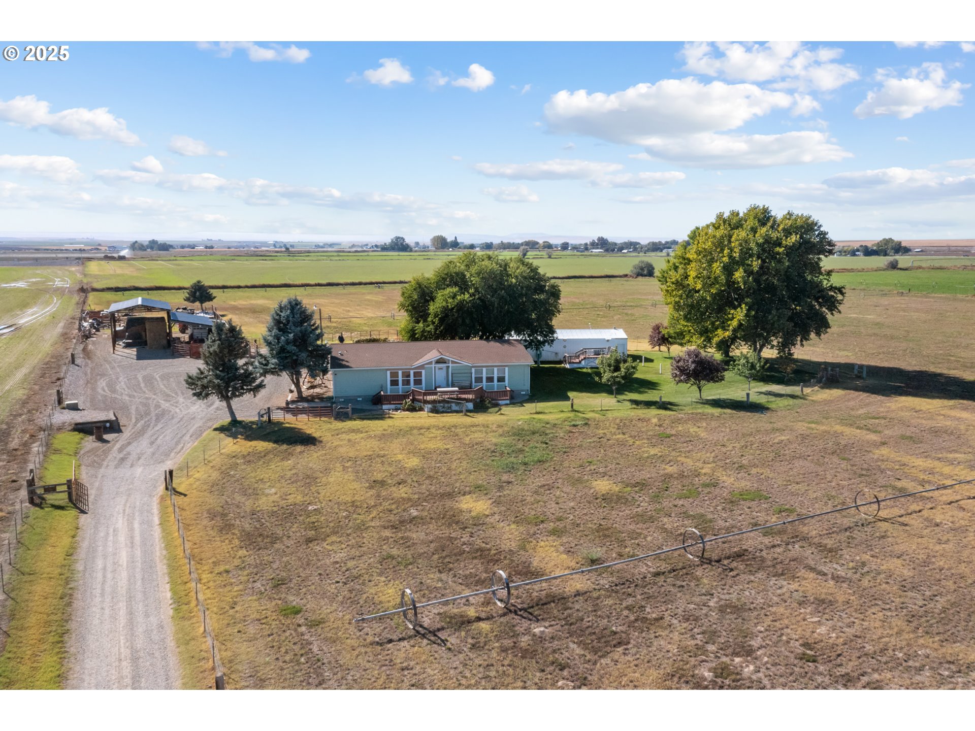 Welcome home to this Spacious 2400 sq ft Triple wide on 19.54 Acres with Water Rights and Outbuildings. This well-maintained 3 bedroom, 3 bathroom. 1994 home offers generous living space with an open-concept floor plan and a fenced yard. Recent updates include a new HVAC condenser in 2023, ensuring year-round comfort. Sitting on 19.54 acres with 19 acres water rights through Stanfield Irrigation District, this property is perfect for farming, livestock, or equestrian use. Outbuildings include a 2,016 sq ft - 90 ton hay storage structure and an oversized 40'x60' garage/shop, providing ample space for equipment, vehicles, or projects. Bring your animals, hobbies, and vision - this property offers the freedom and space to create your ideal country lifestyle. This is a hard to find property with 4 wheel lines supplying water to the fields. Irrigation pipe, irrigation equipment, cattle working pens, and panels stay.