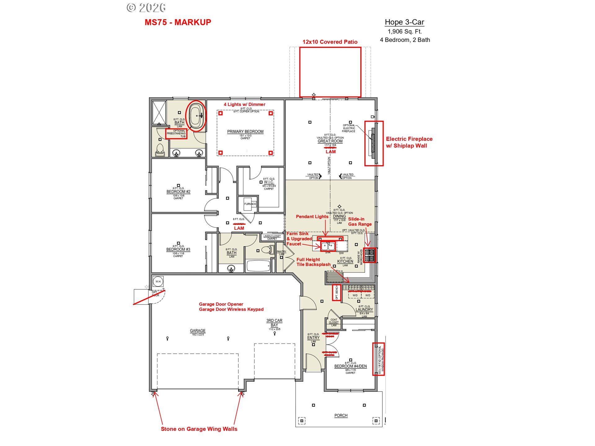 LOT:MS75 - Under construction - Estimated completion date July 2026 - This exquisite brand new 1906 SQFT one level home offers the perfect blend of contemporary design and comfortable living with breathtaking unobstructed views of the Columbia River. 4 bedroom 2 bath with luxurious primary suite with double sinks, shower, freestanding soaking tub, and spacious walk-in closet. Deluxe chef's kitchen with quartz counters, full height tile backsplash, large pantry, island, farm sink, and stainless steel appliances including gas range and dishwasher. The Hope plan in the desirable McClannahan Summit neighborhood in Umatilla OR. Built by award winning builder MonteVista Homes. Open concept living, vaulted ceilings, great room, 95% high efficiency forced air heating, air conditioning, dedicated laundry room, electric fireplace with shiplap accent wall, built-in bench, fully fenced, 3 car garage, and 12x10 covered patio.