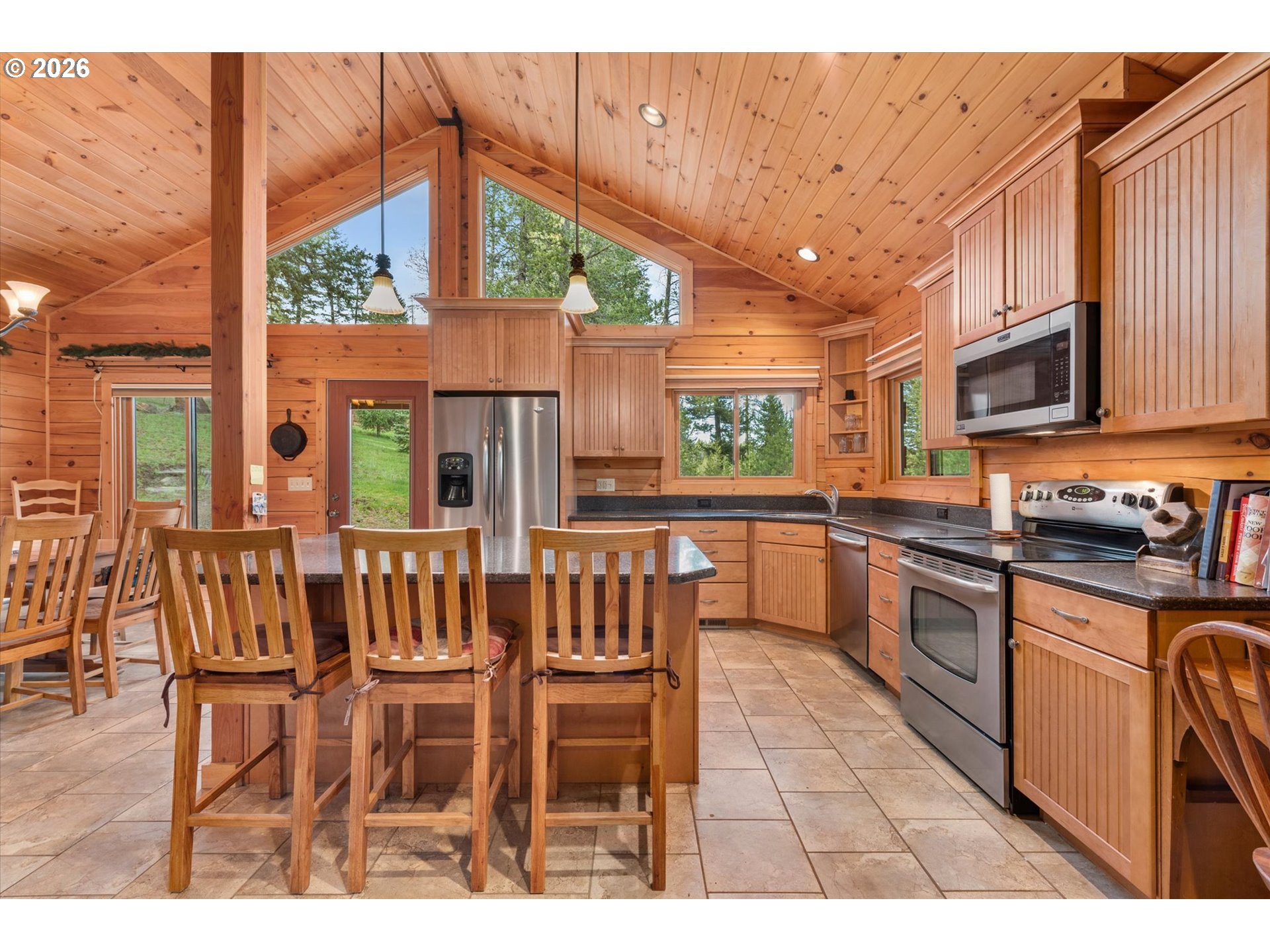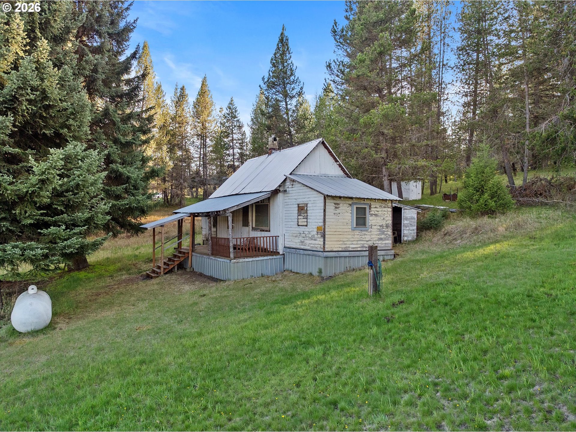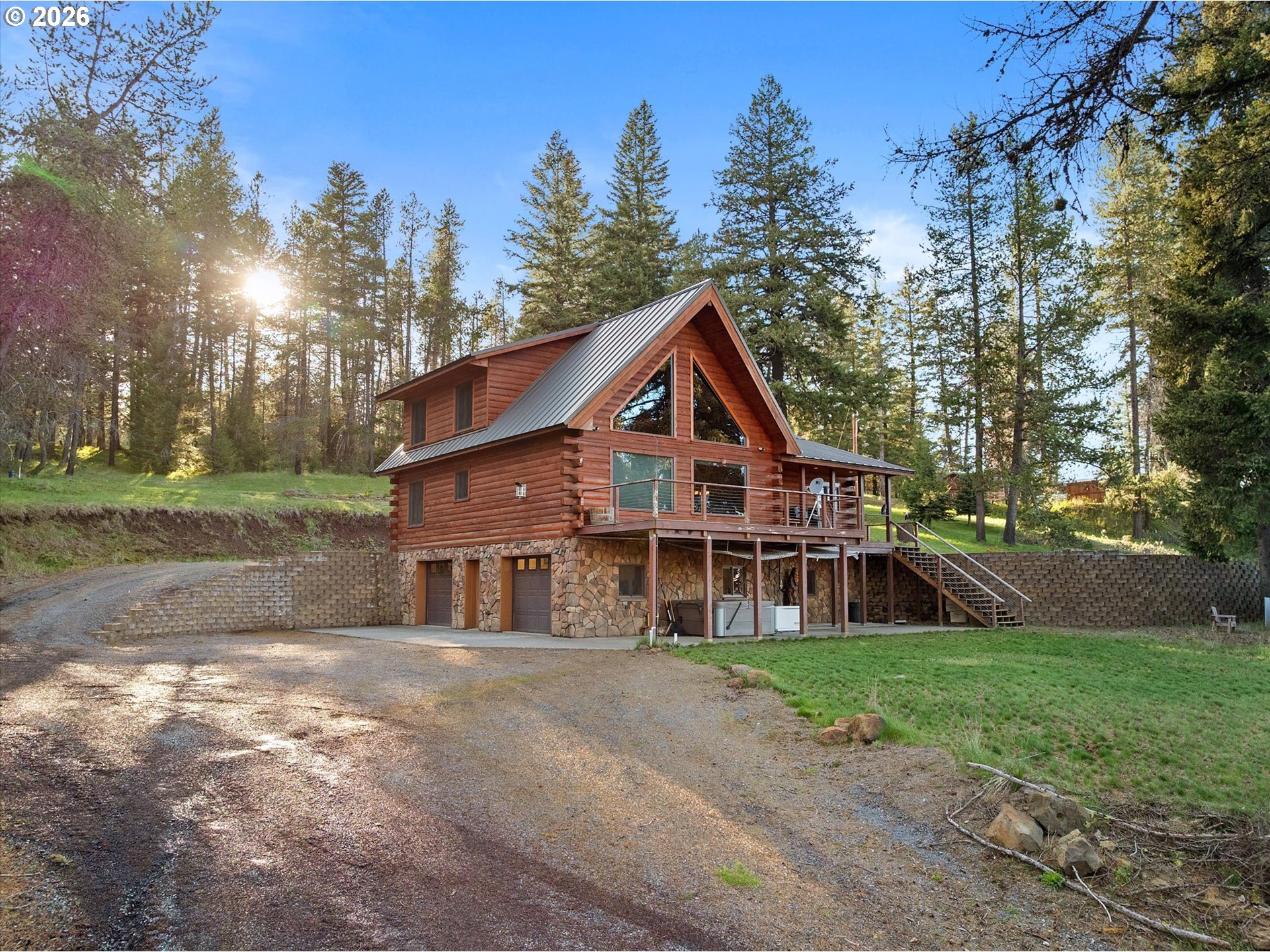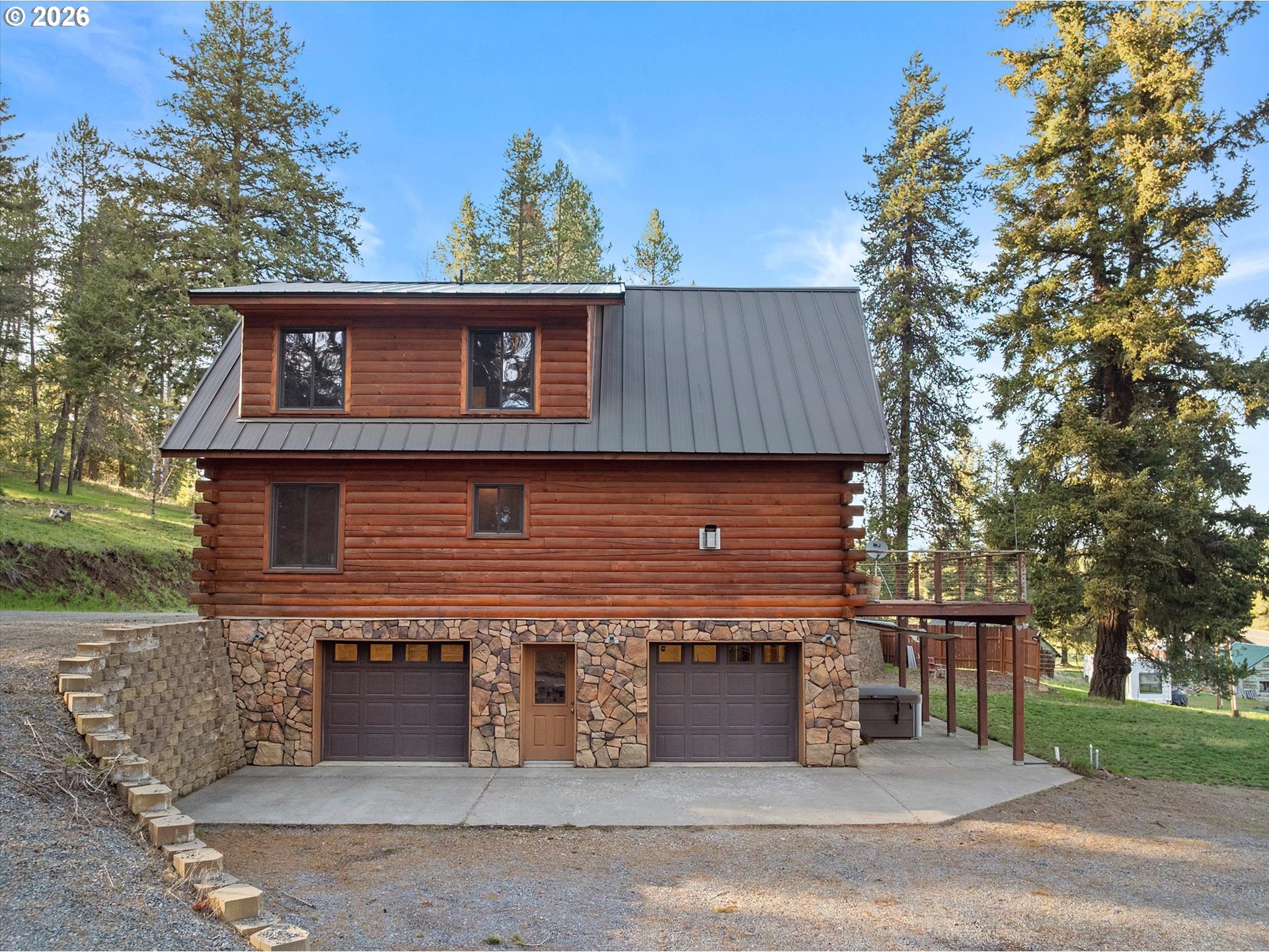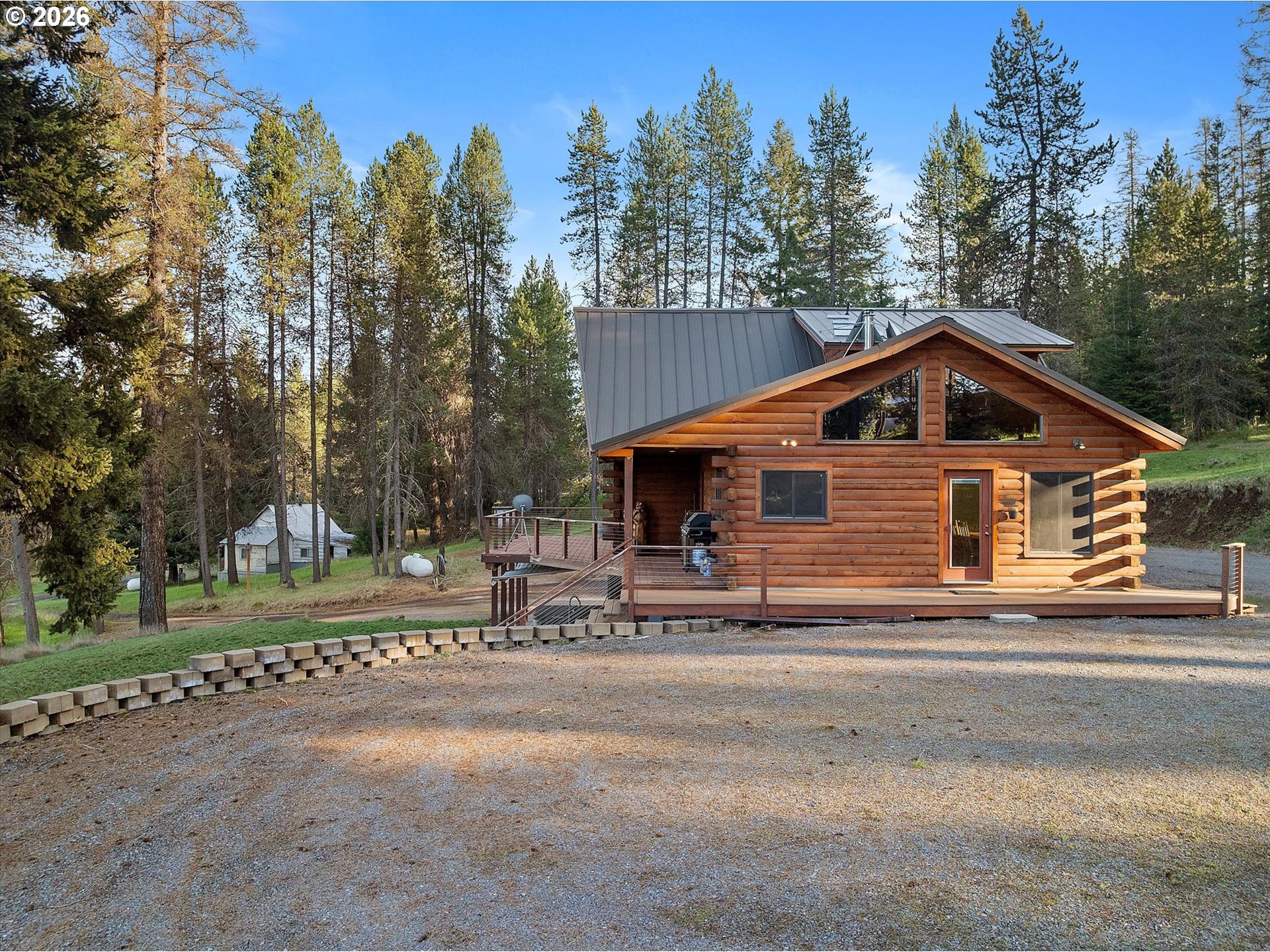 Enjoy mountain life in this custom log home that includes an additional lot and dwelling for a total of 4.88 acres! The home features an open floor plan with vaulted ceilings and stone fireplace, a spacious master suite in the loft, custom finishes, and a deck with a view. Don't miss the 1800 square foot shop with expansive room for covered parking and projects. If you have been looking for an escape in Meacham, Oregon, look no further!