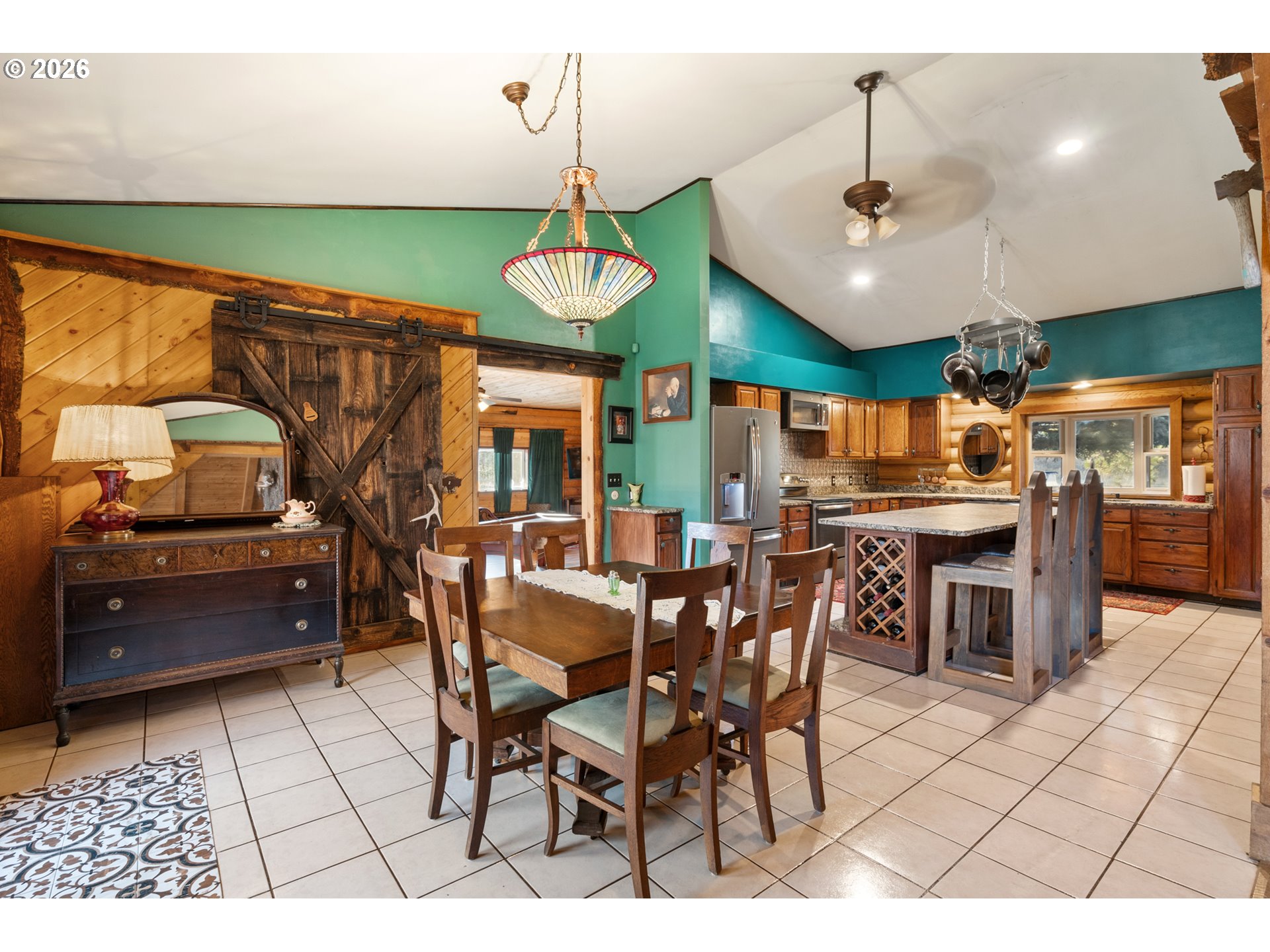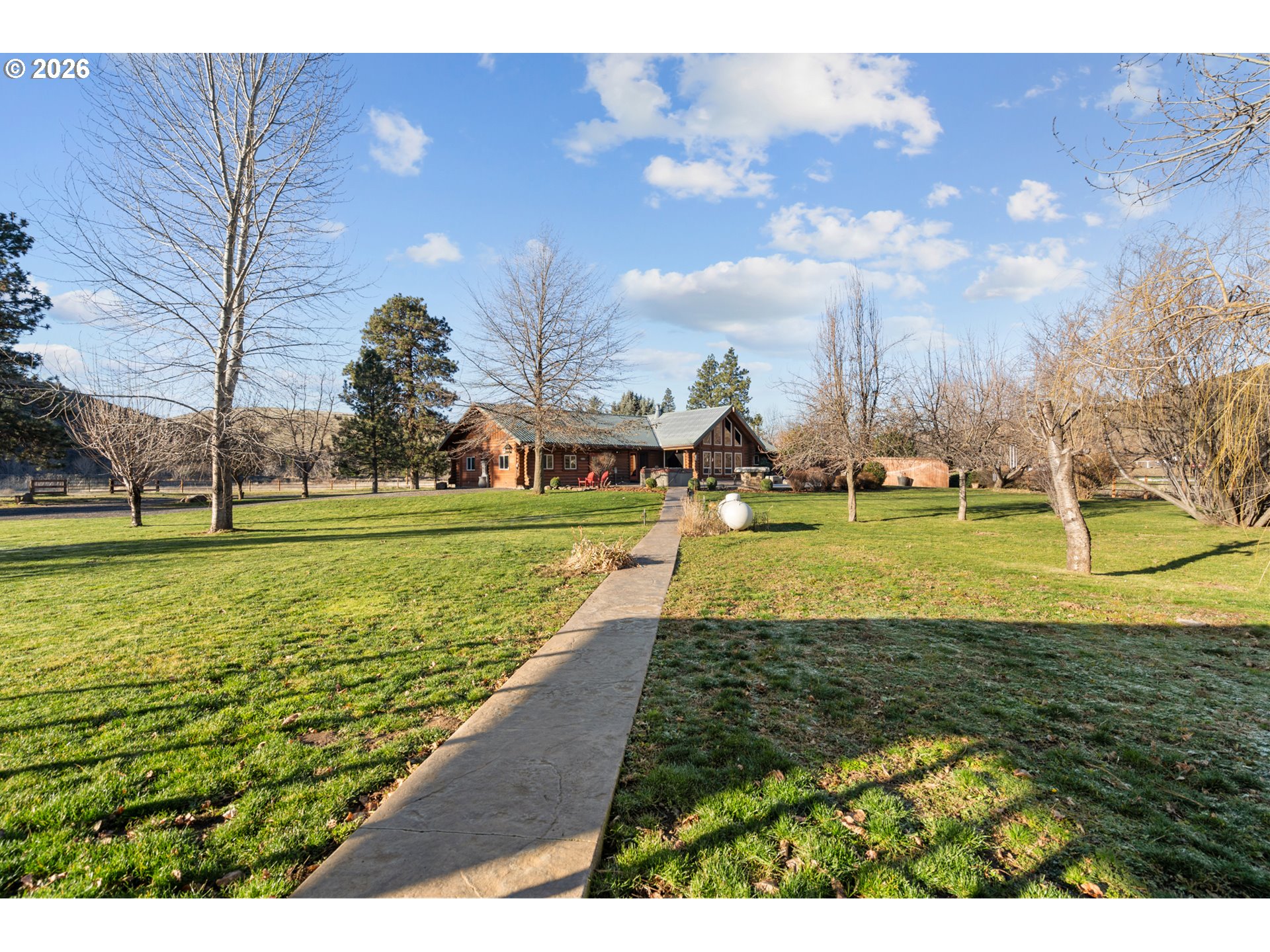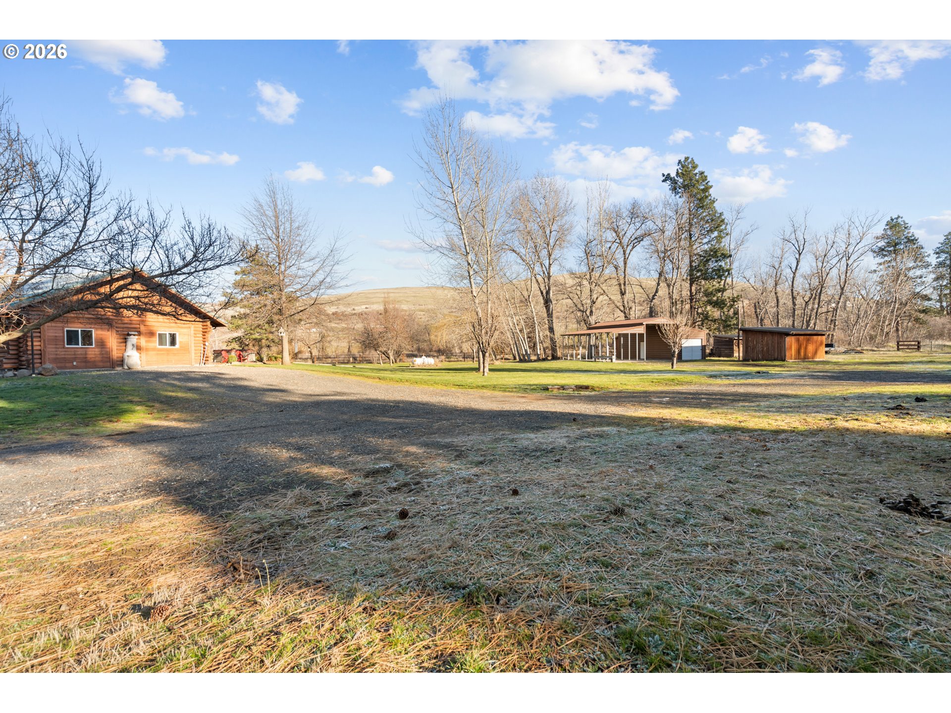 Nestled along the scenic banks of the Umatilla River in Eastern Oregon, this exceptional 3-bedroom, 2.5-bath log home offers a rare blend of luxury, privacy, and outdoor adventure. Encompassing 2,726 square feet (m/l) of thoughtfully designed living space, the home showcases high-end finishes throughout and is perfectly situated on 38 (m/l) breathtaking acres with panoramic views of the surrounding mountains and river valley.The heart of the home is the stunning great room, featuring vaulted ceilings and an impressive 15-foot stacked stone fireplace with a Blaze King insert—both a striking focal point and a cozy gathering place. Comfort is assured year-round with central heat and air conditioning via heat pump, propane backup, and the wood-burning fireplace. The large chef’s kitchen is ideal for entertaining, boasting granite countertops, two spacious islands, and premium finishes. Beautiful stained-glass light fixtures add character and warmth throughout the home.Outdoor living is just as remarkable. Enjoy an oversized back patio with heated concrete walkways, a hot tub, and a full outdoor sound system—perfect for relaxing or hosting guests in any season. The gated driveway and fenced yard provide privacy and security, while a four-car detached garage and covered RV storage offer ample room for vehicles and toys. The property also includes a chicken coop, artesian well, established fruit trees (apple, pear, cherry, and plum), and Starlink equipment for reliable connectivity.This property is a haven for nature lovers, with fishing, hiking, and bird watching right outside your door. Deer and elk hunting opportunities await higher in the Blue Mountains, just an hour away. Whether you’re seeking a peaceful retreat, a luxury homestead, or a base for outdoor recreation, this extraordinary riverfront estate delivers it all.
