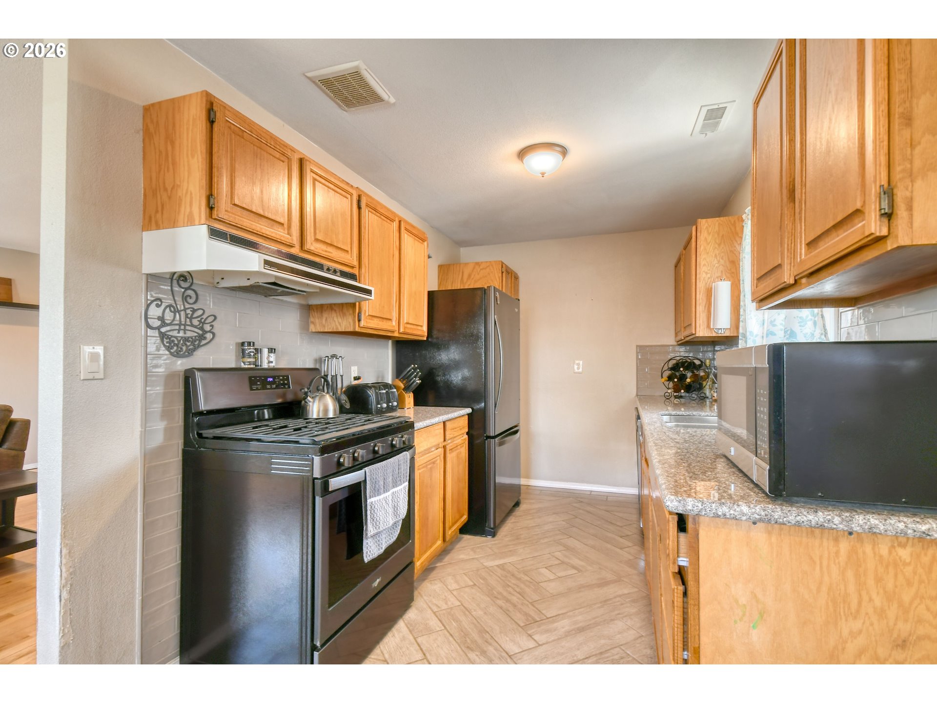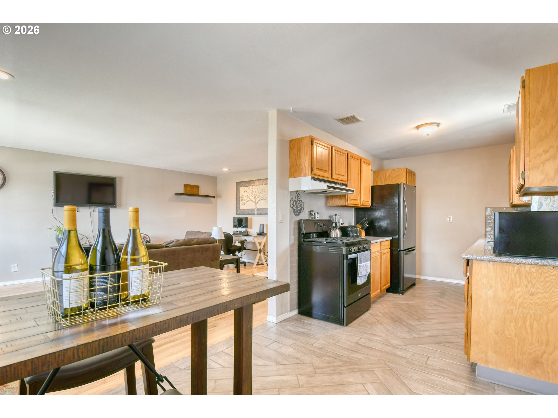 Rare Find: Modern Elegance & Sunset Views Under $280k! Searching for the perfect 3-bedroom, 2-bath home with an attached garage? This gem checks every box. Step into a light-filled living room featuring vintage hardwood floors and a wall of windows designed to capture breathtaking sunset views. The flow is seamless, with a dedicated dining area connecting to a chef-inspired kitchen. You’ll love the premium updates, including sleek quartz countertops, custom hardwood cabinetry, and a 5-burner gas range. Throughout the home, modern touches abound—from energy-efficient vinyl windows to a contemporary door and trim package. Retreat to the primary suite, complete with a private, convenient ensuite bath. Outside, the property offers a fully fenced backyard, an oversized BBQ area perfect for entertaining, and plenty of parking for guests or toys. Call Today!