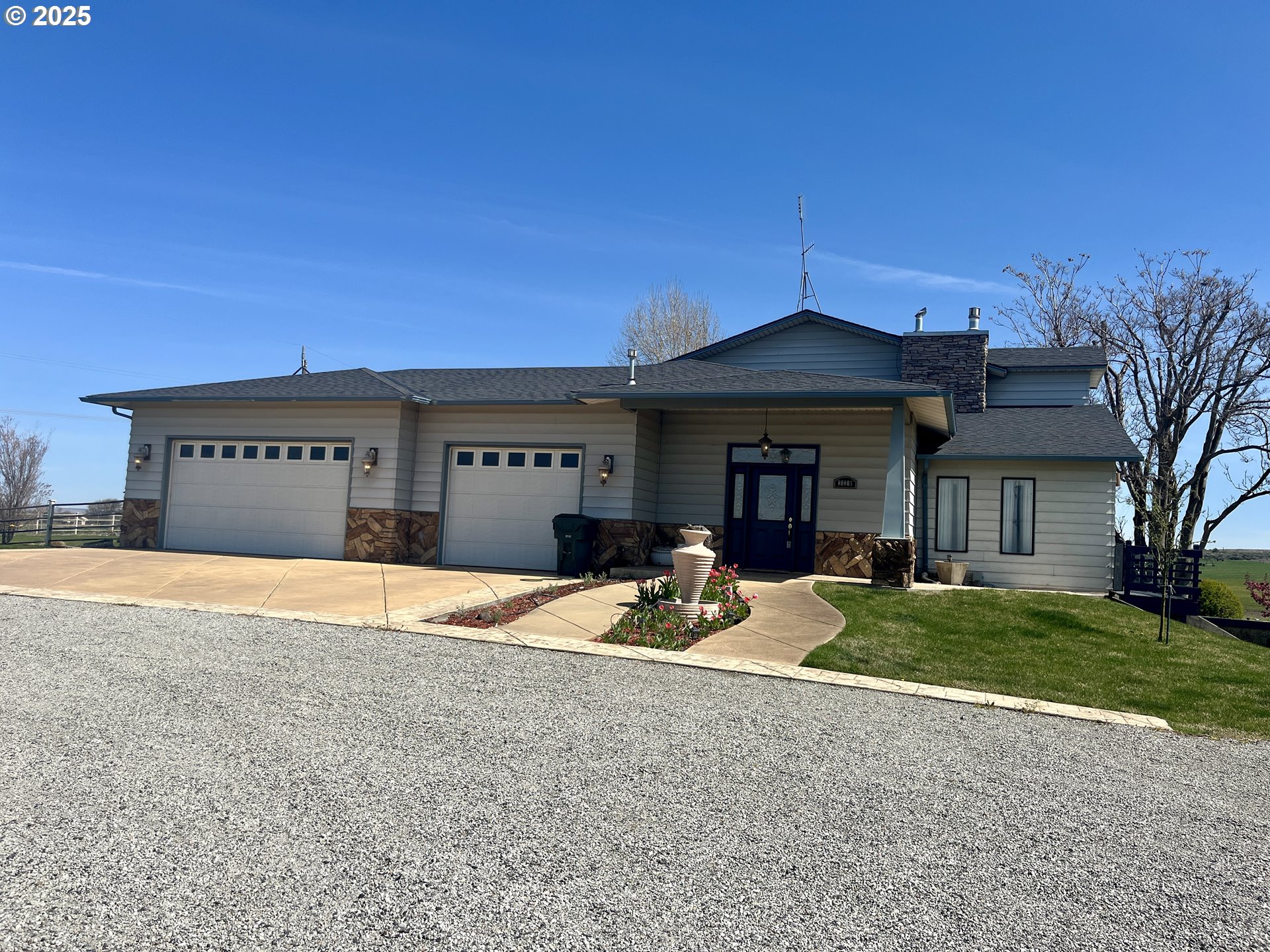 Welcome to your own slice of paradise. situated on 4.69 irrigated acres in a beautiful Country setting. This custom craftsman home offers breathtaking sunrise and sunset views, perfect for unwinding after a long day. With 3 bedrooms and 2.5 baths, this home is perfect for families or those who love entertaining. The modern kitchen features SS appliances, quartz countertops, and a cook island, ideal for preparing delicious meals, complimented by formal dining and a separate eating nook. Beautiful Hardwood floors, chandeliers, and a see-thru fireplace greet you as you step out of the foyer. The primary bath suite boasts a luxurious walk-in shower, a garden tub, and a spacious walk-in closet. The Primary bedroom offers a large area with room for bedroom furniture and a personal sitting area. Step outside to your private deck and enjoy morning coffee, the sunrise views, and beautifully landscaped grounds. The lower level offers a cozy family room setting with a fireplace, two large bedrooms, a gorgeous bathroom, and a bonus room perfect for those family game nights. Enjoy the covered deck off the kitchen area, which is perfect for barbecues and entertaining friends and family, or relax by the fire pit in the charming gazebo. The home also includes an elevator, making easy access to all levels. Exterior amenities include a shop, with an attached room with large opening glass doors, that contains a swim spa and sauna for your enjoyment. Surrounded by nature, you'll often spot wildlife roaming nearby. Don't miss your chance to own this stunning home with all of its features and unique location and features!