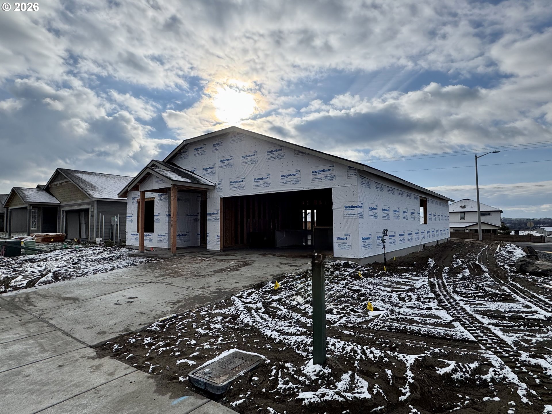 LOT:UM08 - Under construction - Estimated completion date April 2026 - This new 1553 SQFT one level home nestled on a spacious corner lot includes a deluxe chef's kitchen with quartz counters, island, and stainless steel appliances including gas range and dishwasher. Luxurious primary suite with large walk-in closet and ensuite with double sinks and shower. Additional stand out features include great room open design, soaring vaulted ceilings, 95% high efficiency forced air heating, air conditioning, electric fireplace, dedicated laundry room, and covered patio. The Sycamore in the desirable Upland Meadows neighborhood in Hermiston OR. Built by award winning builder MonteVista Homes.