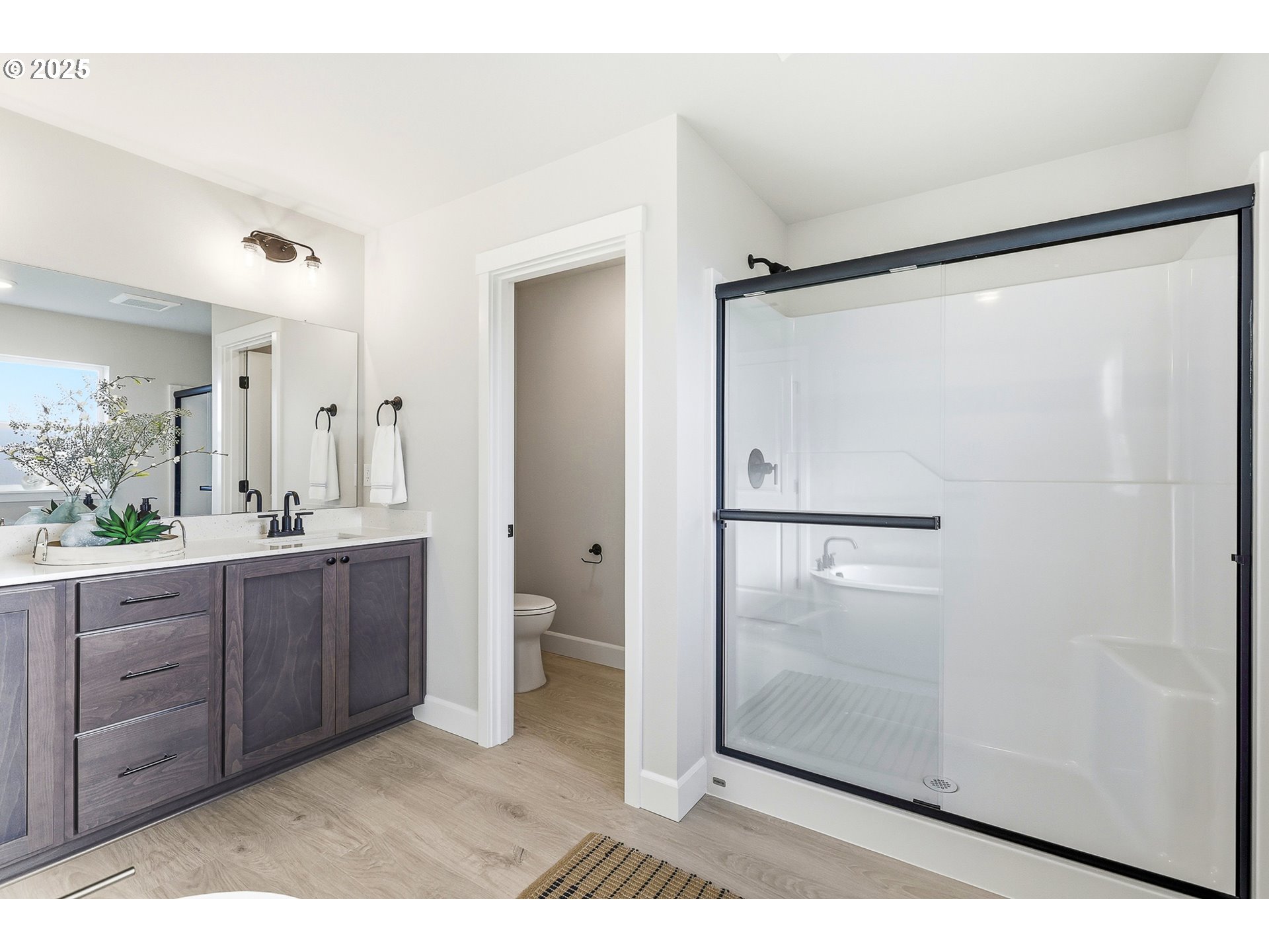 LOT:UM01 - MOVE-IN READY!!! This exquisite brand new 1906 SQFT one level home offers the perfect blend of contemporary design and comfortable living situated on a spacious corner lot. 4 bedroom 2 bath with luxurious primary suite with double sinks, shower, freestanding soaking tub, and spacious walk-in closet. Deluxe chef's kitchen with quartz counters, large pantry, island, farm sink, and stainless steel appliances including built-in gas range and dishwasher. The Hope plan in the new Upland Meadows neighborhood in Hermiston OR. Built by award winning builder MonteVista Homes. Open concept living, vaulted ceilings, great room, 95% high efficiency gas forced air heating, air conditioning, dedicated laundry room, electric fireplace with shiplap accents, 3 car garage, and covered patio.