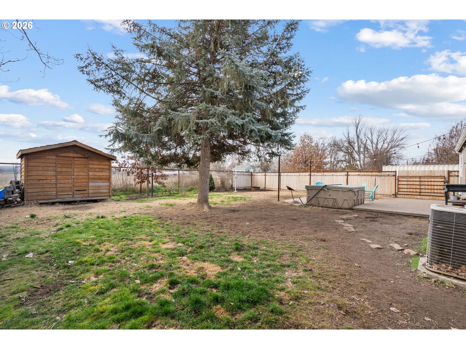 Enjoy peaceful small-town living with beautiful countryside surroundings in this 3-bedroom, 2-bath home offering 1,296 sq ft of comfortable living space in Echo.Situated on two tax lots, this property provides extra space and privacy while backing up to a neighboring farm field with a scenic hilltop vineyard in the distance, creating a relaxing rural feel.Inside, the home features a spacious living area perfect for gathering with family and friends.Step outside to a fenced yard with established trees and shrubs, offering shade, beauty, and room to enjoy the outdoors. The backyard also includes a patio and hot tub, making it an ideal place to unwind or entertain. A tool shed provides extra storage for yard equipment and hobbies.Located in the heart of Echo, this home is close to local wineries, shops, and the golf course, and is just a short distance from a great local school, making it a wonderful place to call home.This property offers the charm of country views with the convenience of nearby amenities.