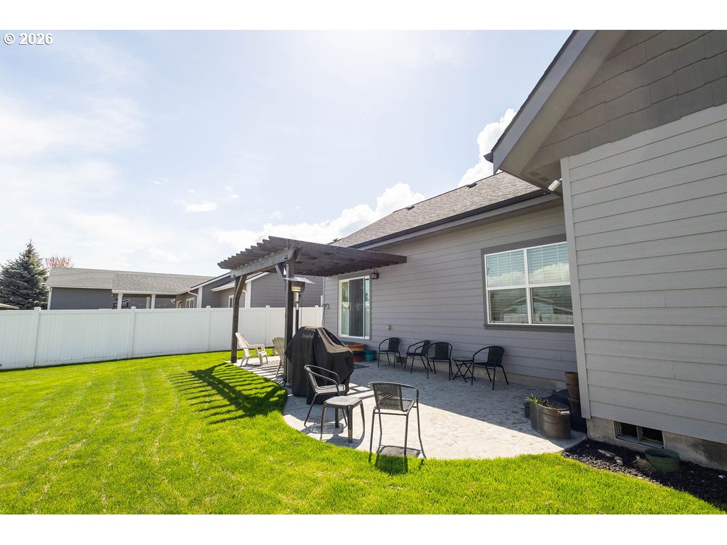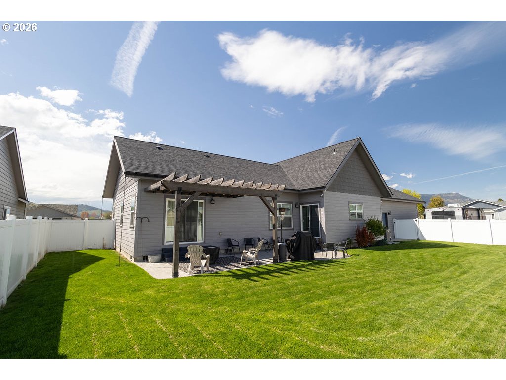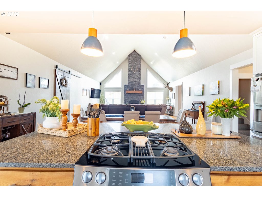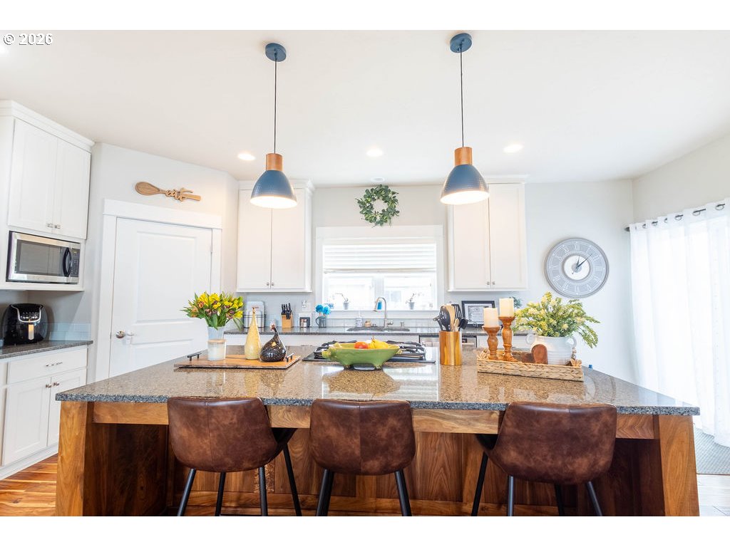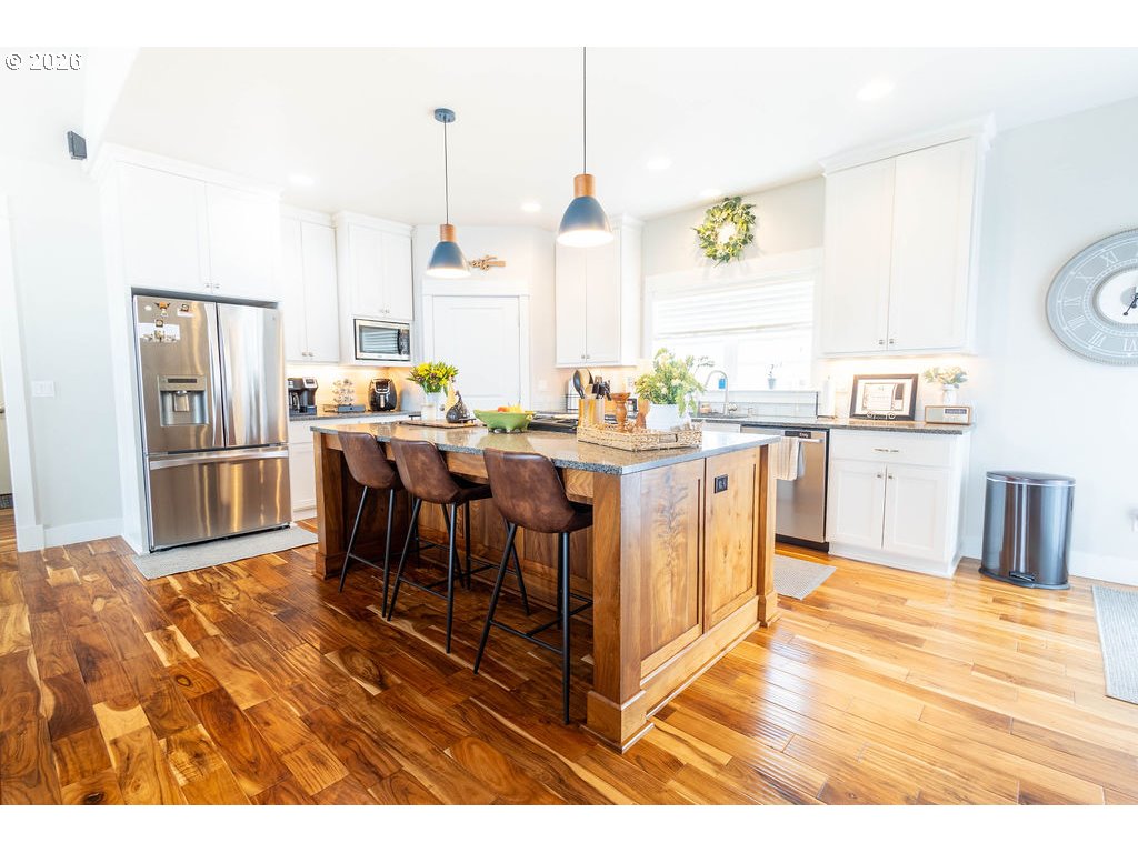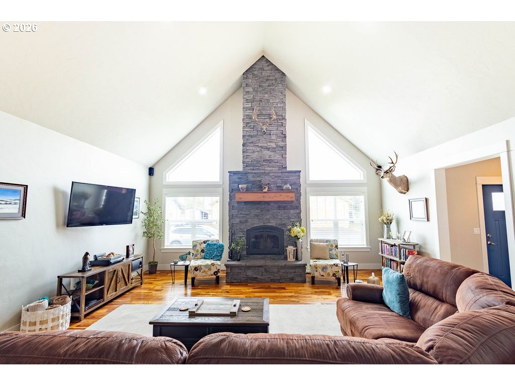 Stunning custom-built home on a spacious corner lot in a sought-after Island City neighborhood. The great room features a striking floor-to-ceiling rock wood-burning fireplace, rich acacia wood floors, and an oversized island designed for effortless entertaining. A 422 sq. ft. bonus room offers flexible upscale living space, while the oversized garage provides ample room for vehicles, storage, and projects. The fully fenced backyard is thoughtfully landscaped with a sprinkler system and showcases a concrete patio with pergola—perfect for elevated outdoor living and entertaining.