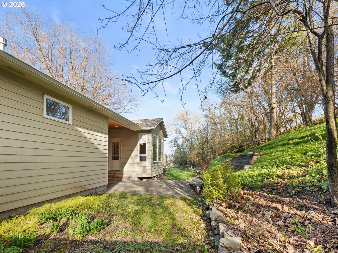 Privacy in town! Situated on just over a quarter acre on a double lot in a tucked-away South La Grande location, this property offers both space and convenience. Set at the base of a gentle hillside, the home has an attractive setting and a beautifully arranged yard with a sense of privacy while still being well within city limits. The home is well-built and exceptionally maintained with 1,604 sq ft, featuring quality finishes throughout, including hickory hardwood floors, slate flooring in the entryways, and an abundance of natural light that fills the living spaces. Large windows showcase the surrounding yard and hillside setting, creating a bright and inviting atmosphere. Outside, the thoughtfully designed yard provides plenty of room to enjoy, with wonderful landscaping and lots of space. Call your realtor today!