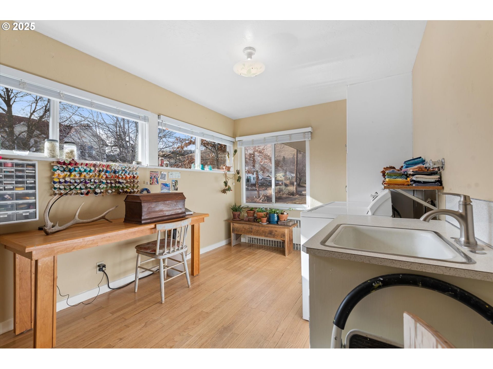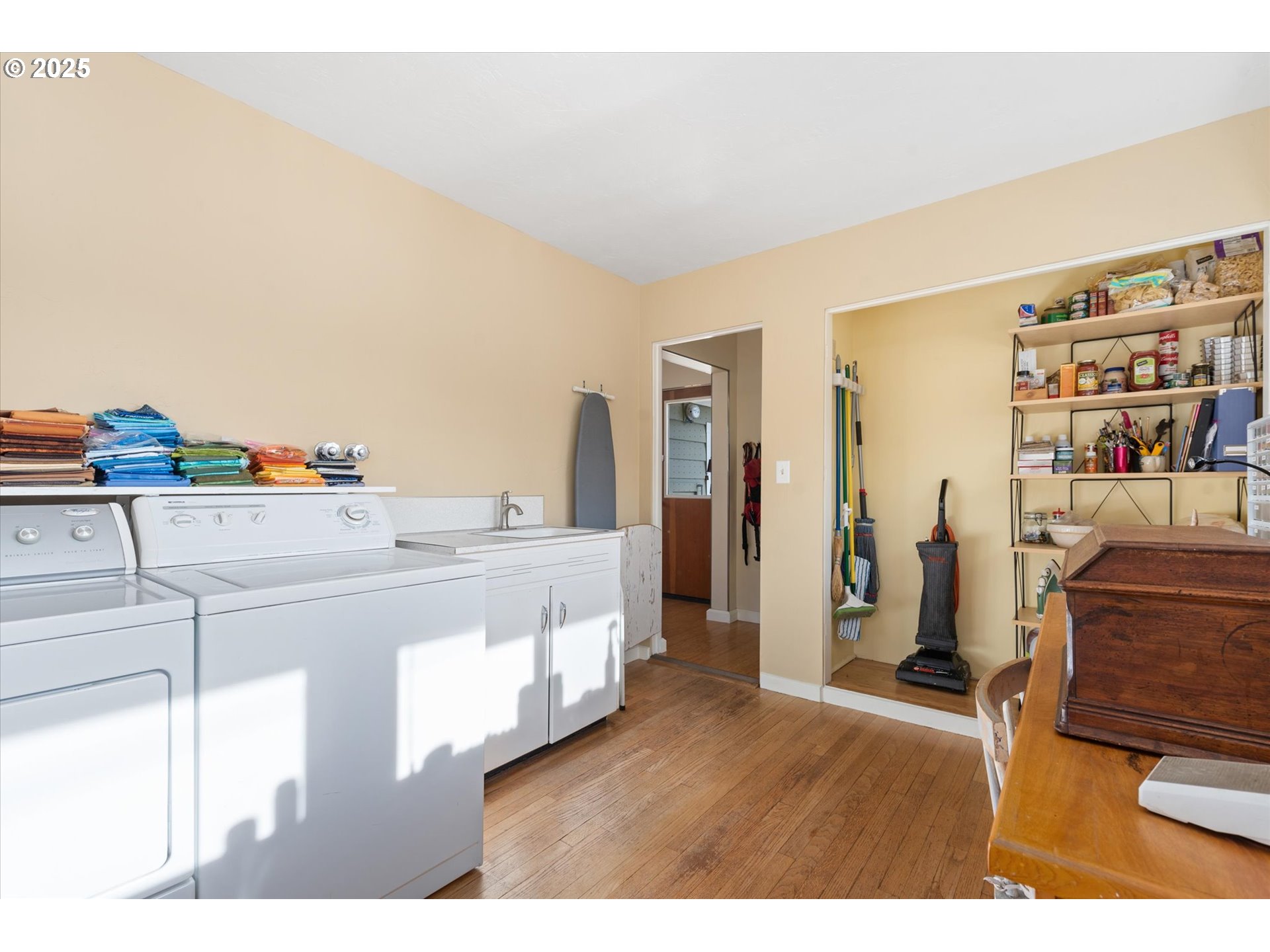 Discover timeless elegance and modern convenience in this meticulously maintained 3-bedroom,3-bath custom one-level home, built in 1949. This classic home boasts original hardwood floors that add warmth and character, complemented by a cozy wood burning fireplace., windows have been updated through out. Each of the 3 bathrooms features custom original tile work. Beyond the main living areas, you'll find a versatile bonus room, ideal for a home office, media room or hobby space, and a partial basement providing ample storage or potential for future expansion. Parking is a breeze with a double car garage. situated on a large corner lot with additional storage shed with electricity, underground sprinklers. Enjoy private outdoor living on the back patio complete with a small fenced area, perfect for pets or a secluded garden retreat, Seller won the City of La Grande's spring landscaping beautification award. Gardens bloom from early spring to frost.