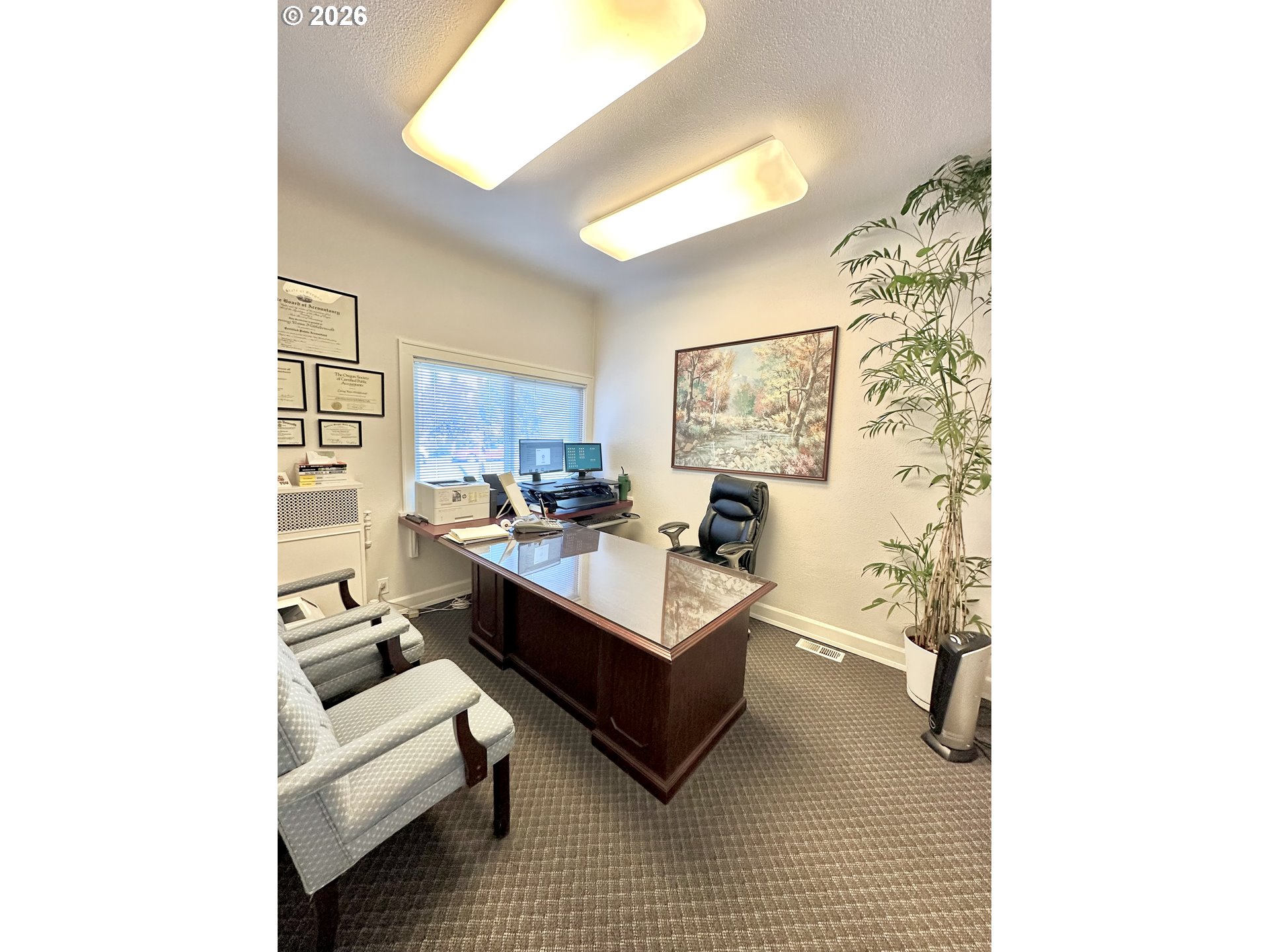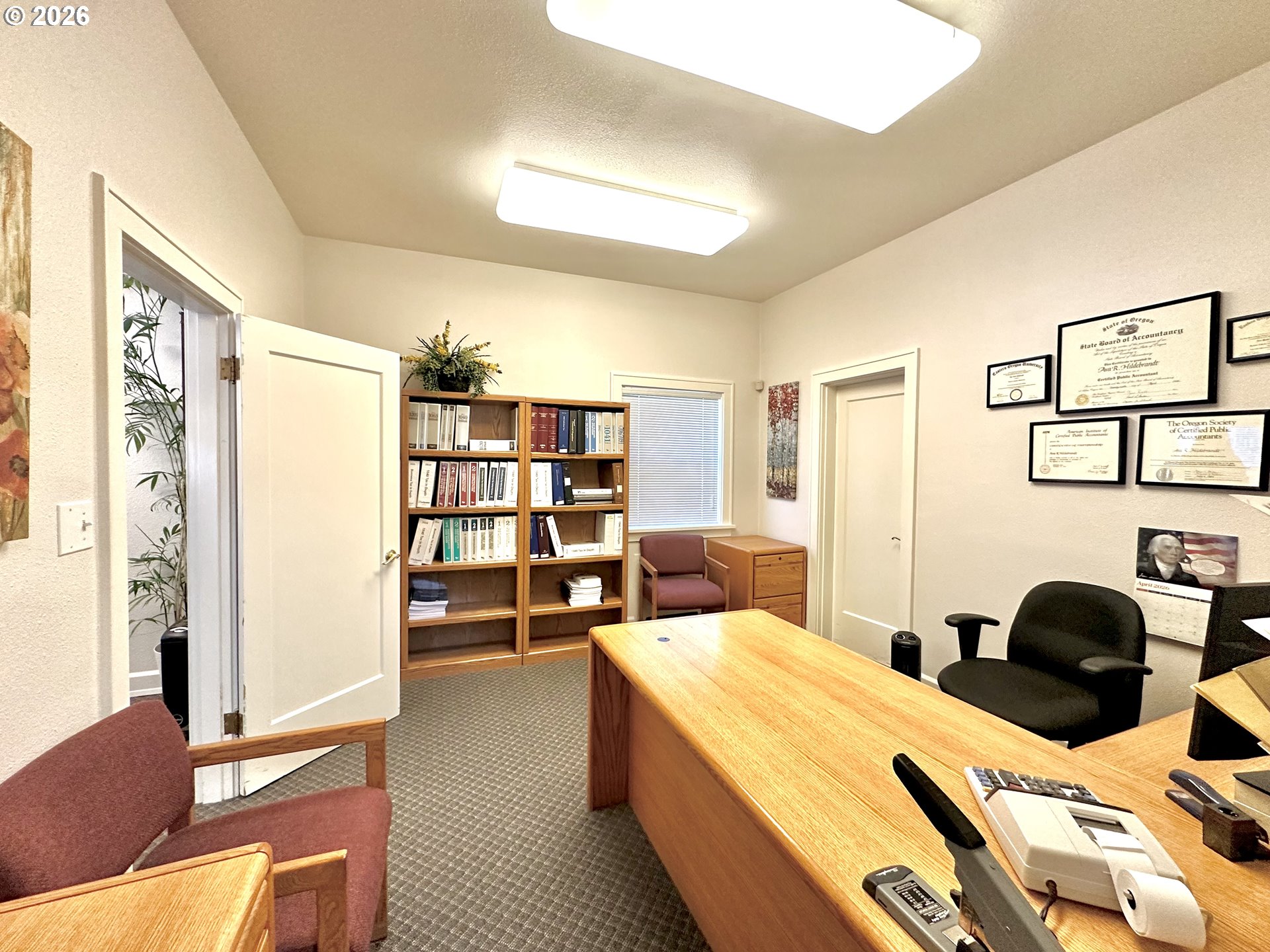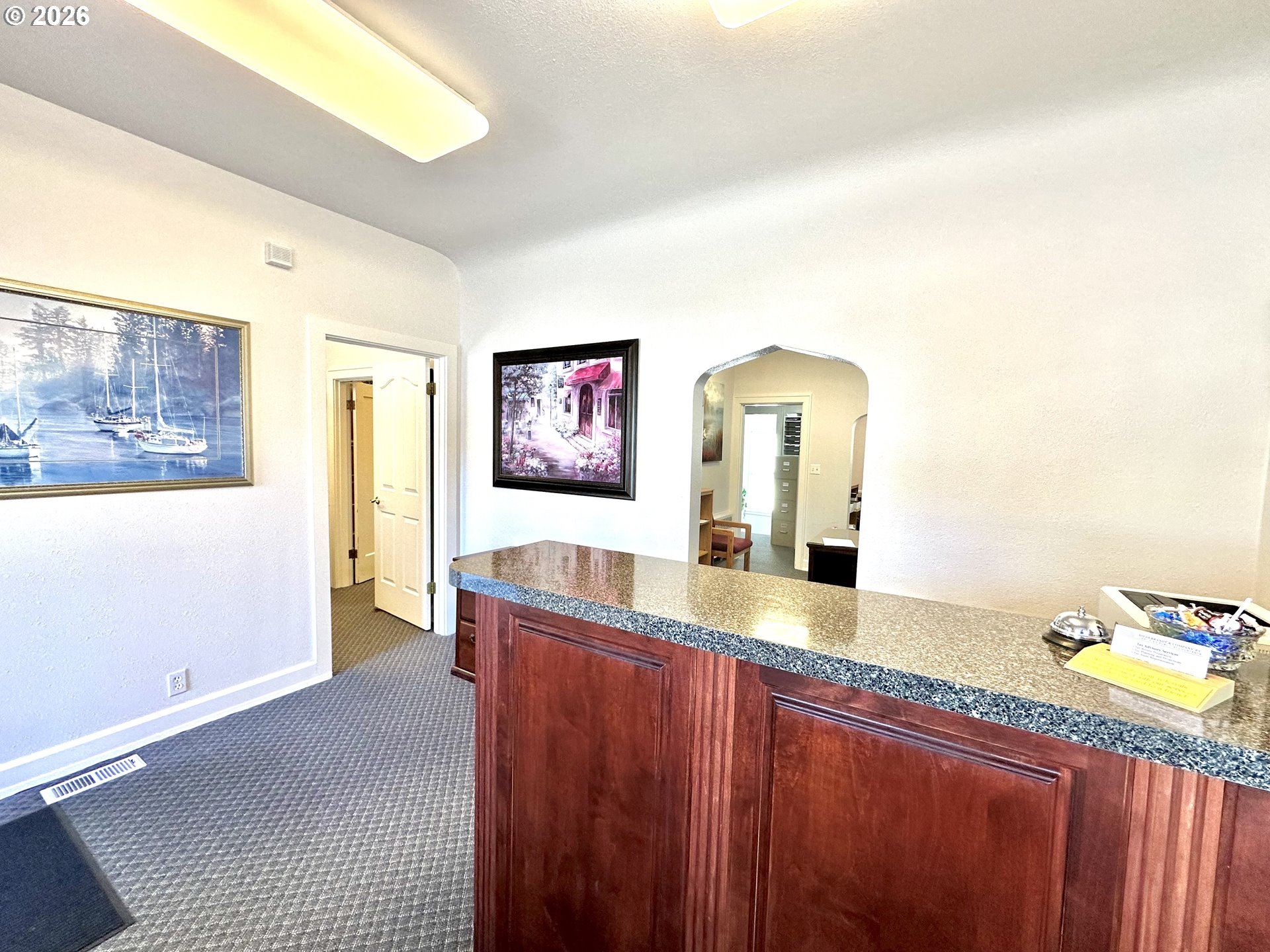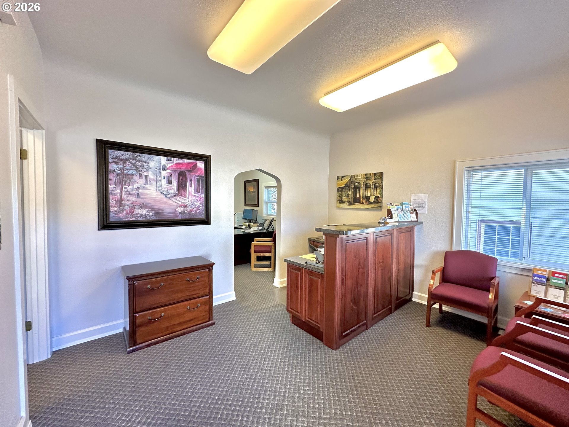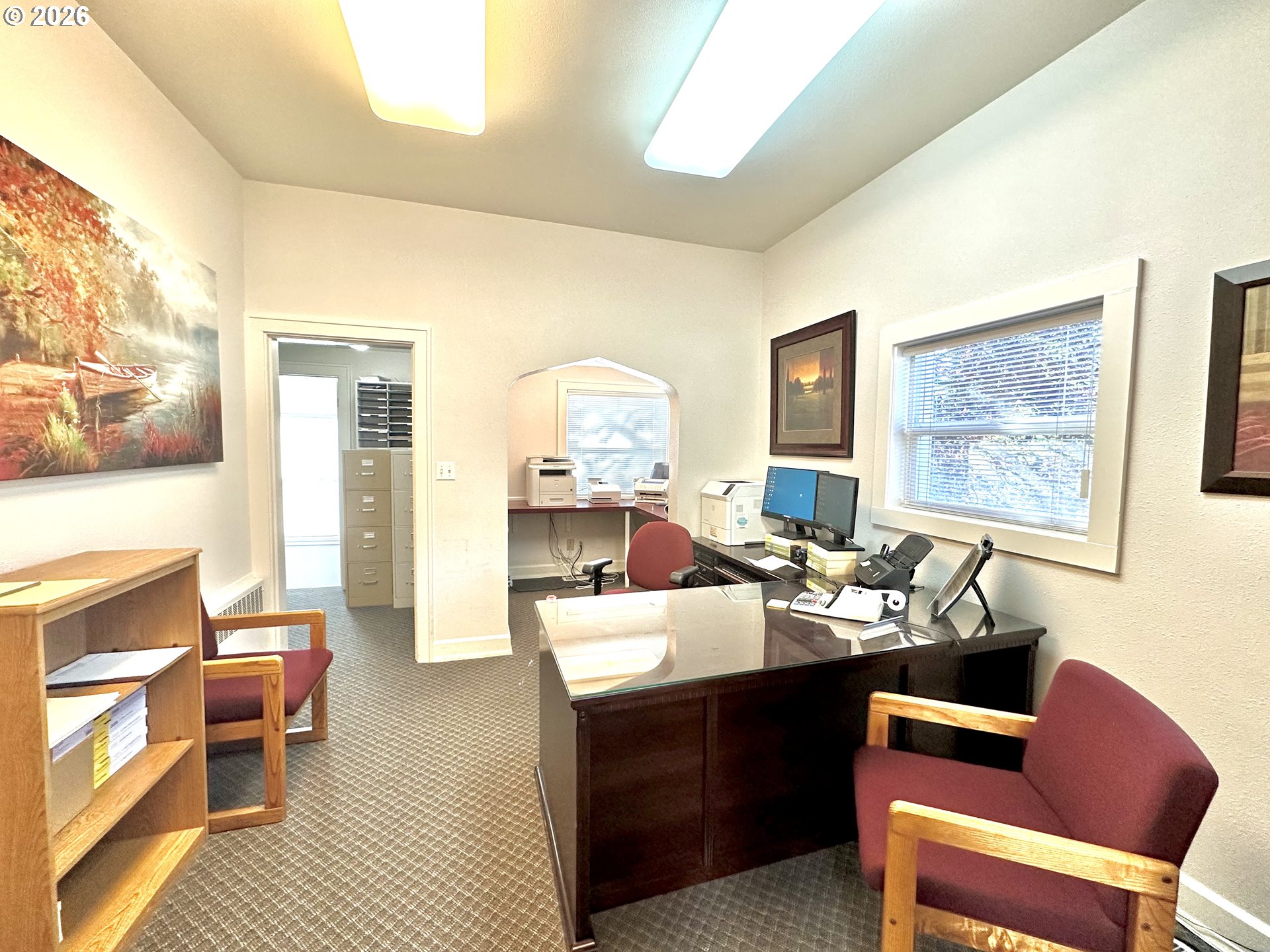 Opportunity meets charm in this unique La Grande, Oregon property full of possibilities. Originally built as a residence and thoughtfully transformed into a professional office, this Residential/Professional zoned space offers the flexibility to continue as a business location or potentially be converted back into a home. Filled will natural light and inviting character, this property features two full bathrooms, a full finished basement with kitchenette and plenty of room for storage or more office space, and convenient off street parking. This property is currently set up with a lovely front reception area, two dedicated office spaces with closing doors, and additional space used for office equipment and more. Its prime location near downtown provides excellent high traffic visibility, making it ideal for a variety of professional, retail, or work uses. Whether you're searching for a charming office, an investment opportunity, or a property with future versatility, this is one you won't want to miss! Buyer to do due diligence on zoning use options.