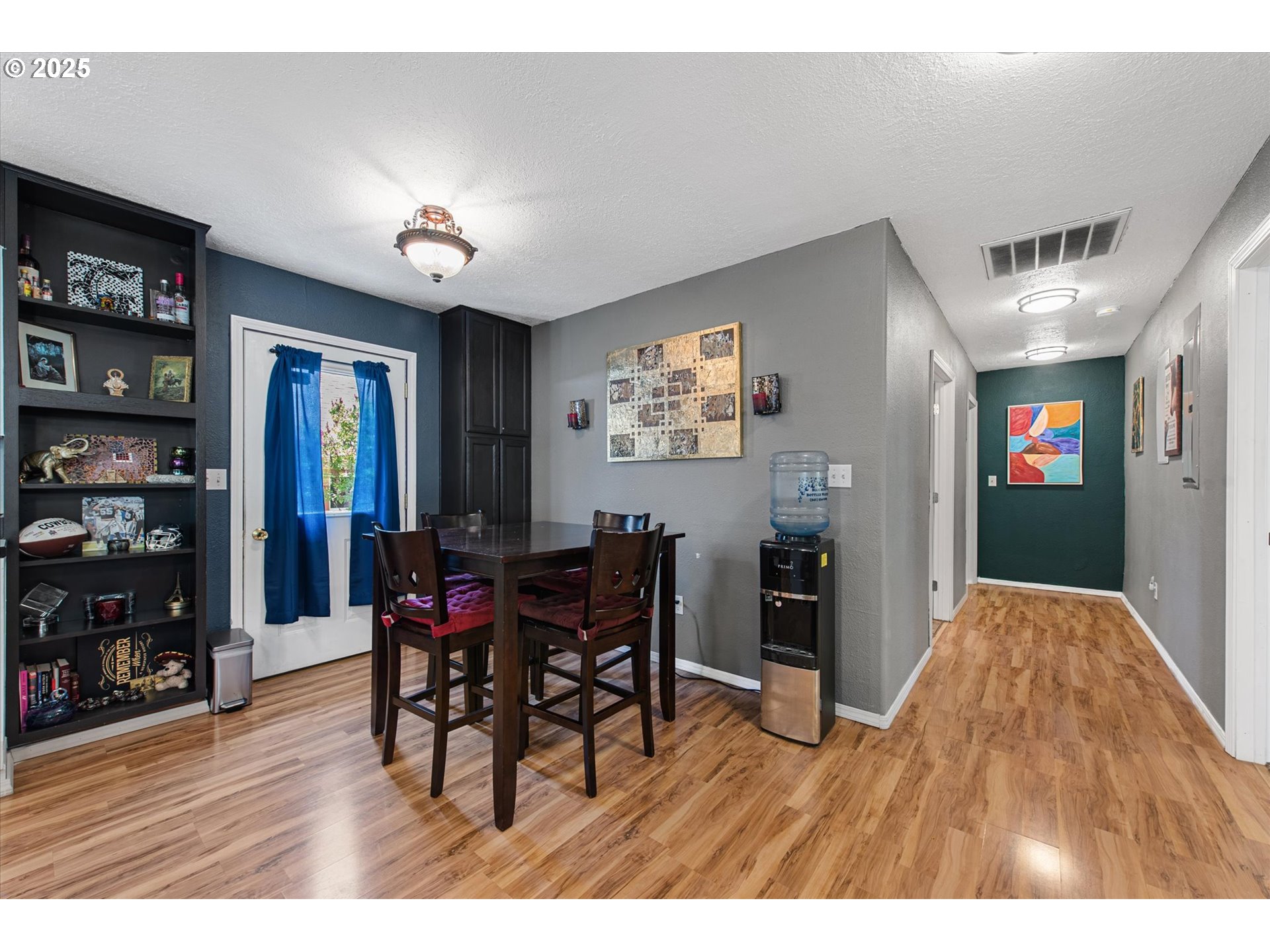 This 1635 sf 1 level home is loaded with personality. Located in a wonderful established neighborhood with tree lined streets. The owners have created a primary suite with walk in closet and a very nice full bathroom. There is a second bedroom plus there is a second updated bathroom in the hall. Depending on your need the 3rd bedroom could be a family room. The galley kitchen has a breakfast bar and opens to the dining area. Welcome to La Grande and your access to downtown within minutes, all age level schools are close by, EOU and Grande Ronde Regional Hospital. Then just minutes to Morgan Lake a bit farther to MERA outdoor trails and on to all Eastern Oregon has to offer. The owners have upgraded the plumbing to PEX, HVAC and electrical systems are newer along with very nice stainless-steel appliances that are included. A private back deck offers enclosed storage for tools and gear.