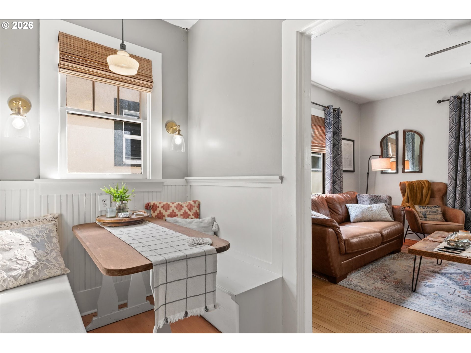 Move-in ready and full of charm, this updated south La Grande bungalow offers inviting curb appeal with a welcoming covered front porch. Inside, you’ll find a bright, comfortable layout featuring two bedrooms, one bathroom, and fresh interior paint. Recent updates—including new windows, fixtures, ceiling fans, thermostat, and water heater—make this home easy to step into and enjoy from day one. The space blends character and warmth with inviting living areas, a cozy breakfast nook, and natural light throughout. A full, clean basement provides excellent additional space for storage, hobbies, or future flexibility. Out back, the newly fenced, low-maintenance yard offers a private setting with a patio area and mature trees for shade and comfort. A detached garage adds convenience and versatility. Located in desirable south La Grande, just blocks from downtown and in close proximity to Grande Ronde Hospital and local schools, this home offers a comfortable lifestyle with key updates already in place. Call today for more information or to schedule a showing!