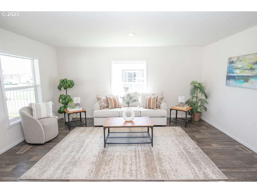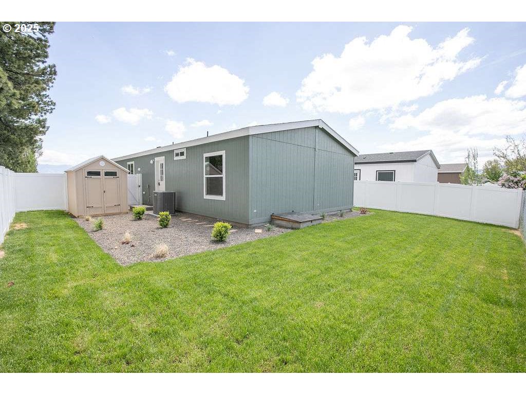 Welcome to easy, affordable living in this beautifully designed 2024 Fleetwood manufactured home (Model PU 24483P) located in a quiet, well-kept community in La Grande, OR. This Grace floor plan offers 3 bedrooms, 2 full bathrooms, and 1,120 square feet of thoughtfully laid-out space. Enjoy modern comfort with LP Smart Panel siding, energy-efficient vinyl-clad Low-E windows, and Energy Star 2.0 certification for year-round savings. Inside, you'll find an open-concept layout, LED lighting throughout, a smart thermostat, electric furnace, and a 30-gallon energy-efficient water heater ensuring comfort and control. The kitchen is equipped with Whirlpool appliances, a 30" range with hood, 30” overhead cabinets, and a 7" stainless steel sink with chrome fixtures. The primary suite features a private bath with a 60" ABS tub/shower and elongated toilet. Outside, realx on your front porch, enjoy a fenced yard, storage shed, off-street parking, and porch lights at both entry doors. This home is located in a safe and friendly community with lot rent at just $595/month. Whether you're downsizing, buying your first home, or looking for low-maintenance living, this move-in ready home checks all the boxes.