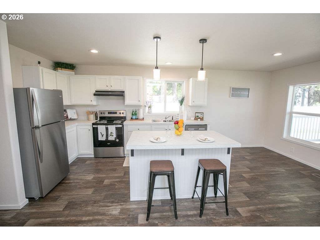 Low maintenance, affordable living in this beautifully designed 2024 Fleetwood manufactured home (Model PU 24483P) located in a quiet, well-kept community in La Grande, OR. This Grace floor plan offers 3 bedrooms, 2 full bathrooms, and 1,120 square feet of thoughtfully laid-out space. Enjoy modern comfort with LP Smart Panel siding, energy-efficient vinyl-clad Low-E windows, and Energy Star 2.0 certification for year-round savings. Inside, you'll find an open-concept layout, LED lighting throughout, a smart thermostat, electric furnace, and a 30-gallon energy-efficient water heater ensuring comfort and control. The kitchen is equipped with Whirlpool appliances, a 30" range with hood, 30” overhead cabinets, and a 7" stainless steel sink with chrome fixtures. The primary suite features a private bath with a 60" ABS tub/shower and elongated toilet. Outside, realx on your front porch, enjoy a fenced yard, included storage shed, off-street parking, and porch lights at both entry doors. This home is located in a safe and friendly community with lot rent at just $595/month. Whether you're downsizing, buying your first home, or looking for low-maintenance living, this move-in ready home checks all the boxes.