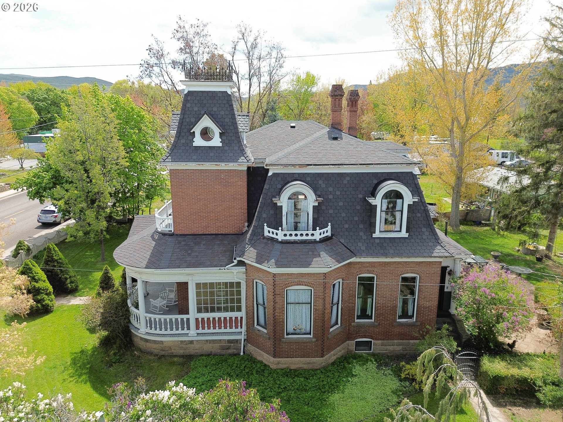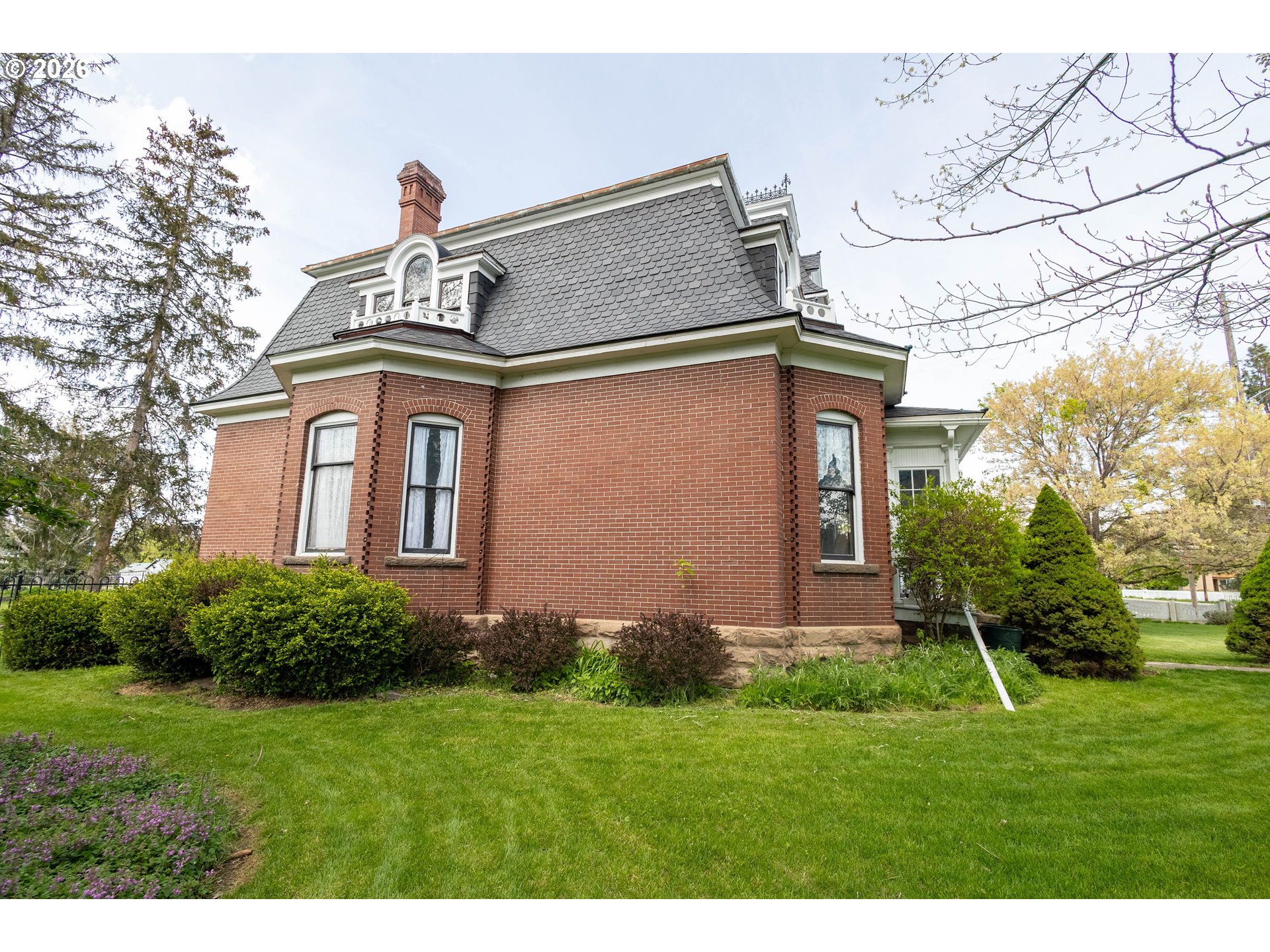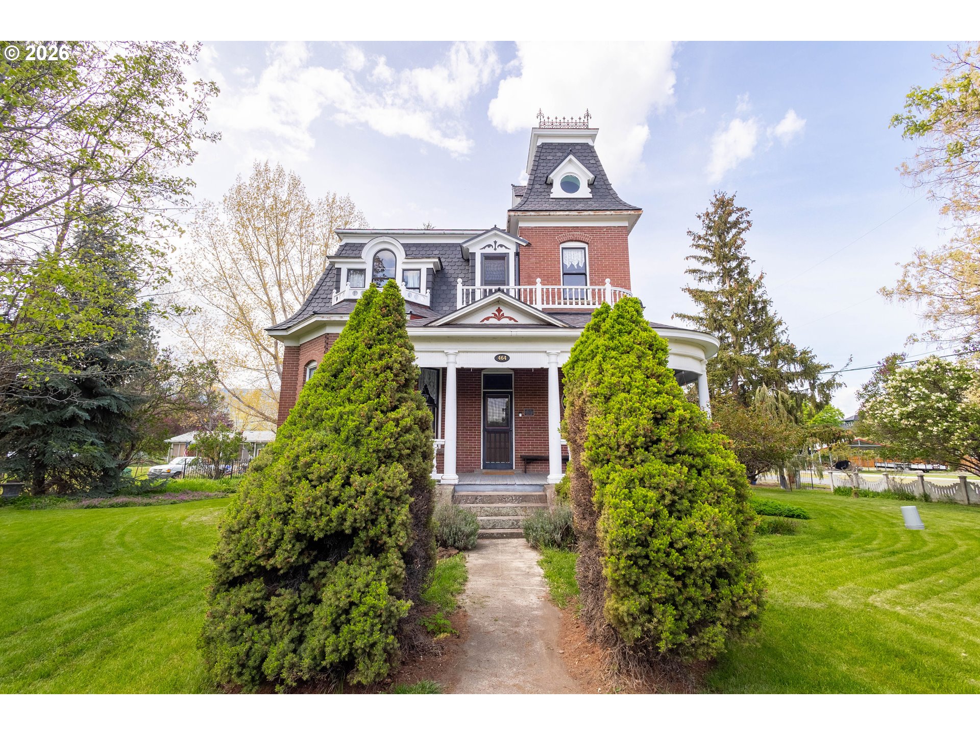 (503) 893-8874"The Abel Eaton House" built by a famous architect and established on the National Register of Historic Places in 1976 is located in Union, OR. Union is just far enough away from the hustle and bustle yet easy access to hwy 84 for a quick trip to the Boise or Pasco airport. This Second Empire French Mansard is constructed with smooth red brick imported from Italy. There is fine woodwork throughout the home. At the formal entry you will see a handsome wood staircase that spans to the second level bedrooms and third level widows walk. The front parlor (living room) has a bay window as well as does the back parlor (family area) that is graced with a stunning fireplace. Next enter to a large formal dining room including another bay window and then to an updated kitchen with gas range and a breakfast area. There is a bedroom and bathroom on the main all graced with wood and wainscoting throughout as well. From the entry foyer you will take the beautiful staircase to 3 full bedrooms with the primary being ensuite. The 5th bedroom is called the trunk room and is quite the story book setting. An enclosed back porch exits to the 20,000 s/f lot that is graced with custom concrete molded fencing at the front and metal custom fencing for the balance to the back enclosed yard. A newer storage general purpose shed is situated in the back yard. The substantial stone foundation seen in unfinished basement is about 1112 sf of the total sf and includes storage and the utility laundry area. There are balconies to watch the EOLS parade and towers to accent the upper-level bedrooms. A very special opportunity to enjoy a piece of history in a small town that offers a grocery store, hardware store, excellent schools a fun golf course & the amenities needed to live the quiet life. Just 14 miles into La Grande and the home of Eastern Oregon University & a Regional Hospital. Union is the gateway to the Wallowa Whitman National Forest. Call now for a private tour to view.