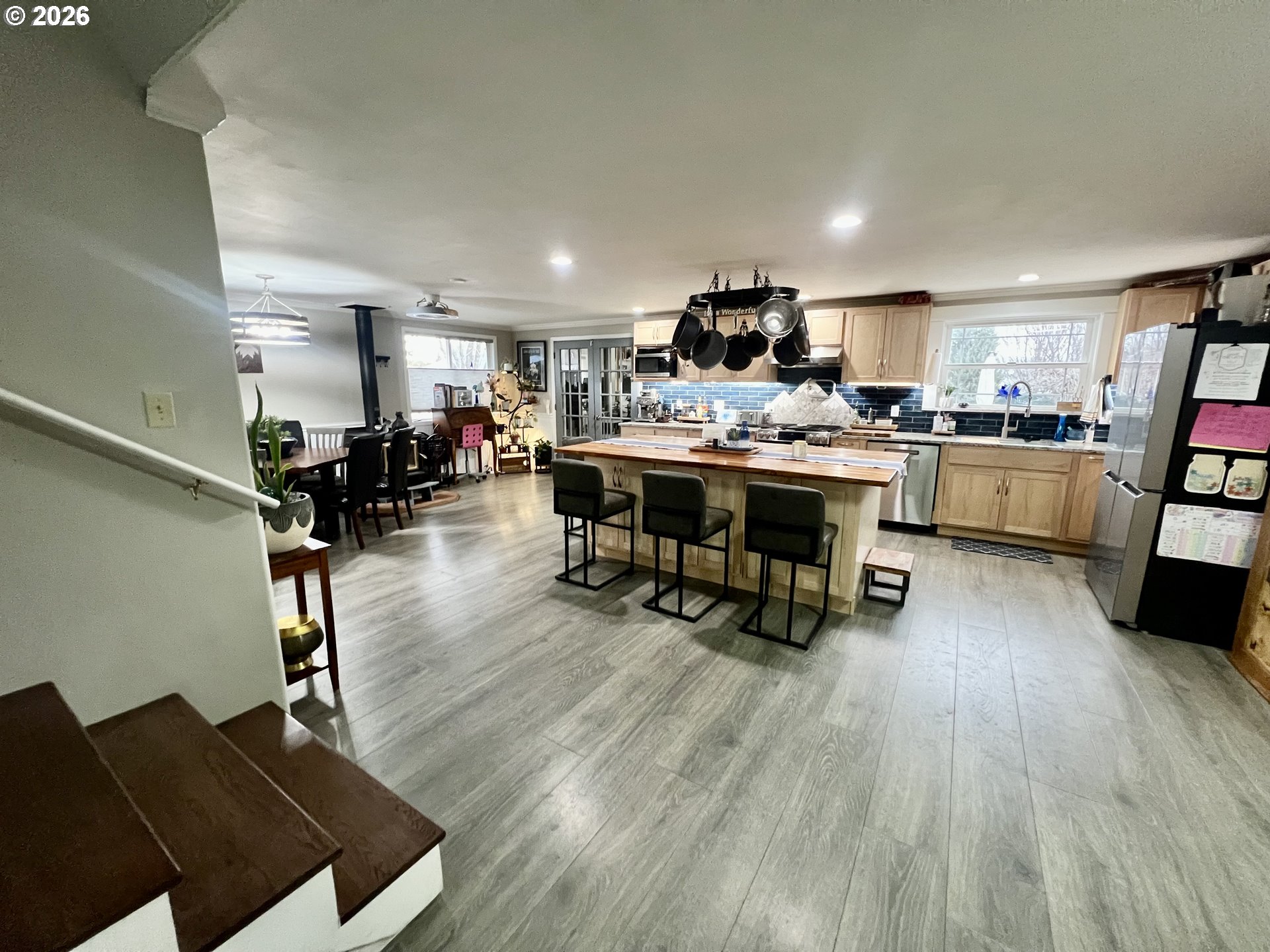 Dishwasher, Disposal, FreeStandingGasRange, Island, PotFiller, RangeHood, SolidSurfaceCountertop, Stainless