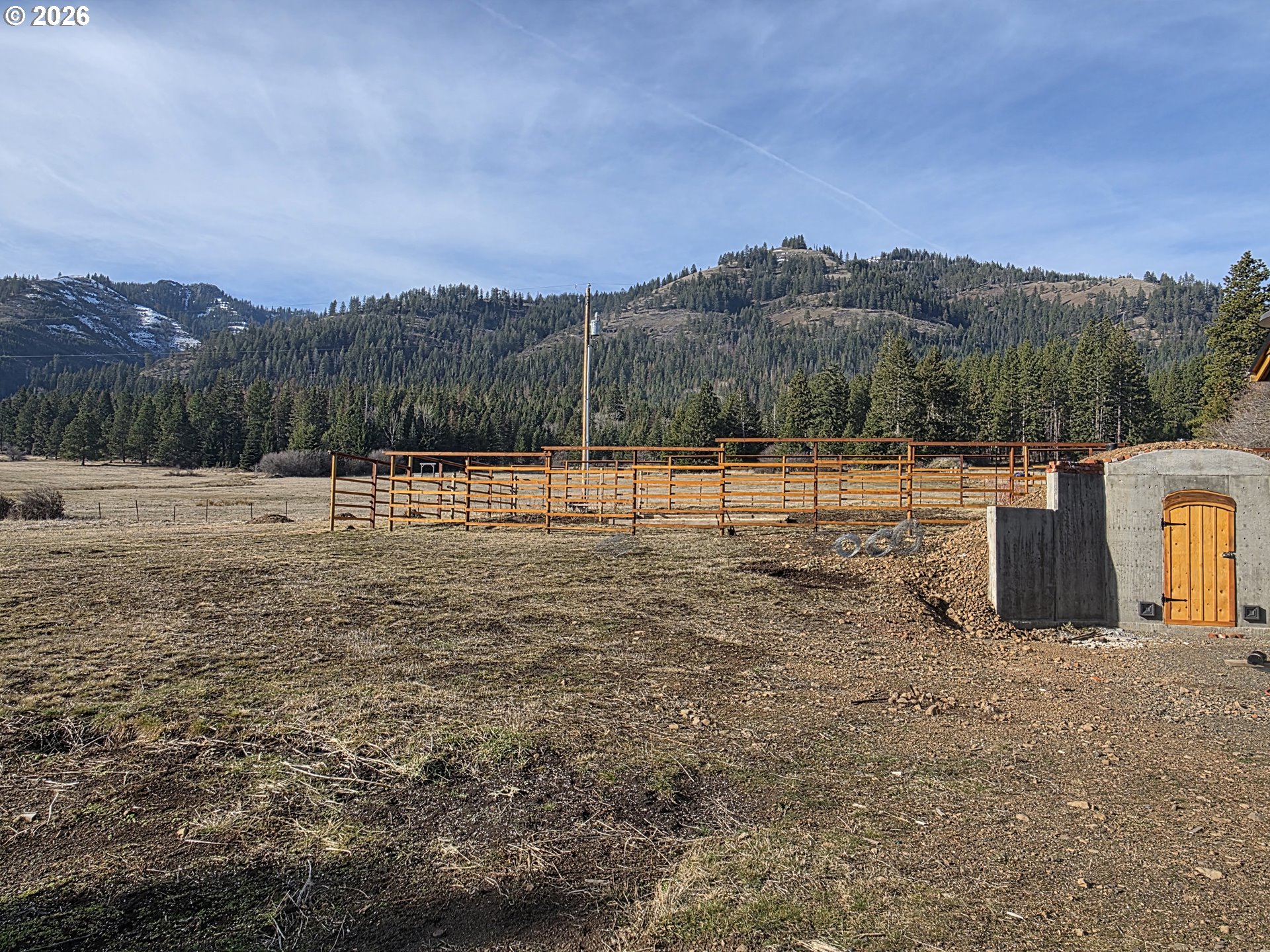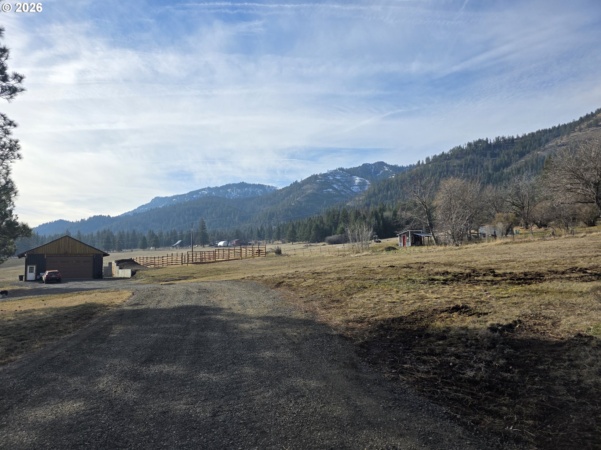 Discover a rare 40-acre property just off Wagoner Hill Road—an exceptional blend of open field, timbered forest, and usable pasture, all set against panoramic views of the Wallowa Mountains, Blue Mountains, Grande Ronde rolling hills, and the valley below. This property delivers both natural beauty and practical readiness, making it ideal for a homestead, retreat, or future build. A newly constructed oversized garage anchors the improvements, providing abundant space for equipment, vehicles, or workshop needs. Inside has R-21 insulated walls and the well pump is newer technology variable speed. A beautifully designed commercial kitchen is framed inside or use it as a comfortable base while you build. A new food storage cellar, concrete stem wall and large garden space adds year-round utility and supports self-sufficient living. With well, septic, and power already in place, the heavy lifting is done—giving you a major head start on development.
