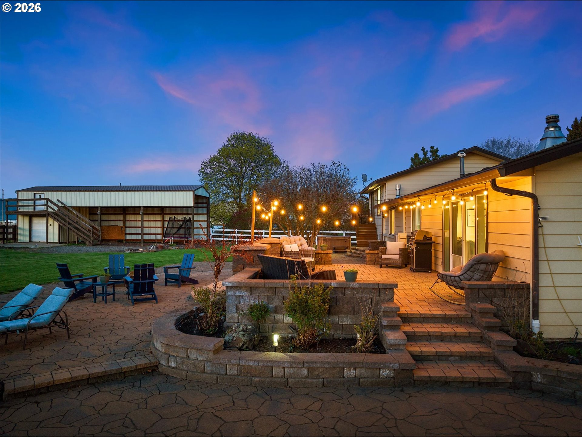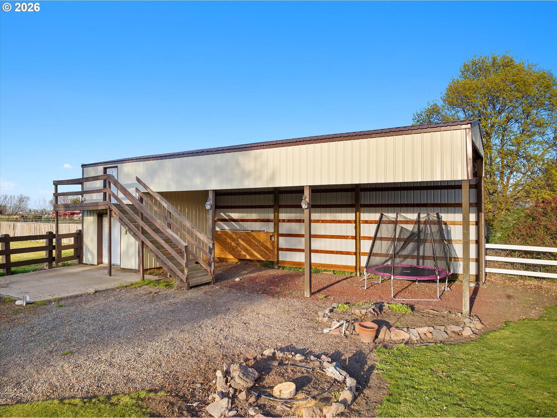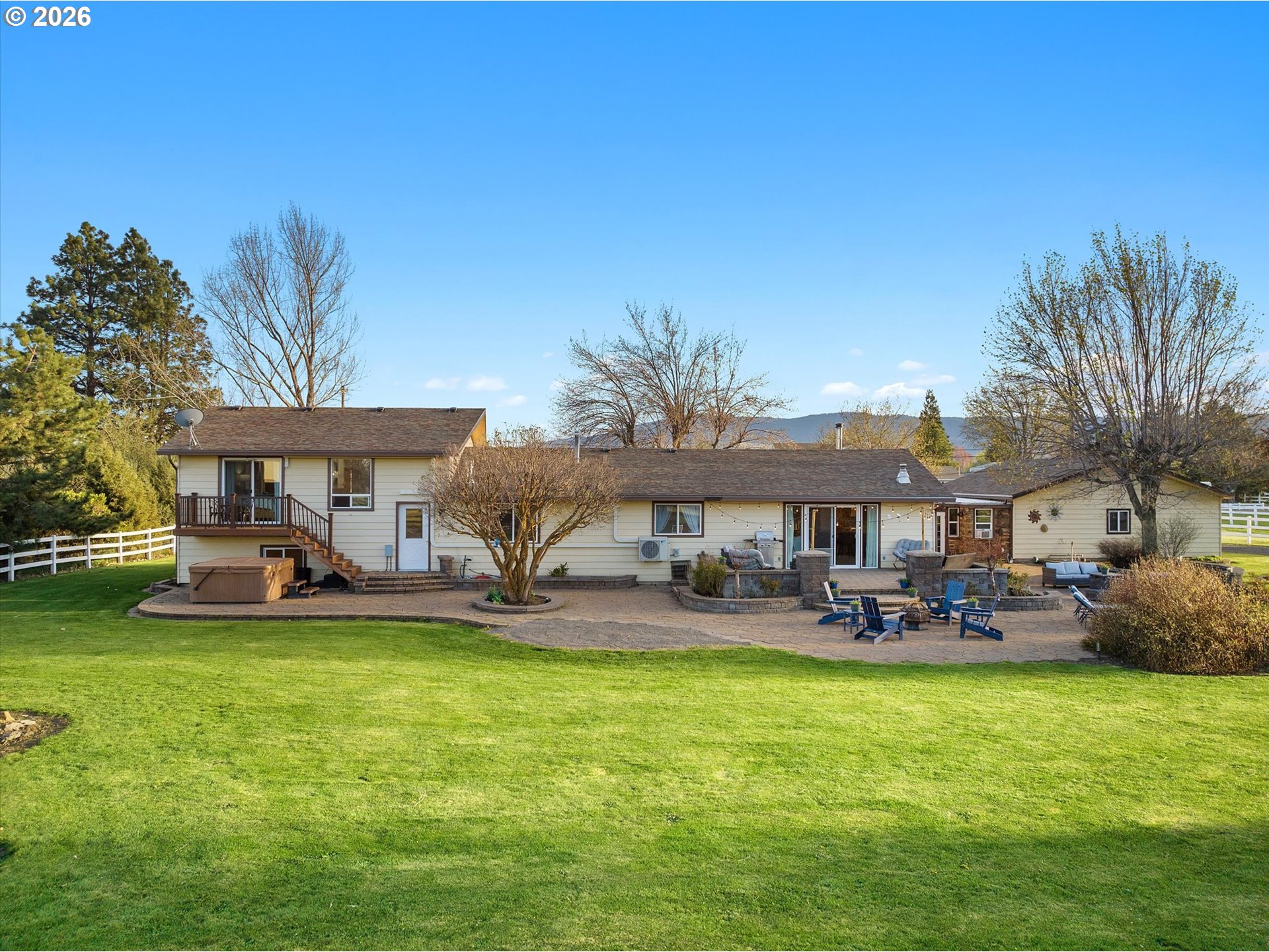Incredible opportunity to own a five-bedroom, three-bathroom home on nearly four acres at the edge of La Grande! Wide-open views of the valley and a direct, unobstructed look at Mt. Emily set the tone, while the setting, improvements, and overall layout come together to support both everyday living and a more refined small acreage lifestyle—just a short drive from town. The home is thoughtfully arranged with multiple living areas, creating separation and comfort throughout. The primary suite is privately positioned with its own balcony, offering a quiet place to take in the surrounding views. An oversized sunroom/breezeway off the attached double garage is currently used as additional living space/bedroom and lends itself well to guests, gatherings, or a variety of uses. A separate oversized bonus area with its own bathroom adds further versatility, whether used as a bedroom, home office, business space, mudroom, or additional landing area. Outside, the property is well suited for horses and a range of livestock practices, with pasture, a barn with established horse infrastructure, and an outdoor riding arena already in place. A bunk house with loft space attached to the barn adds flexibility for guests, hobbies, or storage. The oversized shop/outbuilding is a standout feature, offering substantial room for equipment, vehicles, or larger projects, complemented by additional outbuildings and covered RV or boat parking. The backyard is well planned and easy to enjoy, featuring an expansive patio with water feature and multiple areas to gather, entertain, or unwind—creating a natural extension of the home’s living space. Combining usable acreage, well-kept improvements, and a setting that highlights the best of Eastern Oregon, this property presents a standout opportunity! Call today for more information or to schedule a private showing!