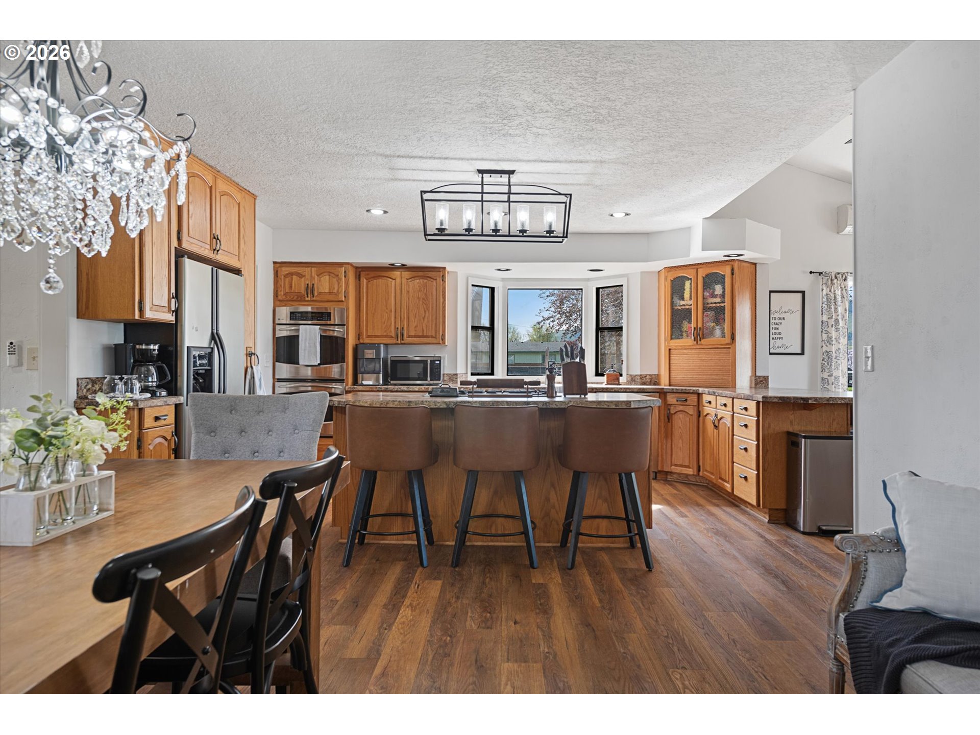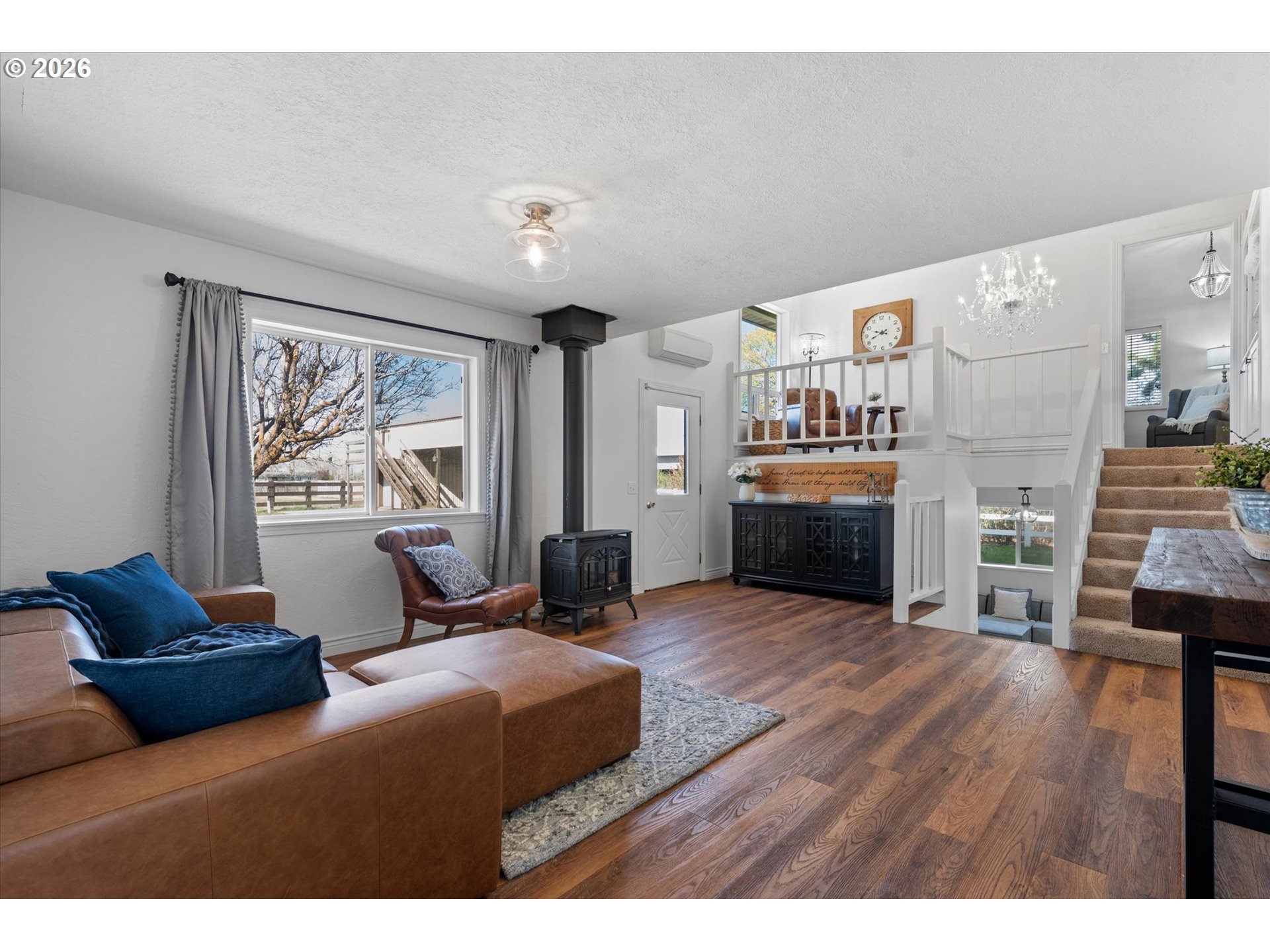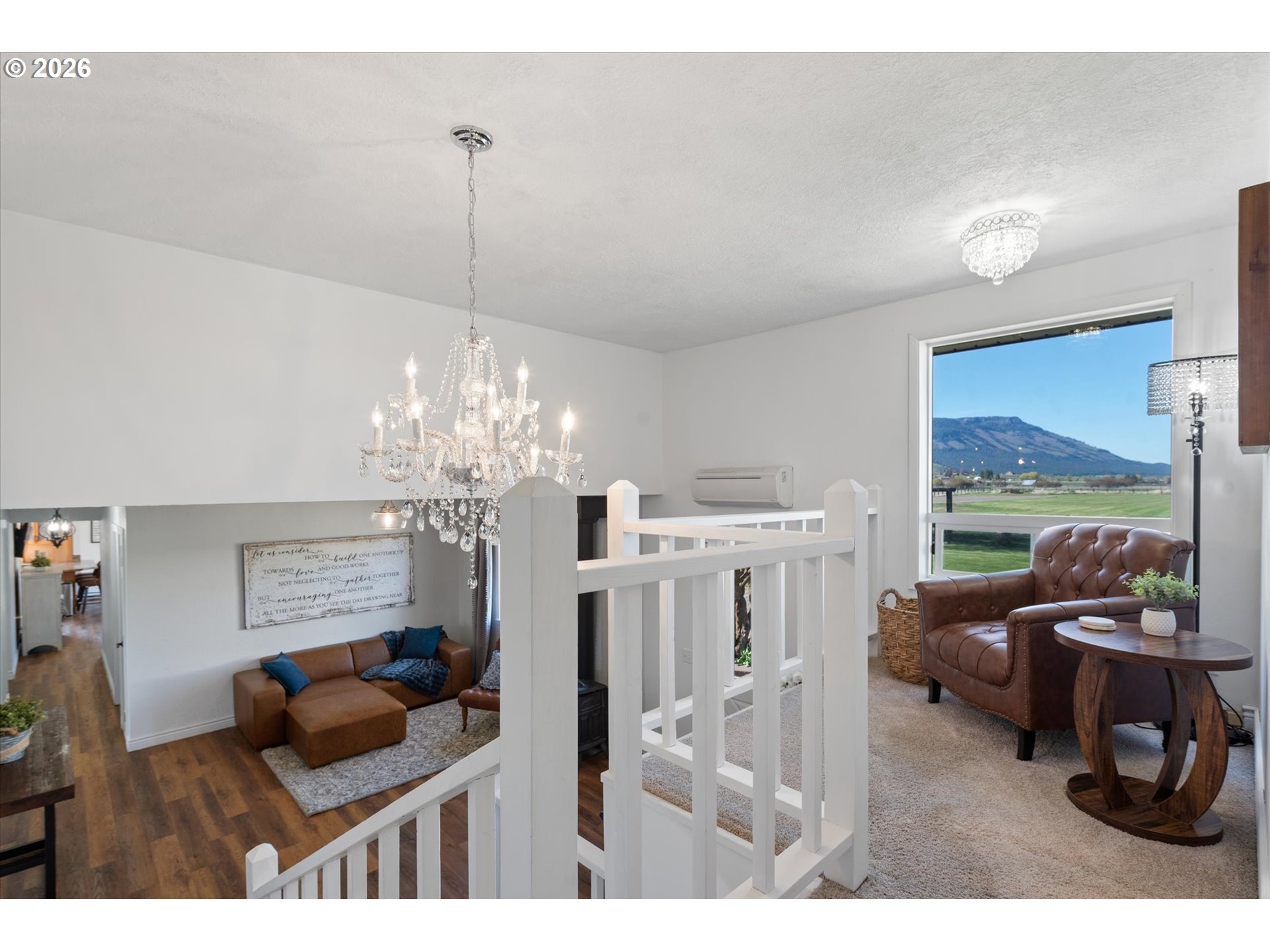 Incredible opportunity to own a five-bedroom, three-bathroom home on nearly four acres at the edge of La Grande! Wide-open views of the valley and a direct, unobstructed look at Mt. Emily set the tone, while the setting, improvements, and overall layout come together to support both everyday living and a more refined small acreage lifestyle—just a short drive from town. The home is thoughtfully arranged with multiple living areas, creating separation and comfort throughout. The primary suite is privately positioned with its own balcony, offering a quiet place to take in the surrounding views. An oversized sunroom/breezeway off the attached double garage is currently used as additional living space/bedroom and lends itself well to guests, gatherings, or a variety of uses. A separate oversized bonus area with its own bathroom adds further versatility, whether used as a bedroom, home office, business space, mudroom, or additional landing area. Outside, the property is well suited for horses and a range of livestock practices, with pasture, a barn with established horse infrastructure, and an outdoor riding arena already in place. A bunk house with loft space attached to the barn adds flexibility for guests, hobbies, or storage. The oversized shop/outbuilding is a standout feature, offering substantial room for equipment, vehicles, or larger projects, complemented by additional outbuildings and covered RV or boat parking. The backyard is well planned and easy to enjoy, featuring an expansive patio with water feature and multiple areas to gather, entertain, or unwind—creating a natural extension of the home’s living space. Combining usable acreage, well-kept improvements, and a setting that highlights the best of Eastern Oregon, this property presents a standout opportunity! Call today for more information or to schedule a private showing!