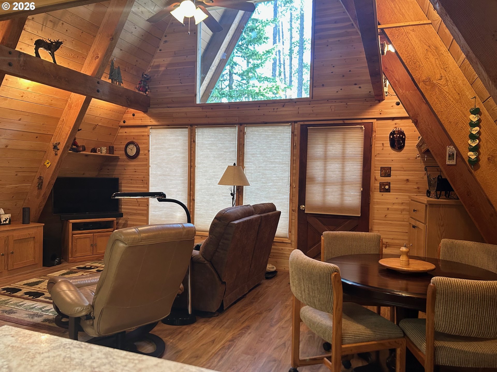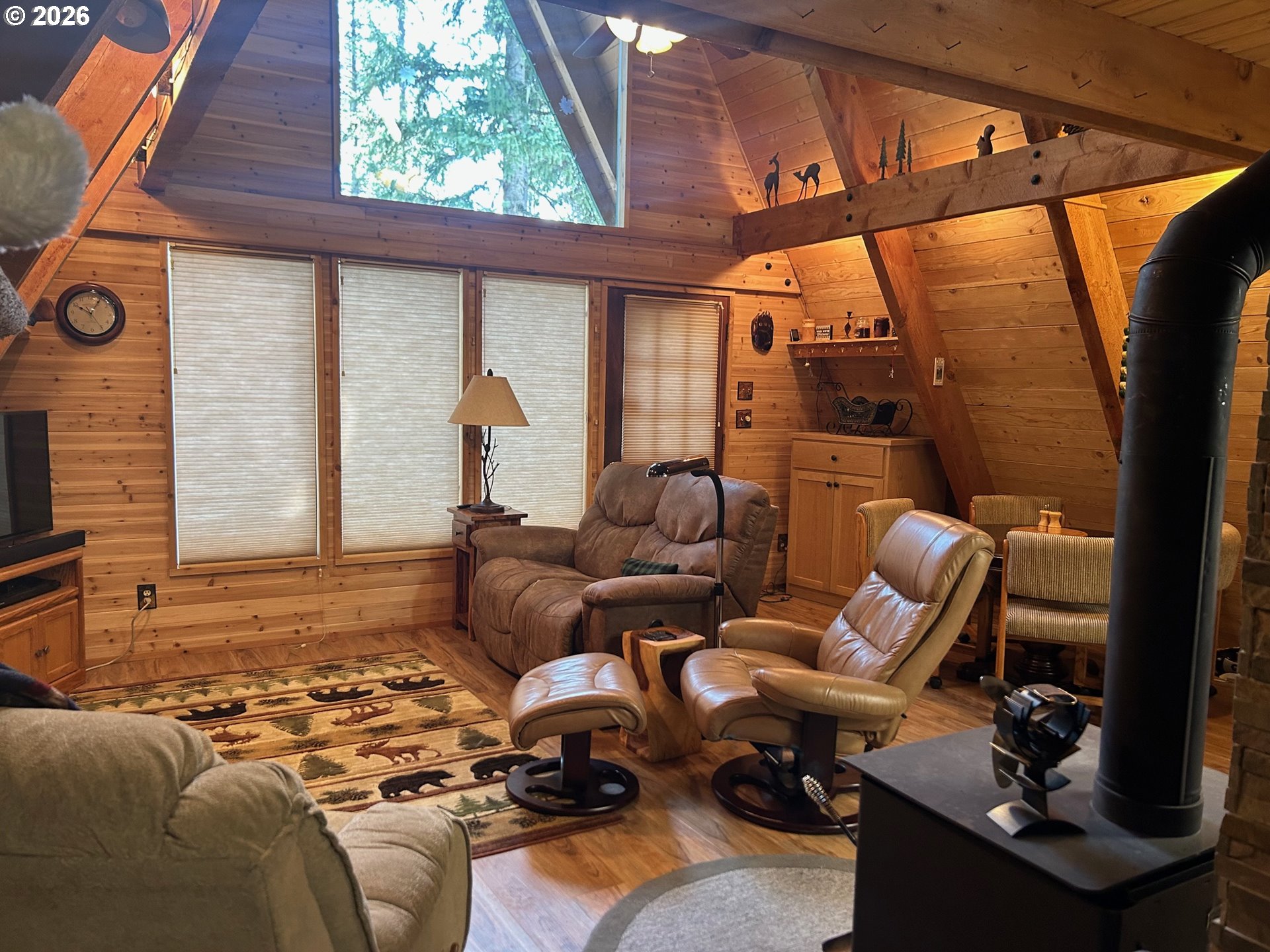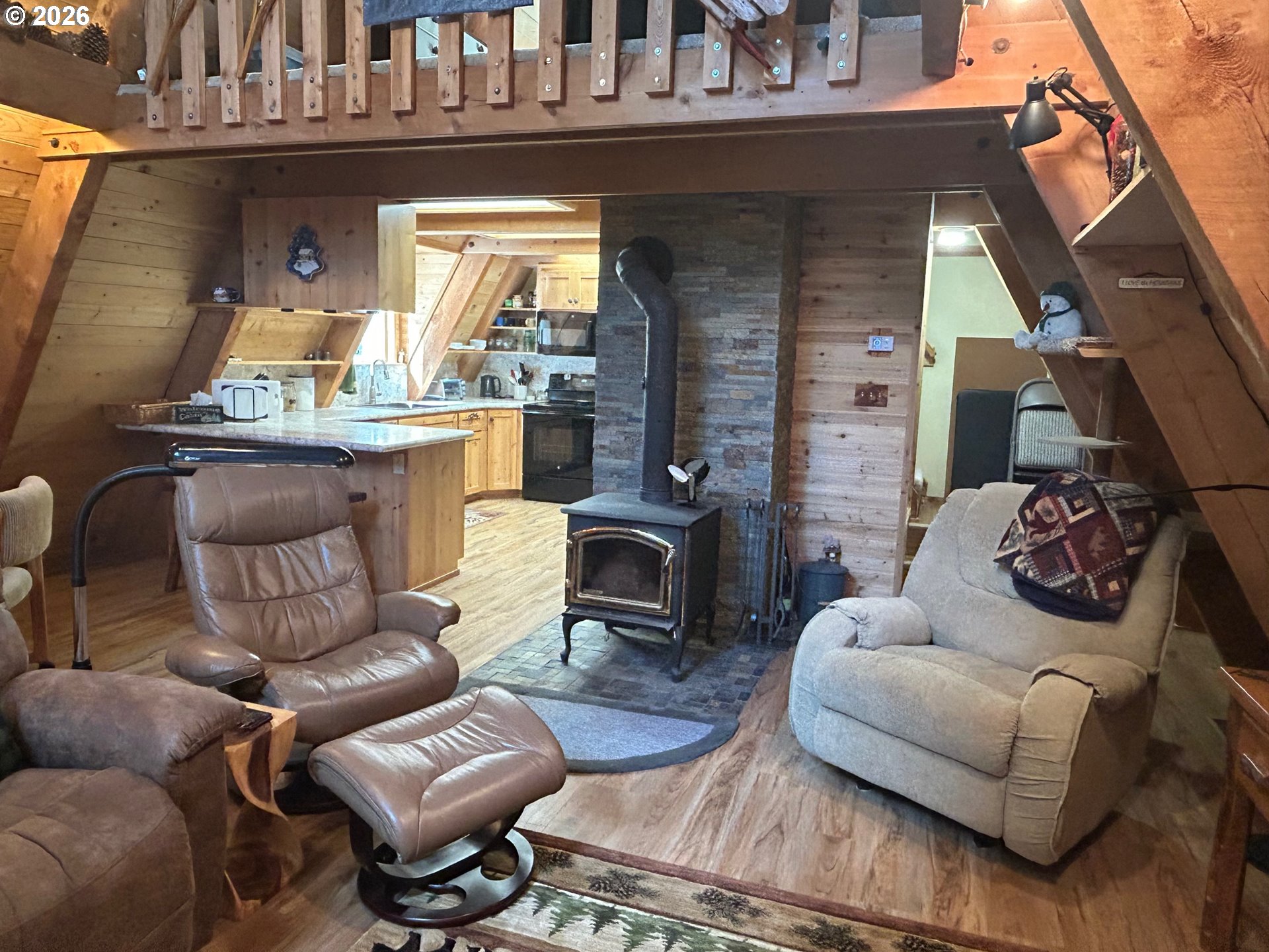 The Perfect Mountain Escape! This 3-bedroom, 1-bath, 2,002 sq. ft. A-frame cabin is packed with rustic charm, showcasing stunning floor-to-ceiling natural wood and two cozy wood-burning stoves perfect for warming up after a day of outdoor activities. Relax and take in the peaceful mountain setting from the front or back deck or gather around the fire pit under the stars. The property also features an 11 x 20 snowmobile shed and access to approximately 70 miles of nearby trails. Enjoy endless year-round recreation with nearby slopes for sledding and scenic trails for cross-country skiing. Experience the warm, woodsy atmosphere that only a true mountain cabin can provide. Bring one or bring all, this cabin is sure to create lasting memories. Don’t forget the marshmallows!
