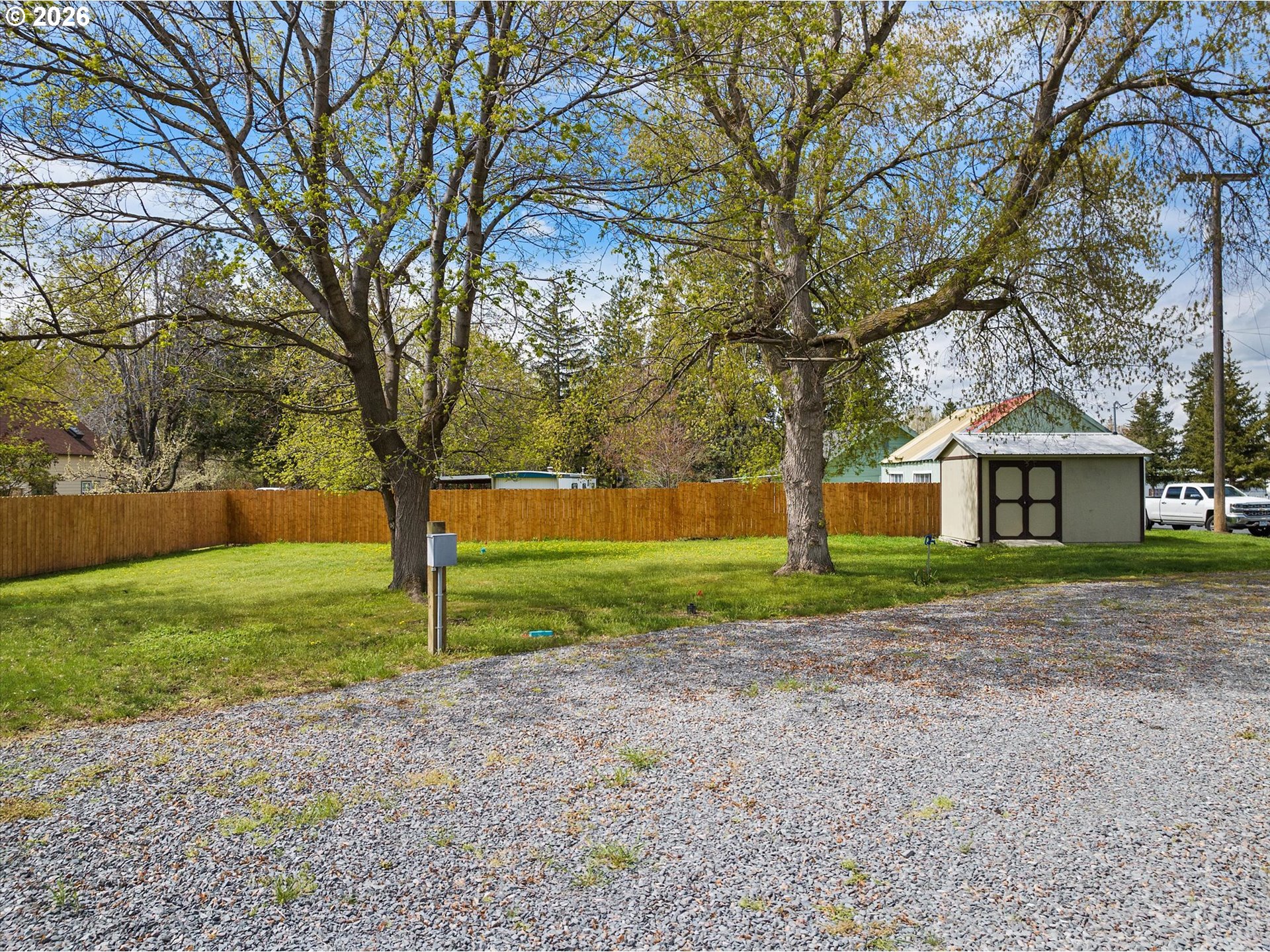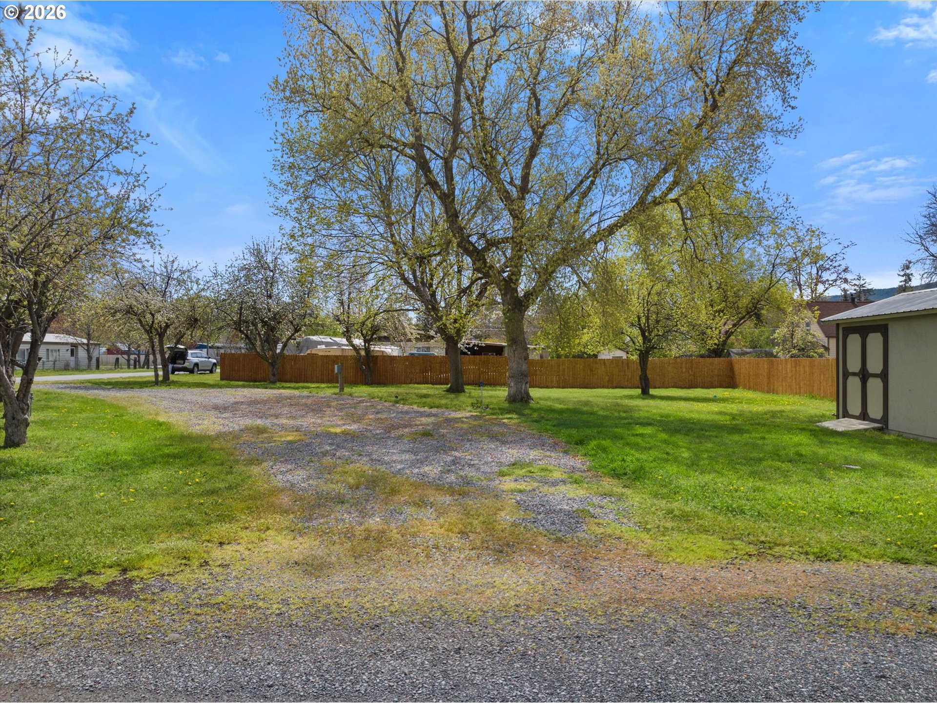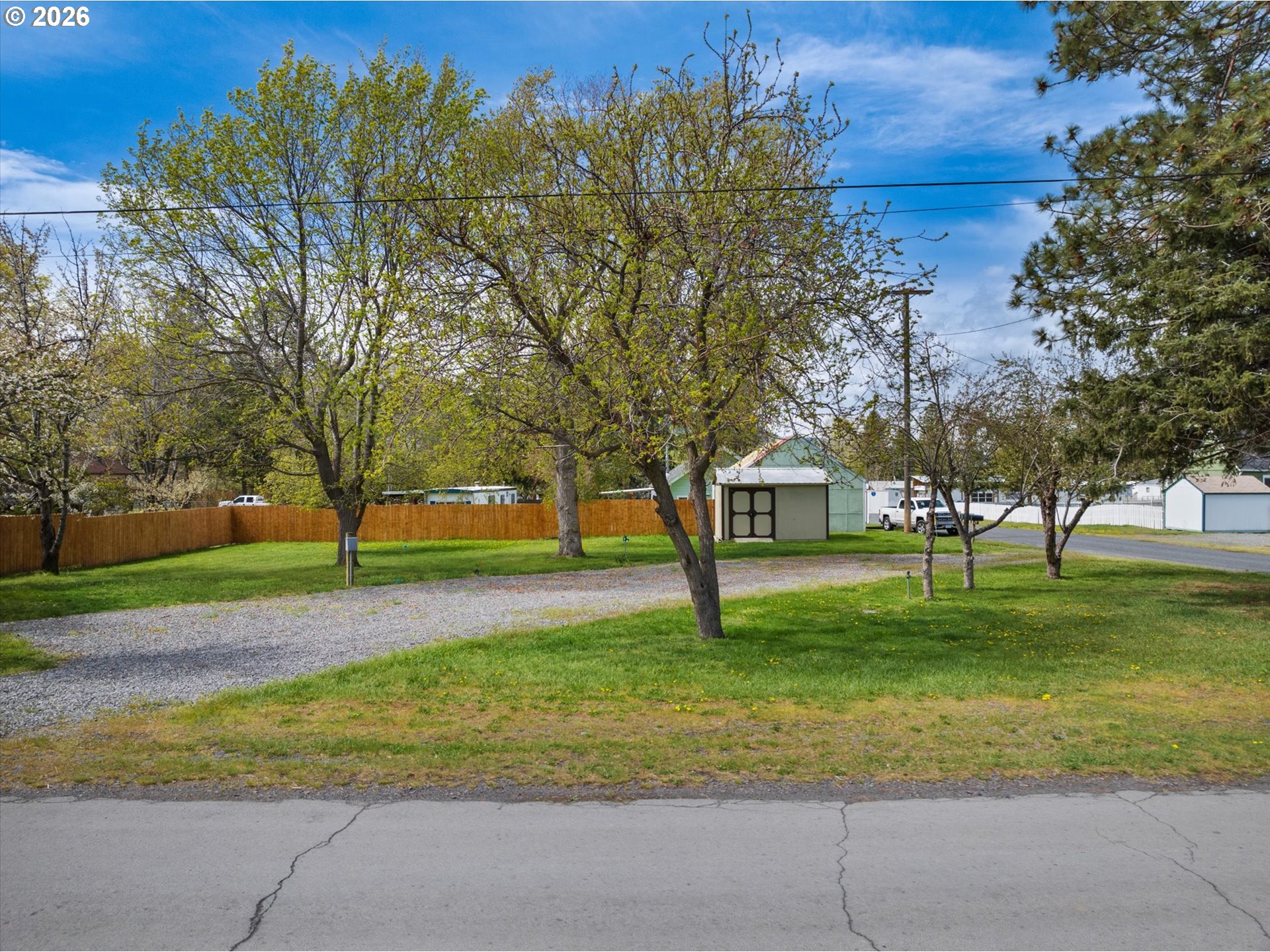 are opportunity to own a versatile 10,000 sq ft buildable lot, thoughtfully transformed into a park-like setting ideal for destination RV stays. The property is fully fenced and features mature trees that provide shade, privacy, and a serene atmosphere. Equipped with power and public water, plus an irrigation well to keep the grounds lush and green. A storage building adds extra functionality for tools, equipment, or recreational gear. Whether you’re looking to build, invest, or enjoy as a private getaway, this property offers flexibility and charm in a beautifully maintained setting.