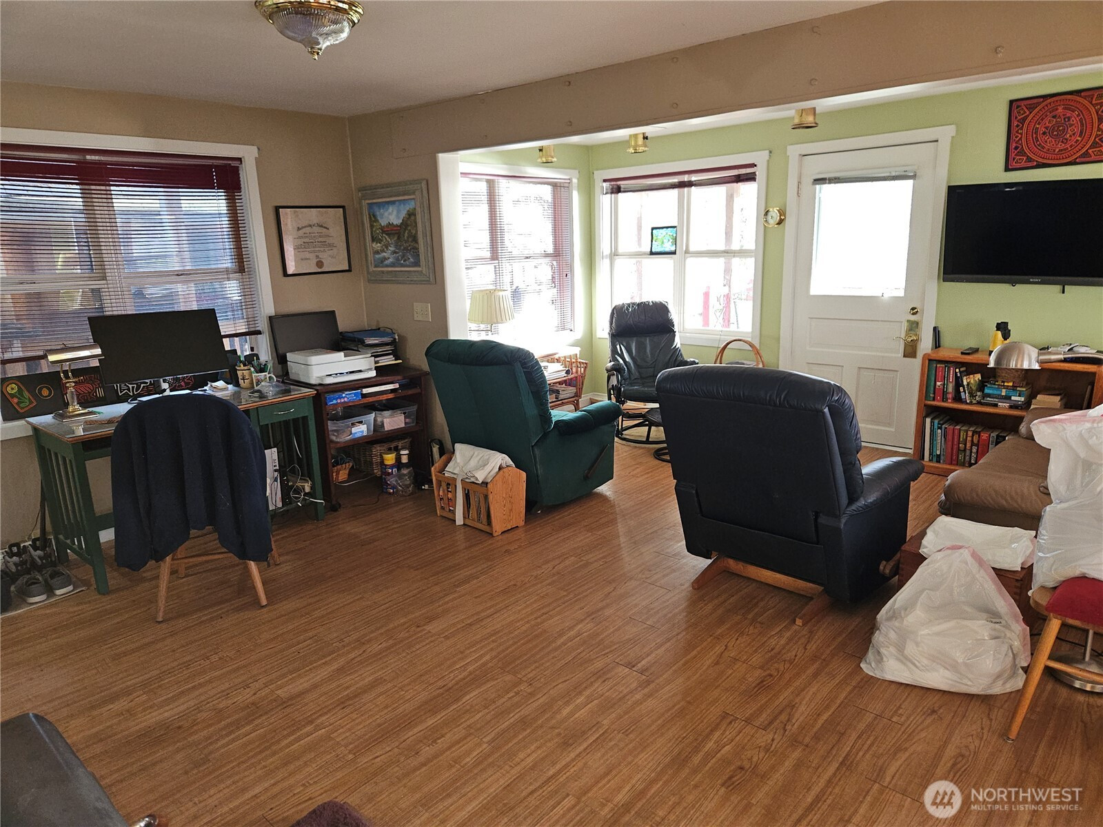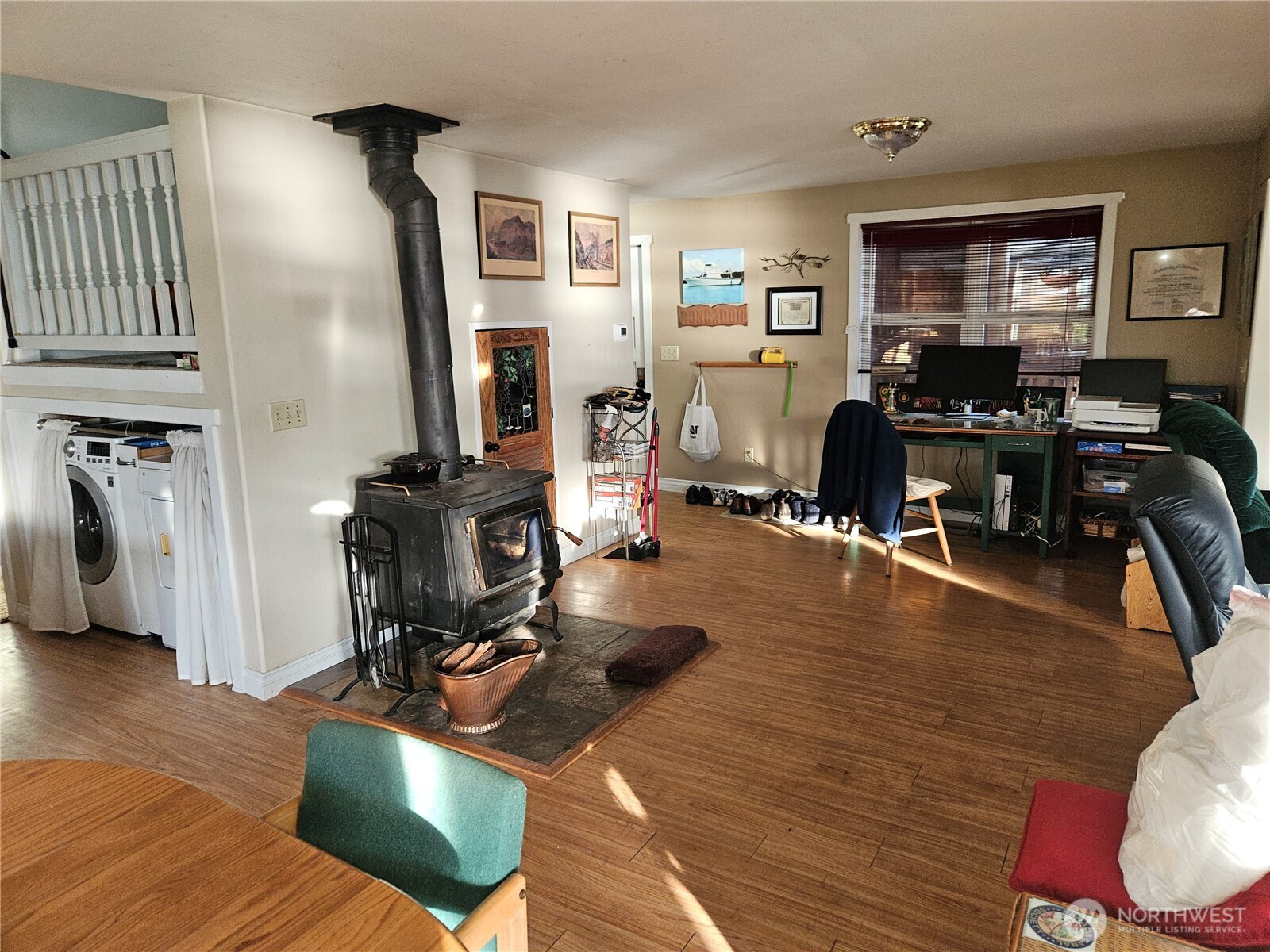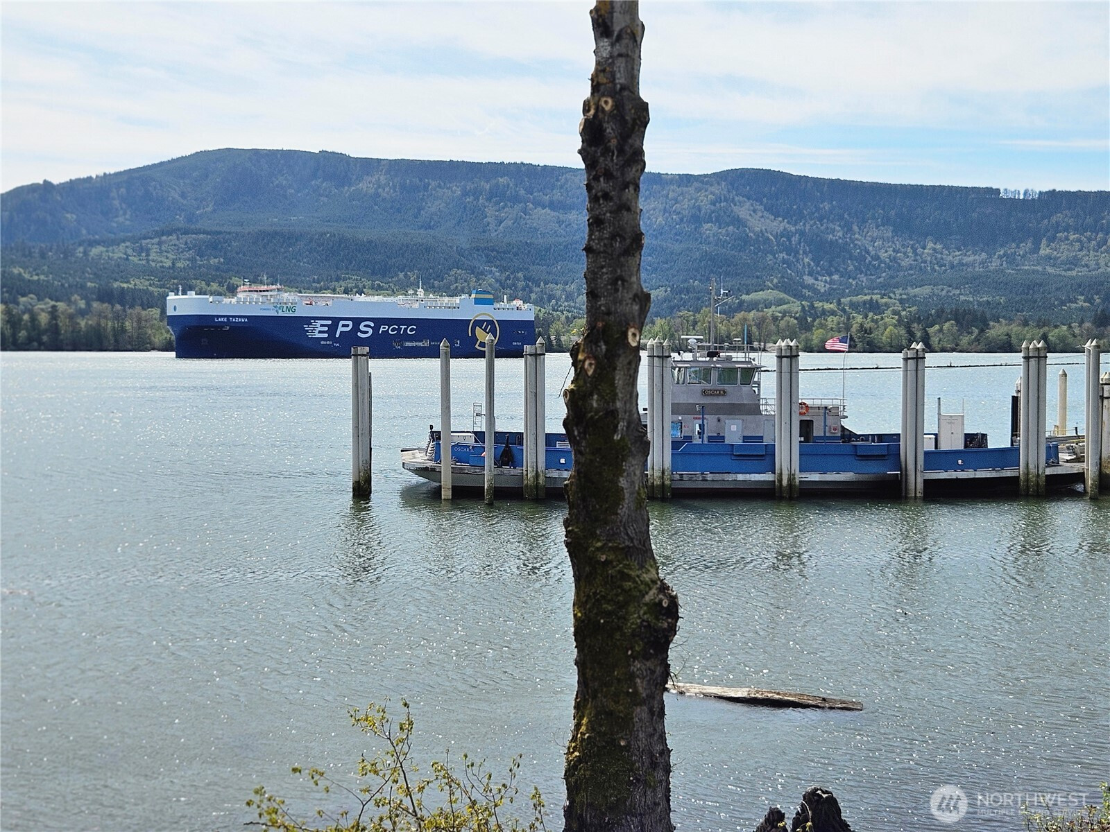 Come live on the shipping channel and watch the cargo ships and eagles glide by from your covered deck. Or look out the living room, primary bedroom or den's large river-facing windows. Or the windows of the "Rancho", a 490 Square foot outbuilding that can be anything from a studio to a shop. Of course there also a 858 square foot combined garage/shop area attached to the house. There is a bedroom down, a primary bedroom up and a berth on the upper floor via the east stairway, on the way to the den. You get to Puget Island by bridge or ferry and it is a step back into a friendly community and calmer times with easy access to fishing, boating and hunting if you wish. Come drive around our Island.