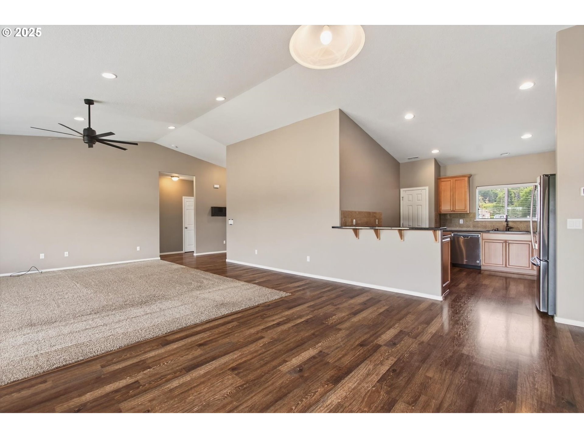 CeilingFan, EatBar, Fireplace, LivingRoomDiningRoomCombo