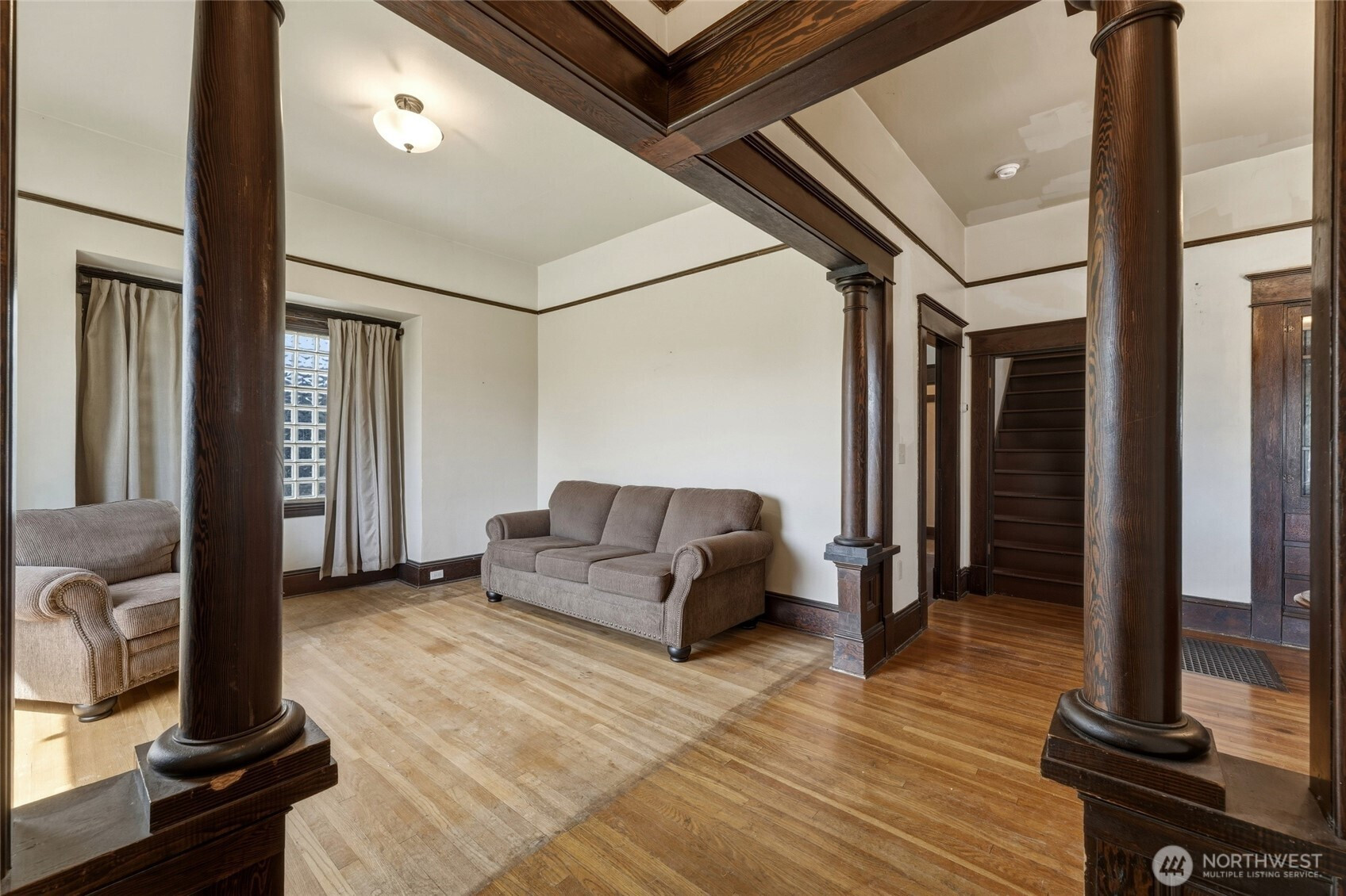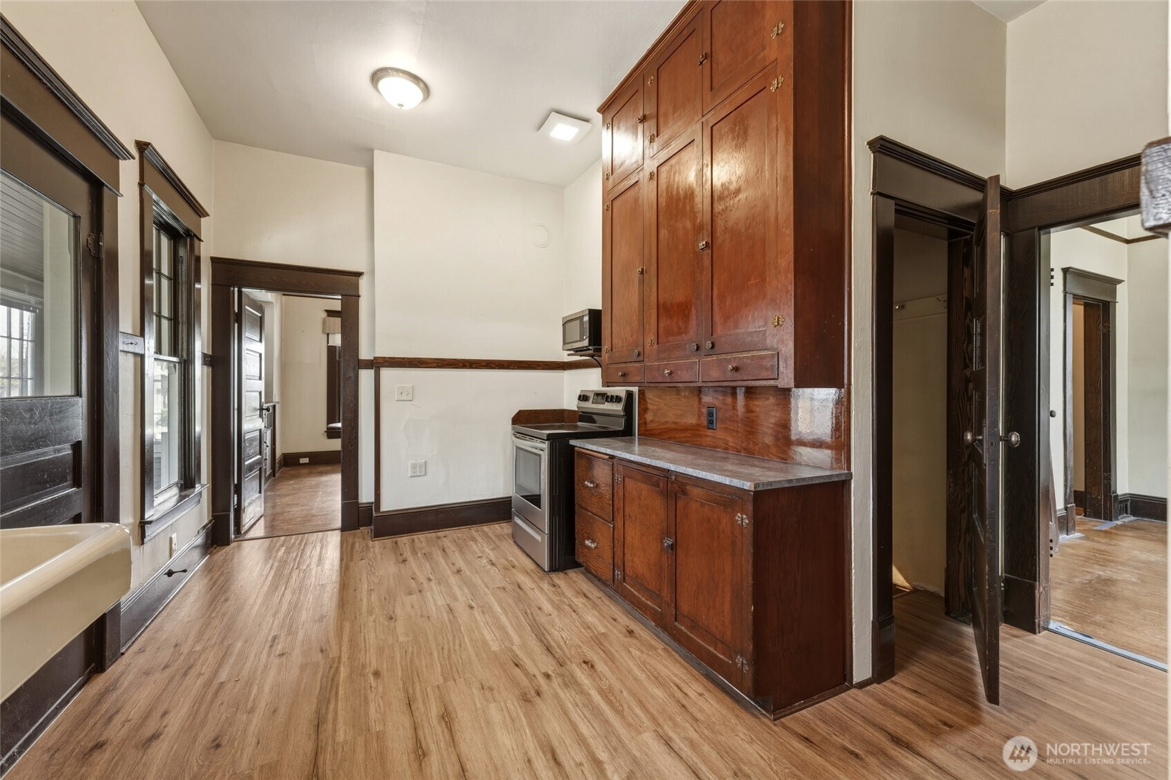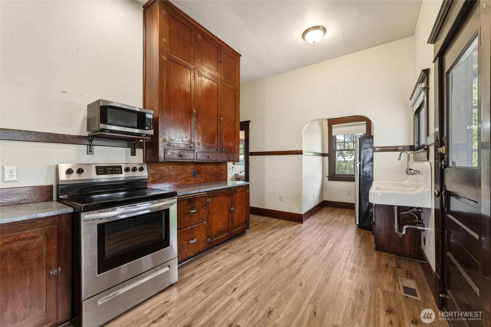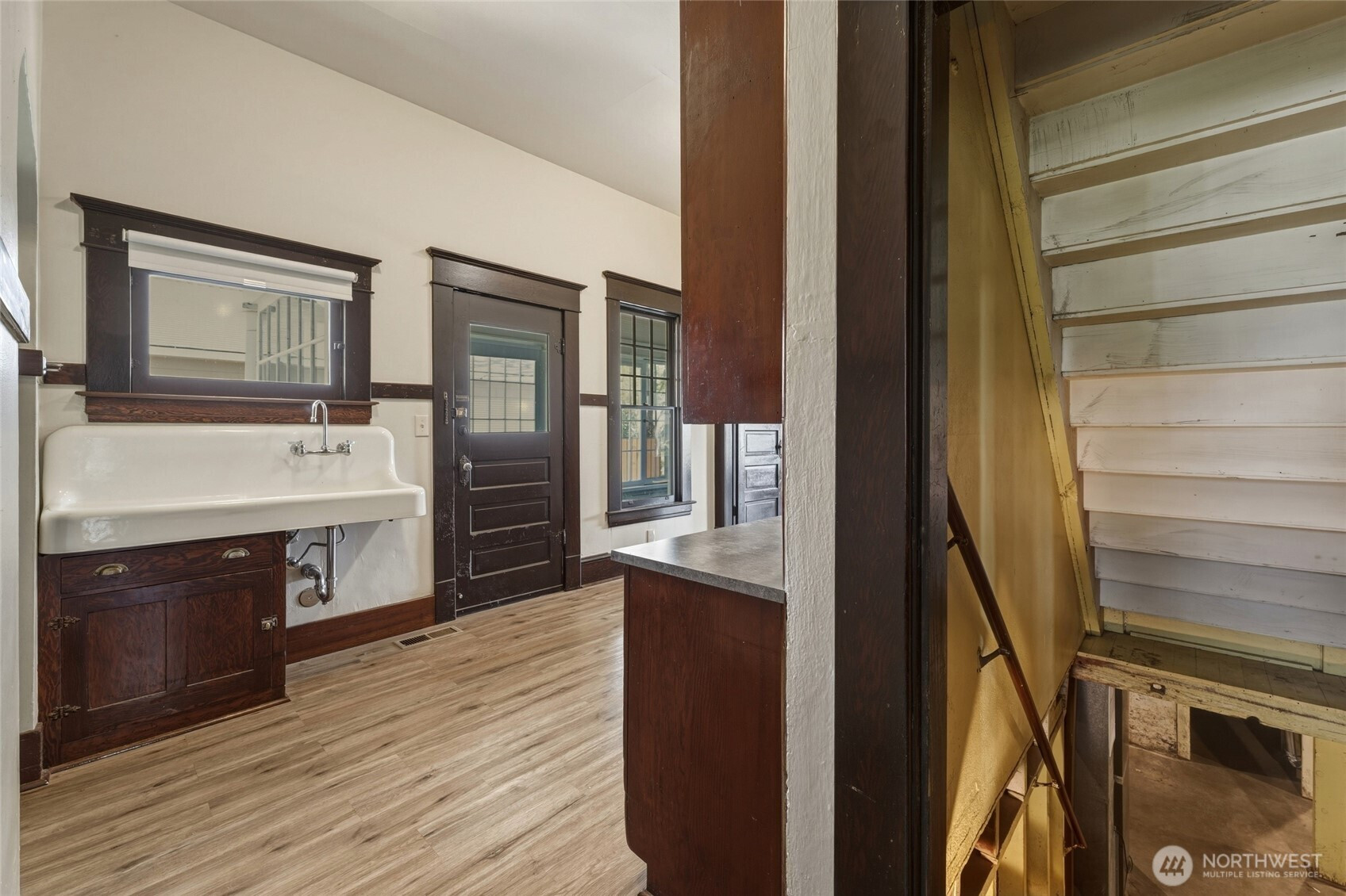 Fall in love with the timeless character and charm of this home with many vital updates. Featuring original woodwork, tall ceilings, classic built-ins, and original cabinetry. Rich in personality yet thoughtfully improved, this property offers the best of both worlds with all new wiring, plumbing, heating, and cooling for modern peace of mind. The inviting enclosed side porch is perfect for a plant collection, reading nook, or sunny retreat, while the welcoming front porch is made for relaxing and front porch swinging. Two bedrooms are located on the main level, with a spacious upstairs bedroom and bathroom offering flexibility for guests, a private primary retreat, or bonus living space. Outside, enjoy a large private yard with plenty of room to garden, entertain, or simply unwind. A standout feature is the impressive 900 sq ft pole building with concrete flooring, plus an attached 720 sq ft carport providing abundant space for parking, storage, hobbies, or projects. A rare opportunity to enjoy vintage charm with major system updates already completed.