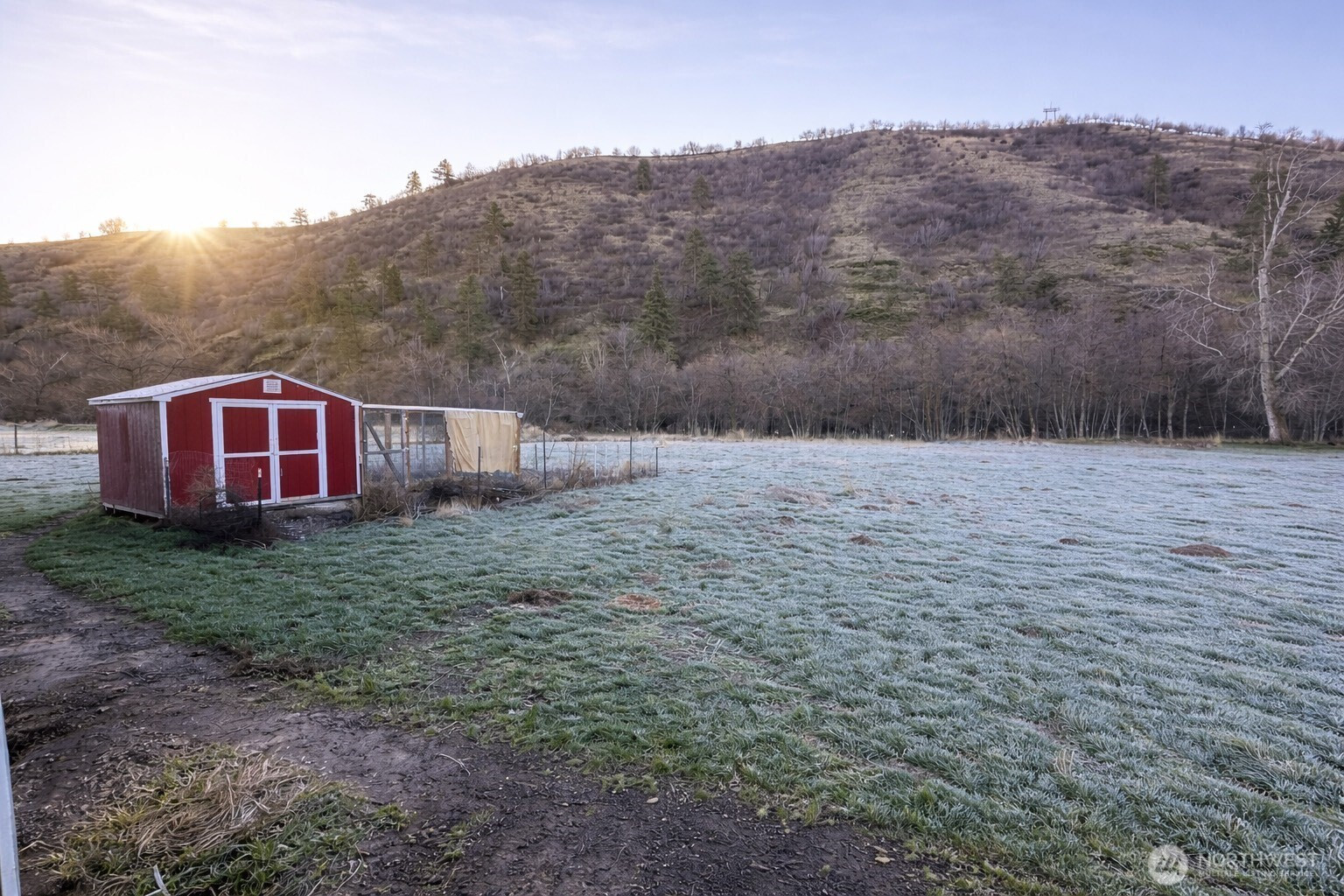 Versatile country property with a large pole building and beautiful rural setting just outside of Waitsburg. The pole building includes 1,800 sq ft of open gravel-floor machine shed space plus a 1,320 sq ft enclosed concrete-floor area, insulated and equipped with a bathroom, offering great potential for a shop, workspace, or future apartment (buyer to verify). Set on irrigated acreage with open views, established fencing, and a peaceful river nearby, the land offers room to enjoy and use. The 2-bed, 1-bath home features a comfortable layout with a spacious living room, functional kitchen, wood stove for supplemental heat, and both front and back decks to take in the surroundings. A solid opportunity for those looking for space, flexibility, and quiet country living.