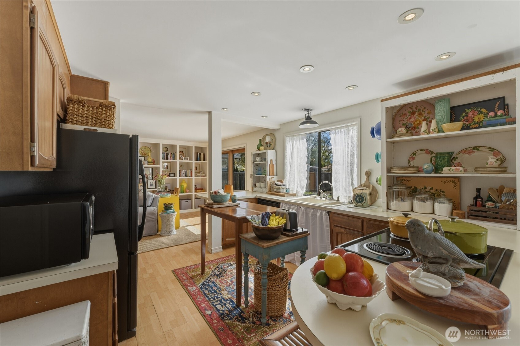 Tucked away near the quiet end of the street, this charming 1.5-story home offers a rare blend of privacy, comfort, and opportunity on a generously sized lot—an ideal canvas for creating your own outdoor sanctuary. Inside, abundant natural light and an elegant staircase set the tone, while thoughtfully designed living spaces provide both sophistication and functionality. The main level features a formal living room alongside an open-concept kitchen, dining, and family room with great built-ins—perfect for effortless entertaining and refined everyday living. Upstairs, two well-appointed guest bedrooms and a full guest bathroom, accompany a serene primary suite retreat. Bathed in natural light, the primary ensuite offers a peaceful escape complete with a dedicated office nook, private bathroom and an expansive walk-in closet, blending luxury with versatility. Welcome home!