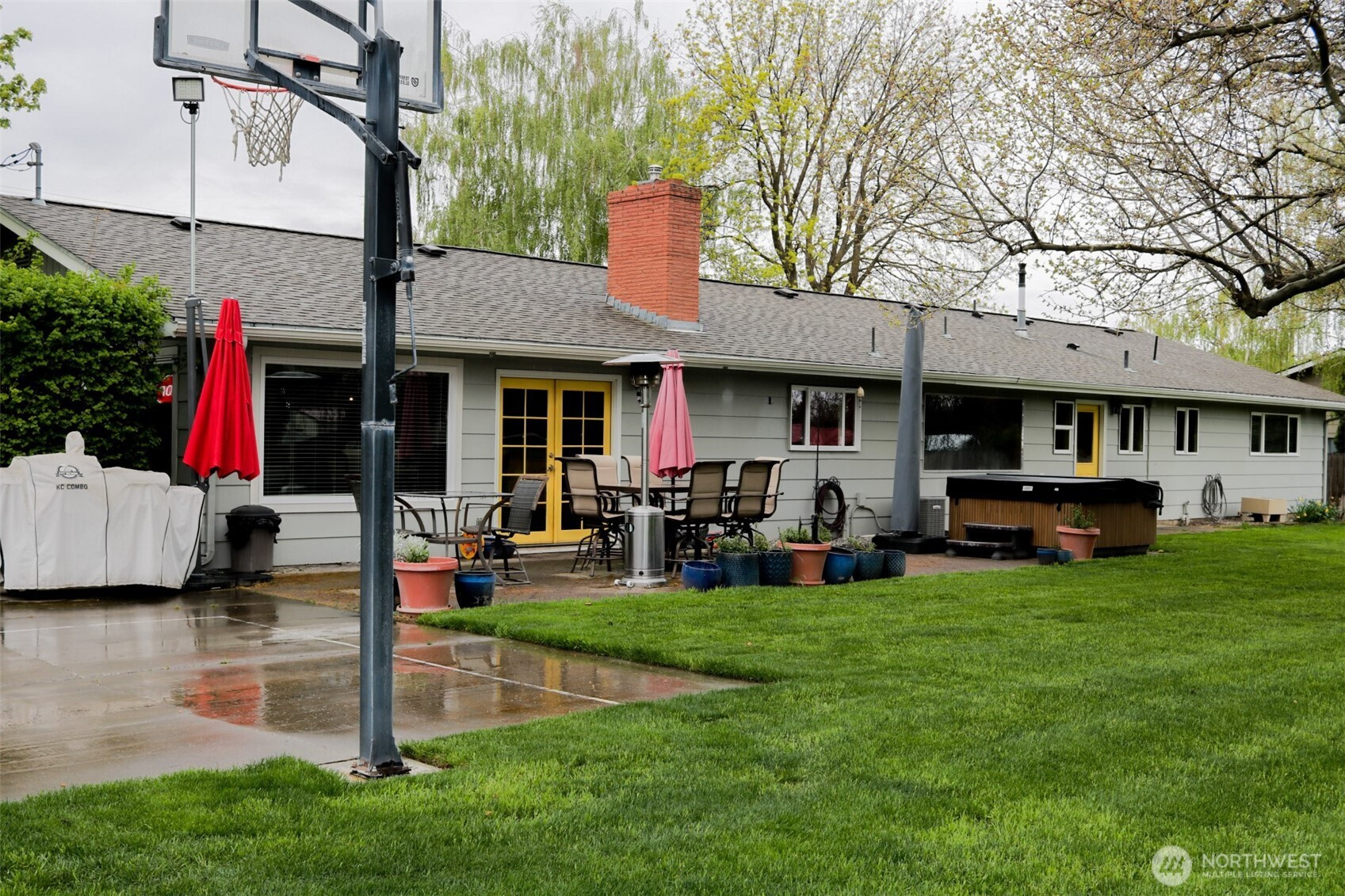 Welcome to your dream oasis! This stunning single-level home offers 4 bedrooms, 3 bathrooms, and over 2,500 square feet of beautifully designed living space, all set on more than half an acre. Take in sweeping views of rolling wheat fields while enjoying your private backyard retreat—complete with a large hot tub, a mature sycamore tree, a small basketball court, and expansive space perfect for summer barbecues, entertaining, and outdoor games. A built-in gas outlet makes grilling effortless, while a generous garden area with a shed adds even more versatility to this incredible property. Inside, you’ll find a light-filled and thoughtfully designed layout featuring both a family room and a living room, a formal dining area, and a cozy eating nook just off the kitchen—ideal for everything from everyday living to hosting guests. The home is equipped for modern convenience with an electric vehicle charging station in the garage and fully paid-off solar panels provide energy efficiency and long-term savings—adding even more value to this exceptional home. Don’t miss your opportunity to own this peaceful retreat—where comfort, space, and scenic beauty come together.