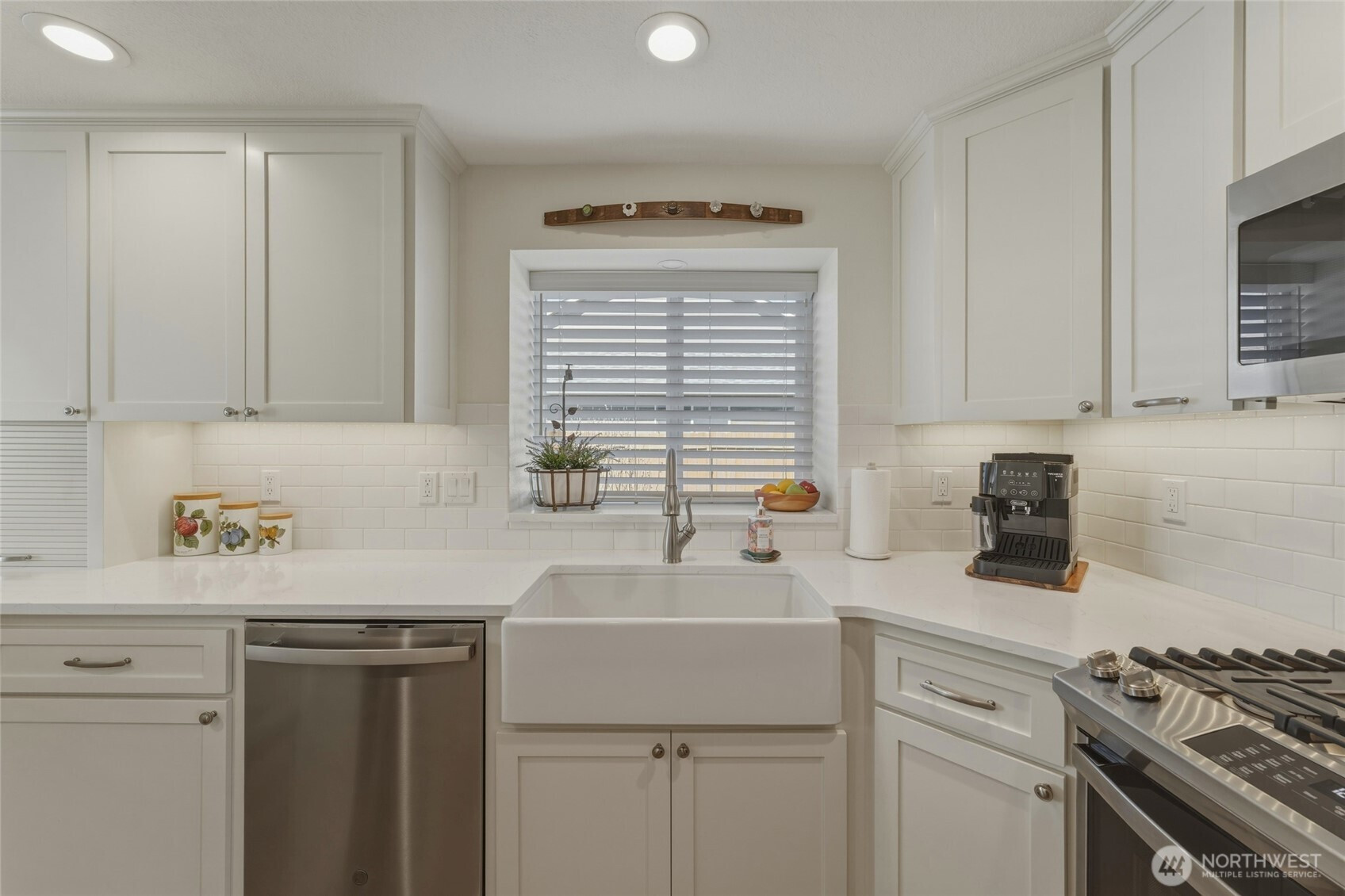 Step into Luxury with this completely high-end single-level home, where every detail has been thoughtfully upgraded. The stunning kitchen is a true showpiece; featuring custom cabinetry w/convenient pull-outs, elegant quartz countertops, a farmhouse sink, pantry space, under-cabinet lighting and premium GE Appliances including a 6 burner gas stove-perfect for both everyday living and entertaining. Both bathrooms have been beautifully remodeled with new cabinetry, dual sinks in primary, and large tiled showers with sleek sliding doors, creating spa-like retreats. The inviting great room offers a cozy gas fireplace, all new lighting, and a skylight's that fills the space w/natural sunlight. The floorplan flows seamlessly into the formal din rm which overlooks the newly landscaped backyard, complete w/pergola and new shed, making the perfect place for hosting gatherings or relaxing. Every room, (floors and walls) all feel like a brand new from the meticulous remodeling that include being freshly painted inside & out. Plus roof was replaced in 2020 and new hot water heater, providing peace of mind for years to come. Located in a fantastic area close to all amenities, and featuring access to a private community park. This gorgeous home truly has it all. Don't miss the opportunity to make it your forever home. Remember to request the full Featured List of all new upgrades making this home feel like brand new.