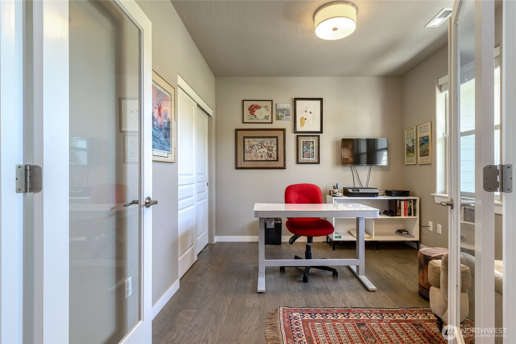 Stunning Single Story Custom home with ALL the UPGRADES available! Stacked rock on front of home showcasing the 3 car garage. Gracious entry opens to home office or 4th bedroom. Jack and Jill bedrooms share bathroom with tub/shower, quartz counters tile backsplash and double sinks. As you come into the common core of the home you will notice the beautiful morning light as you look to the East and the Blue Mountains. The perfect orientation to really enjoy the custom back patio. From your first cup of coffee to evening glass of wine and dining alfresco the back yard area is always inviting. Open and spacious the kitchen, living, dining share a door leading to back patio. Wall of bookcases in the living room for your collection of books or whatever your heart desires! Kitchen with plenty storage, center island and beautiful hard surfaces is inviting and great space to work together creating wonderful meals and memories. Primary is separated from other bedrooms giving all the privacy desired. Vaulted ceiling, large closet, garden tub and separate oversized shower make this your own "private retreat!" 3 car garage with extra long bay. Man door leading to back yard. This home is a Showstopper! Come take a look for yourself! 5 minutes to Country Club, schools and shopping. Great established neighborhood.
