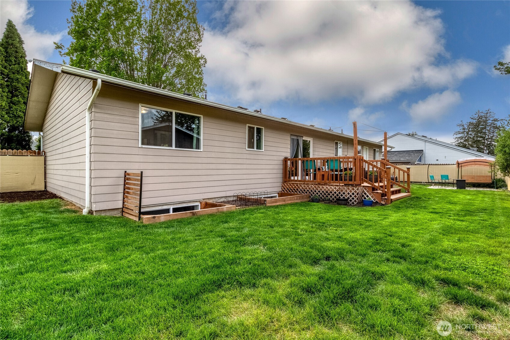 Spacious 5-bedroom, 3-bath home situated on a desirable corner lot in a quiet cul-de-sac. The main floor features a large, open living area, that flows seamlessly into the dining room and kitchen, perfect for gathering and entertaining, along with an oversized pantry and a generously sized laundry room. Three bedrooms are located on the main level, including the primary suite with a private ensuite bath, plus an additional full bathroom. The basement offers exceptional versatility with a large bonus room, a dedicated play or craft room, and two additional bedrooms featuring oversized egress windows that provide abundant natural light, along with an additional bathroom for added convenience. Recent updates include new siding, windows, garage door, furnace, and central A/C, fresh interior paint, and water heater, along with refreshed landscaping, and a new deck and patio—ideal for outdoor living and entertaining. The yard is fenced with underground sprinklers, with thoughtfully designed garden beds. Don't miss out on all this home has to offer! Call and schedule a private tour!