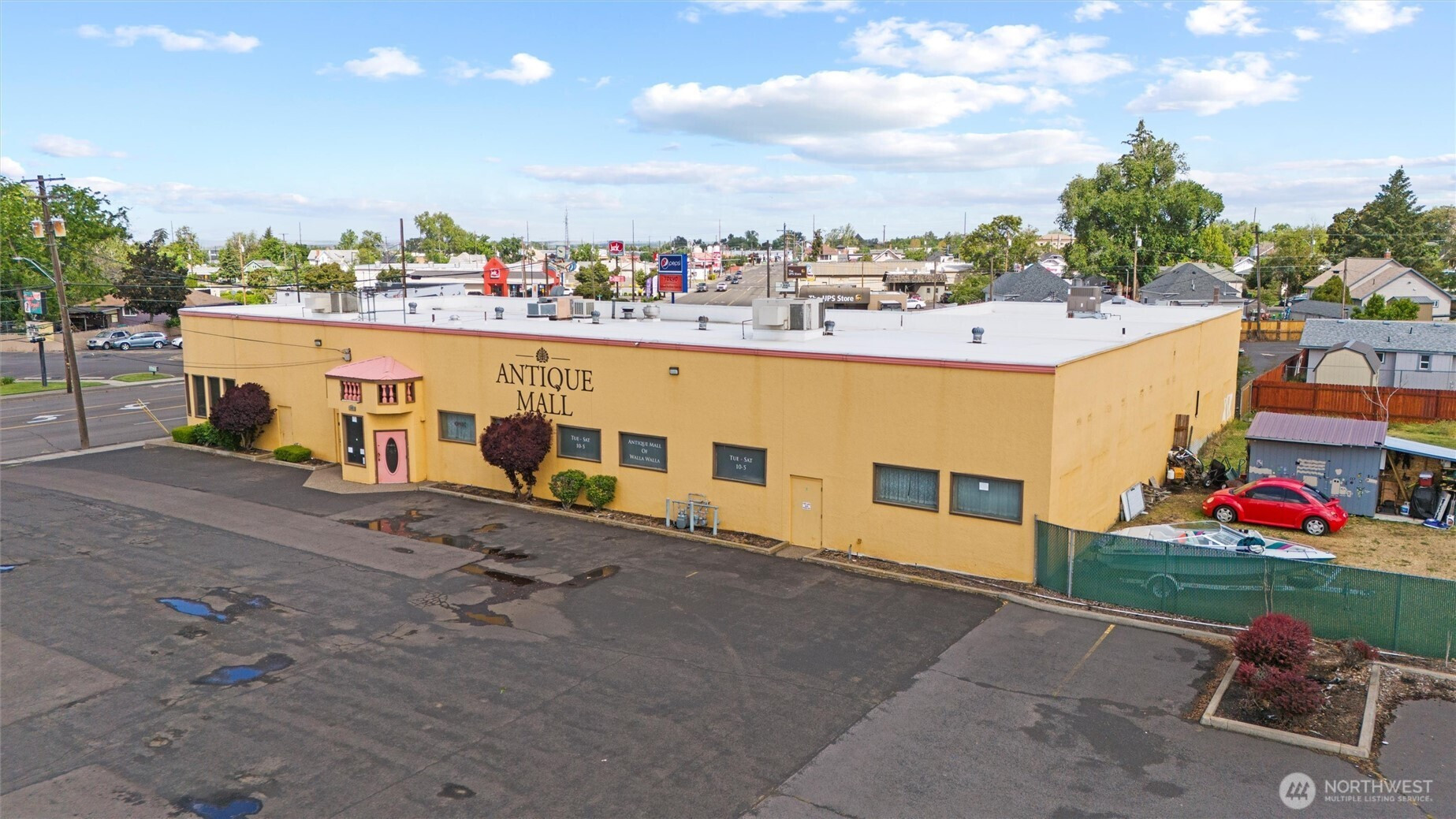 Exciting Commercial Property Investment Opportunity! Here is a rare chance to invest in a prime commercial property located on Walla Walla’s busiest corridor. This impressive 10,000+ square foot building is currently home to three thriving tenants: a popular restaurant, a charming antique mall, and a hair salon providing immediate cash flow. Additionally, the property boasts an additional 1292 square foot space, perfectly positioned for more tenants, allowing for further revenue potential. Situated on over half an acre of land this property features around 50 private parking spots. Its location promises exceptional visibility and fantastic signage opportunities for your future ventures.