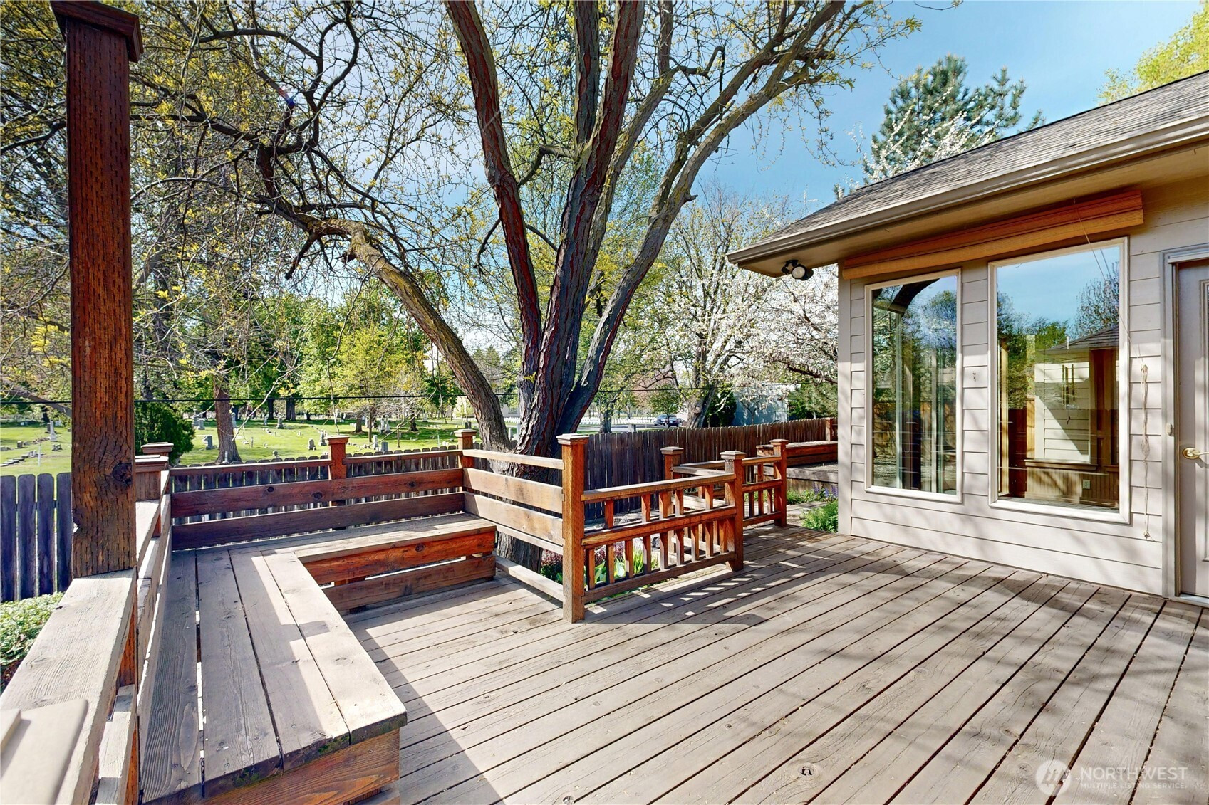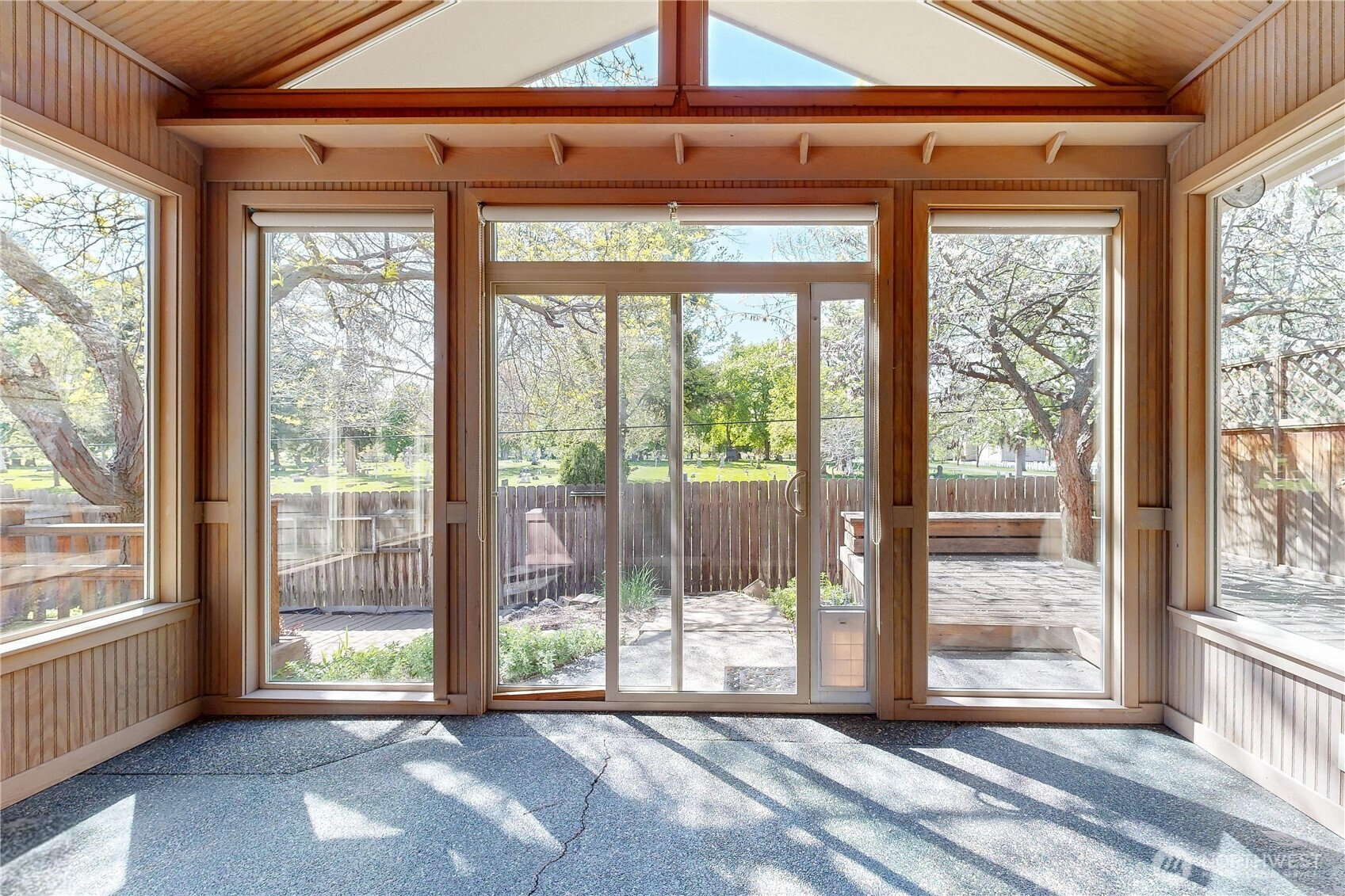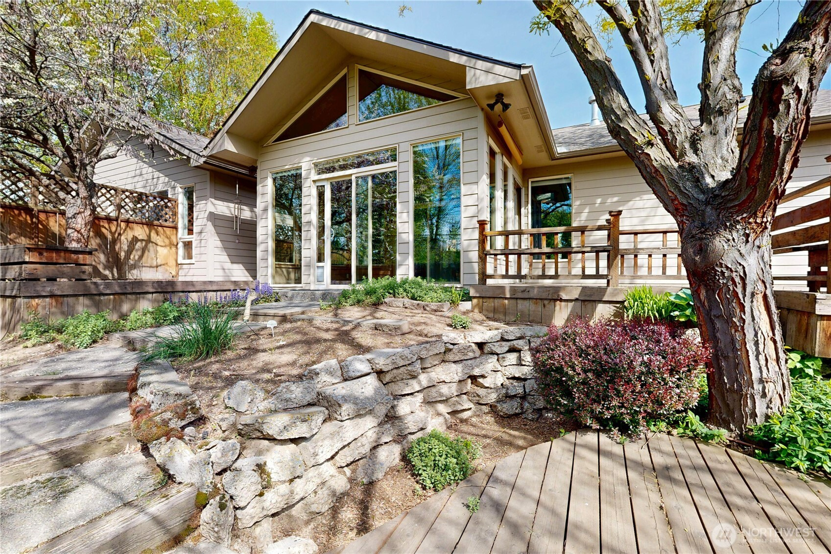 Tucked in tranquil Parkwood circle, this single-owner, single-level home offers easy living, thoughtfully designed for long-term comfort & accessibility. Enjoy a chef’s kitchen with restaurant-grade cooktop/hood, prep sink, and roll out shelving. It lives big with vaulted ceilings, a bright sunroom, hardwood floors, and fresh updates including paint & primary suite carpet. Master suite offers private sliding door patio or pad for hot tub. Major improvements: new roof (2024), water heater (2025), windows (2024), leaf filter gutters (2022), and refurbished deck (2024). Fully fenced, low-maintenance grounds with drip irrigation and established berries. A rare blend of privacy, function, and quality in a sought-after small neighborhood with a park-like setting.