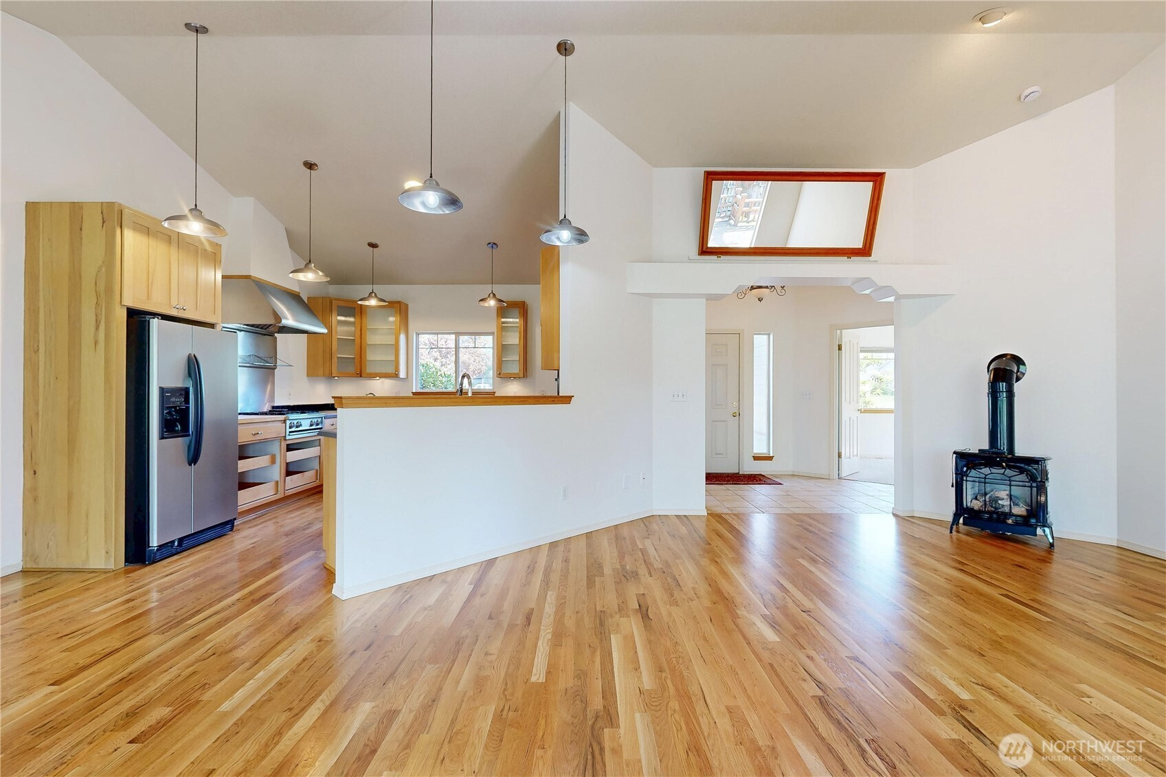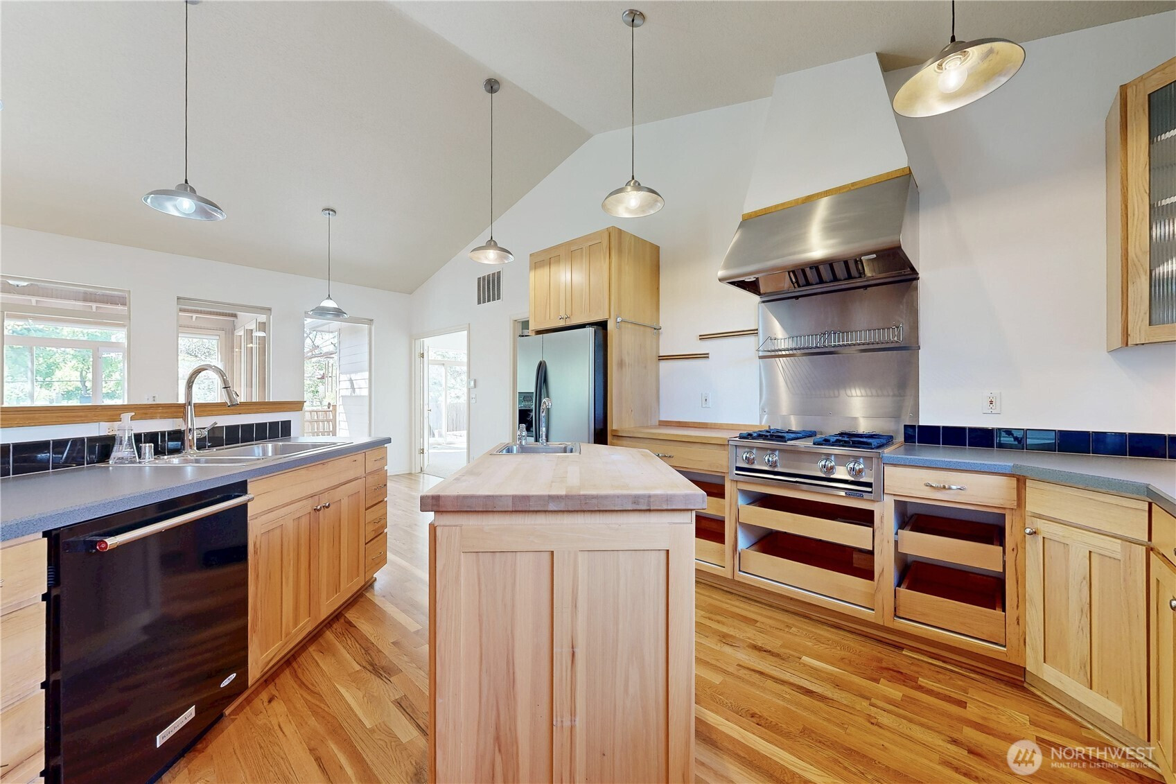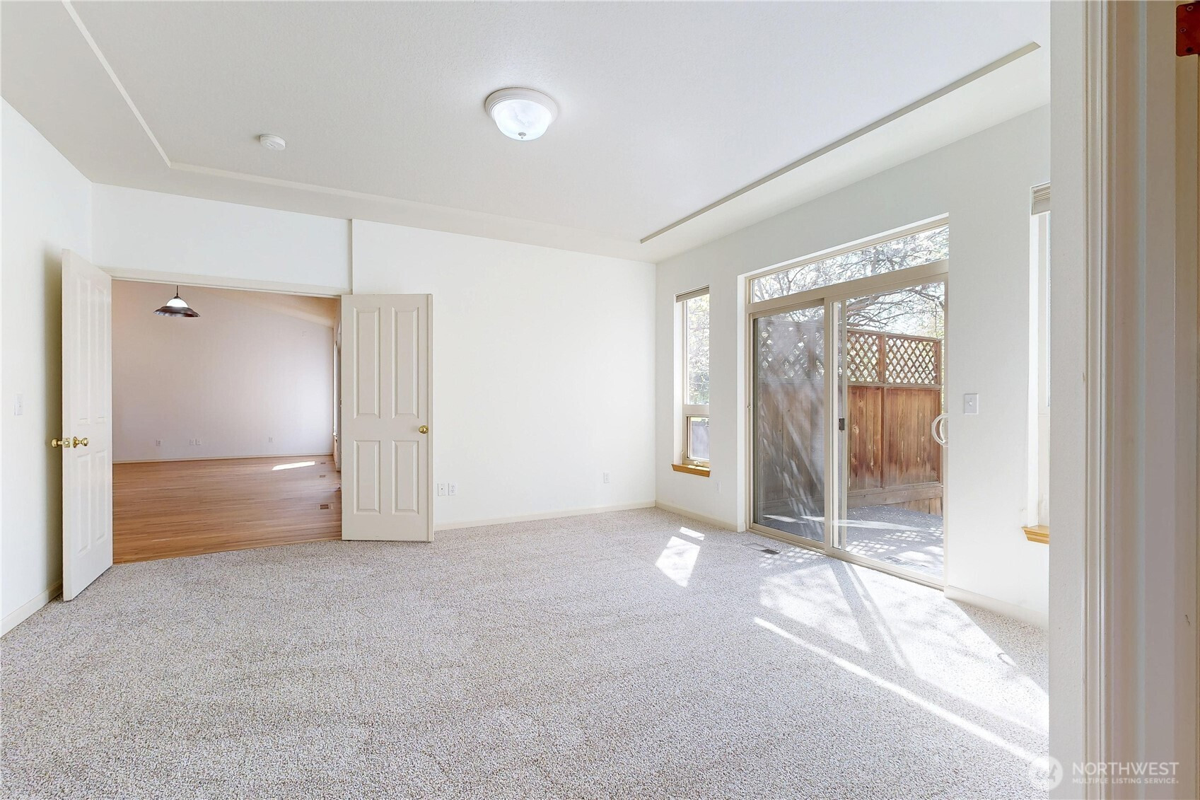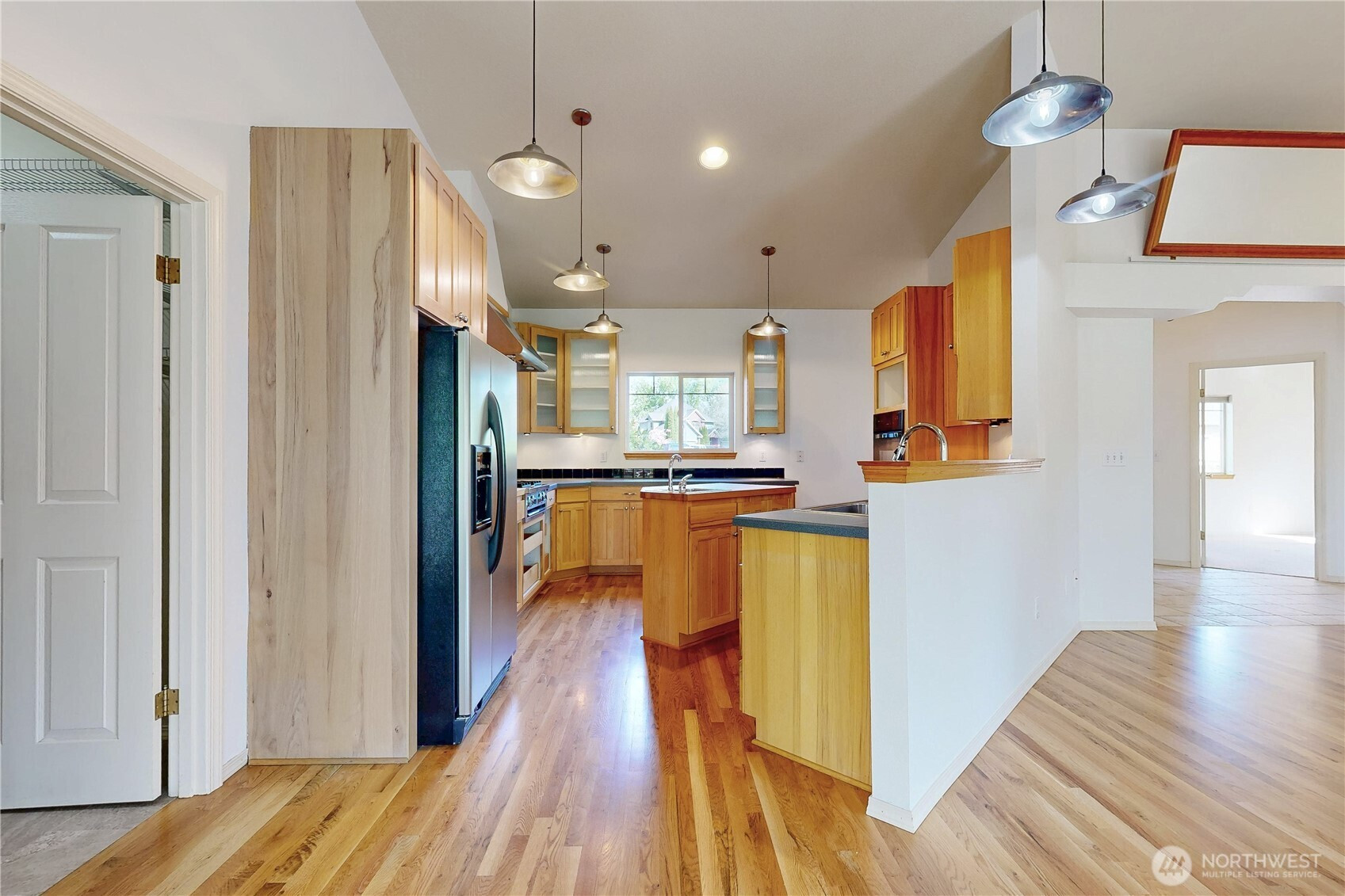 Tucked in tranquil Parkwood circle, this single-owner, single-level home offers easy living, thoughtfully designed for long-term comfort & accessibility. Enjoy a chef’s kitchen with restaurant-grade cooktop/hood, prep sink, and roll out shelving. It lives big with vaulted ceilings, a bright sunroom, hardwood floors, and fresh updates including paint & primary suite carpet. Master suite offers private sliding door patio or pad for hot tub. Major improvements: new roof (2024), water heater (2025), windows (2024), leaf filter gutters (2022), and refurbished deck (2024). Fully fenced, low-maintenance grounds with drip irrigation and established berries. A rare blend of privacy, function, and quality in a sought-after small neighborhood with a park-like setting.