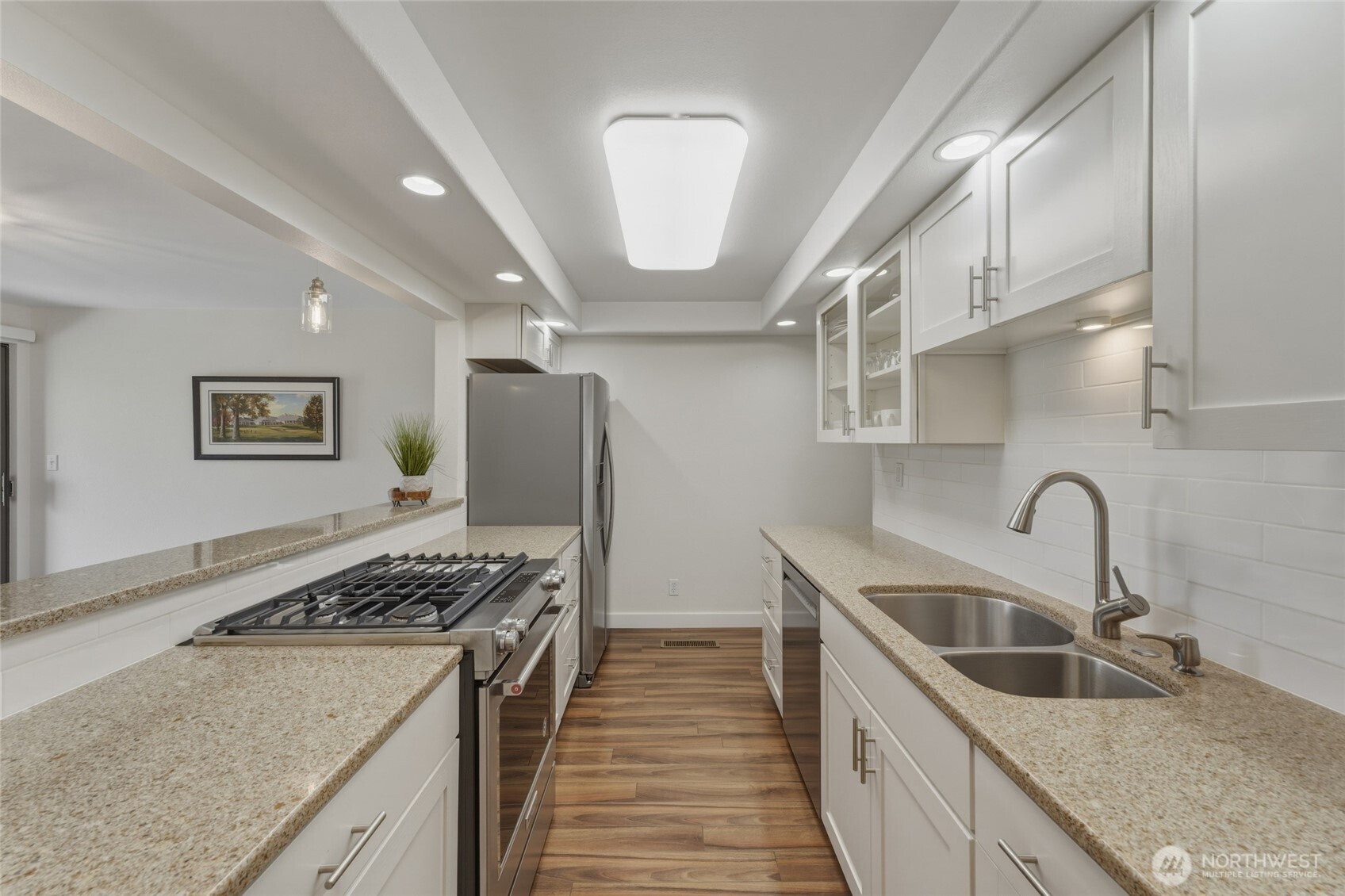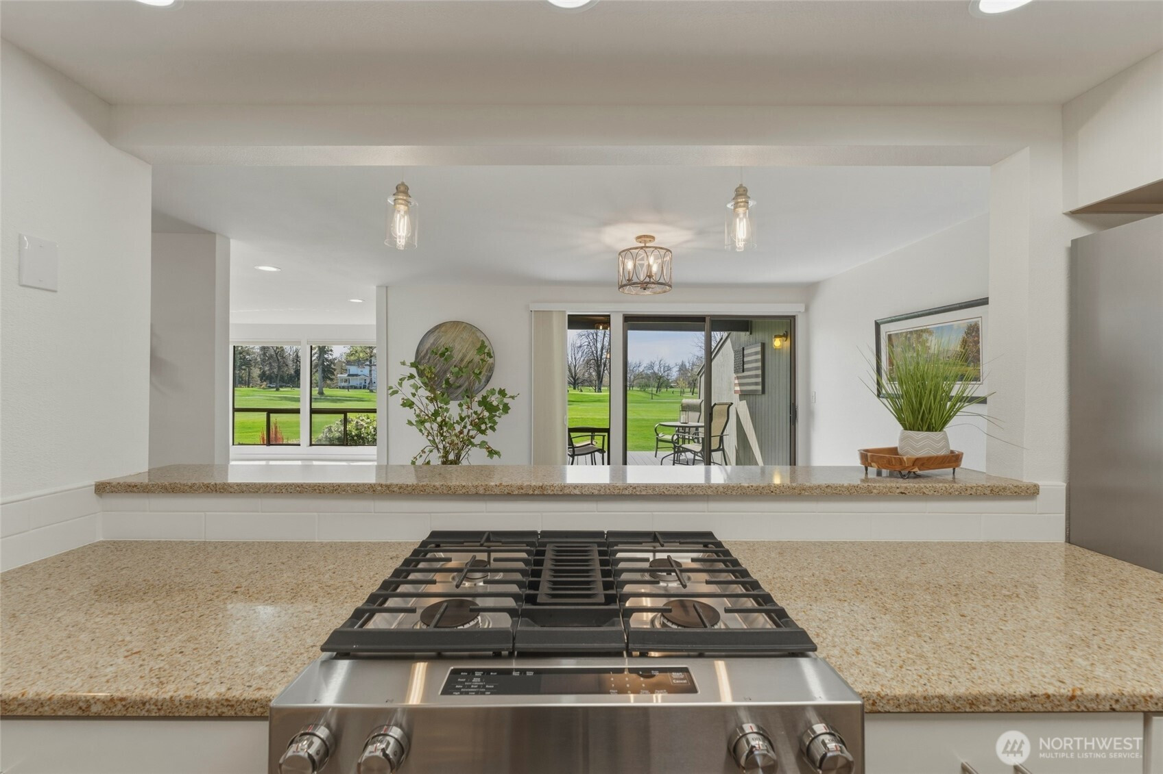 Coveted ground-level condo overlooking the golf course with panoramic views and easy, low-maintenance living. This beautifully updated 3-bedroom, 2-bath condo offers a desirable layout with space for guests plus a flexible office or den area. The updated kitchen is both stylish and functional, while the primary ensuite provides a beautifully refreshed private retreat. Enjoy seamless indoor-outdoor living with a back patio perfectly positioned for morning coffee, barbecuing, evening wine sipping, and taking in the stunning golf course setting. The private patio off the primary bedroom offers the ideal space to create your own peaceful zen garden escape. Residents also enjoy access to the community clubhouse, pool, and tennis courts. A wonderful opportunity to enjoy comfort, views, and easy-living amenities in a highly sought-after setting.