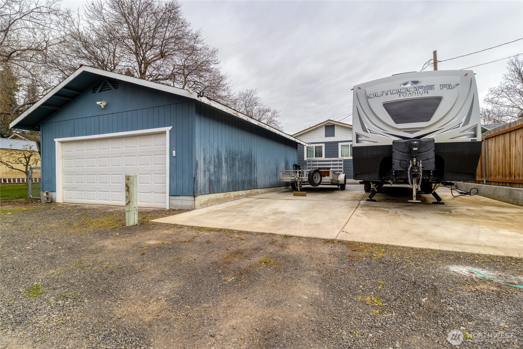 Charming single-level home located just minutes from downtown and shopping! This home features a double detached, insulated garage (660 sq ft) complete with a ductless mini-split and 220-volt outlet—perfect for projects, storage, or hobbies. Plenty of parking options, alley access, and space to accommodate an RV and all of your toys. Inside, you’ll find a functional layout with updates throughout, including new laminate flooring in the kitchen, and new quartz countertops in the kitchen. The large living room features a cozy wood-burning fireplace, creating a warm and inviting space to gather. The primary bedroom includes a walk-in closet plus updated primary bathroom. Enjoy outdoor living in the fully fenced, nicely landscaped yard with a covered patio—ideal for relaxing or entertaining. Major upgrades provide peace of mind and energy efficiency, including new furnace and AC (2024), siding (2022), new windows (2020), a new 50-year roof (2023), and solar panels for low power bills. This home offers a great combination of updates, efficiency, and space. Welcome home!