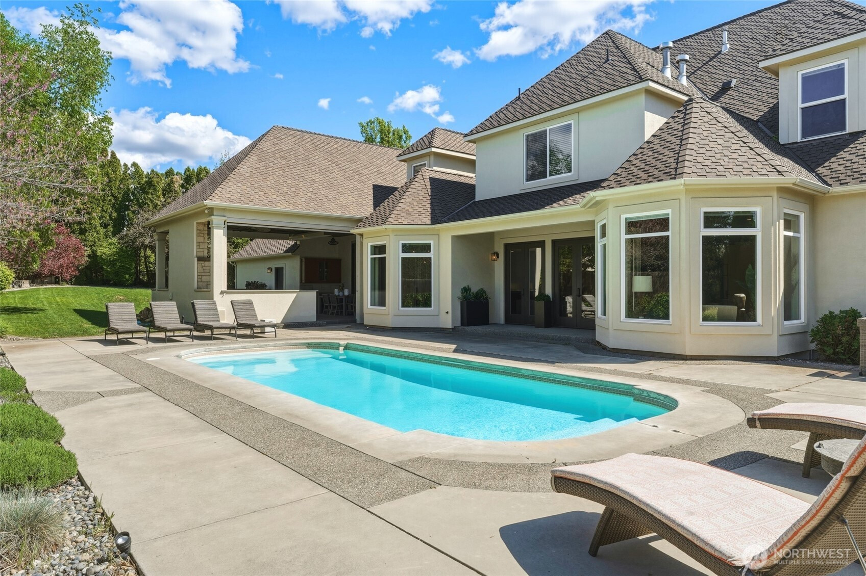Welcome to 73 Shangri La Court, a rare opportunity to own one of Walla Walla’s most refined in town estates. Perfectly located, this luxury residence offers an exceptional blend of privacy, scale, & refined living just minutes from downtown, schools, country club, wineries, & everyday amenities. Thoughtfully reimagined & extensively updated, every detail has been elevated creating a home that is both timeless & effortlessly livable. Designed for elevated living and seamless entertaining, the home showcases dramatic scale, soaring ceilings, rich hardwood floors, designer finishes, and layered architectural detail. The chef’s kitchen is a true showpiece featuring premium Wolf range, custom cabinetry, Miele double ovens, Sub-zero refrigerator, 2 dishwashers, ice machine, oversized island & seamless connection to gathering spaces both indoors & out. Truly an entertainer’s paradise, outdoors, the property lives like a private resort, where the covered living includes a gas fireplace, heaters, fans, full outdoor kitchen, gleaming pool, & pool bathroom all framed by mature landscaping. The main level primary suite is a sanctuary w/ fireplace, spa inspired bath, and 2 generous dressing rooms. 3 additional guest en-suites, & upper-level media retreat provide room to live beautifully. Wine cellar, fitness room, 3 car garage, luxurious laundry room & low maintenance landscaping complete the package. A rare offering. Move in and begin living your next chapter immediately.