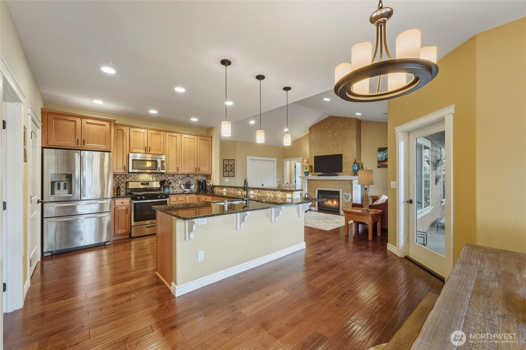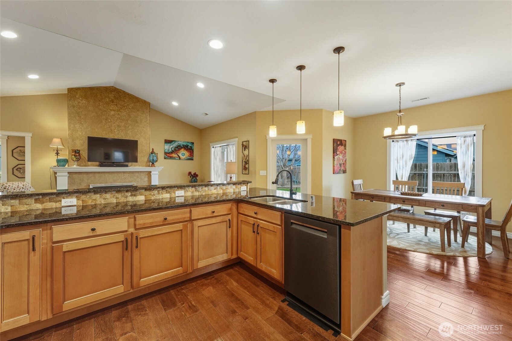 If you’re ready to buy and want quality without the projects, this custom-built, one-level home delivers. The open floorplan features vaulted ceilings, an upgraded trim package, and refined finishes throughout, including a well-appointed kitchen with granite countertops, engineered wood flooring in the main living areas, and a striking gas fireplace—perfect for cozy evenings or holiday gatherings. The spacious primary suite includes a zero-entry shower, ensuite bath, and large walk-in closet. Four bedrooms offer flexibility, including one with French doors ideal for an office, library, or music room. No steps throughout provide easy living. Enjoy outdoor comfort on the covered patio. Well-built, low maintenance, move-in ready!