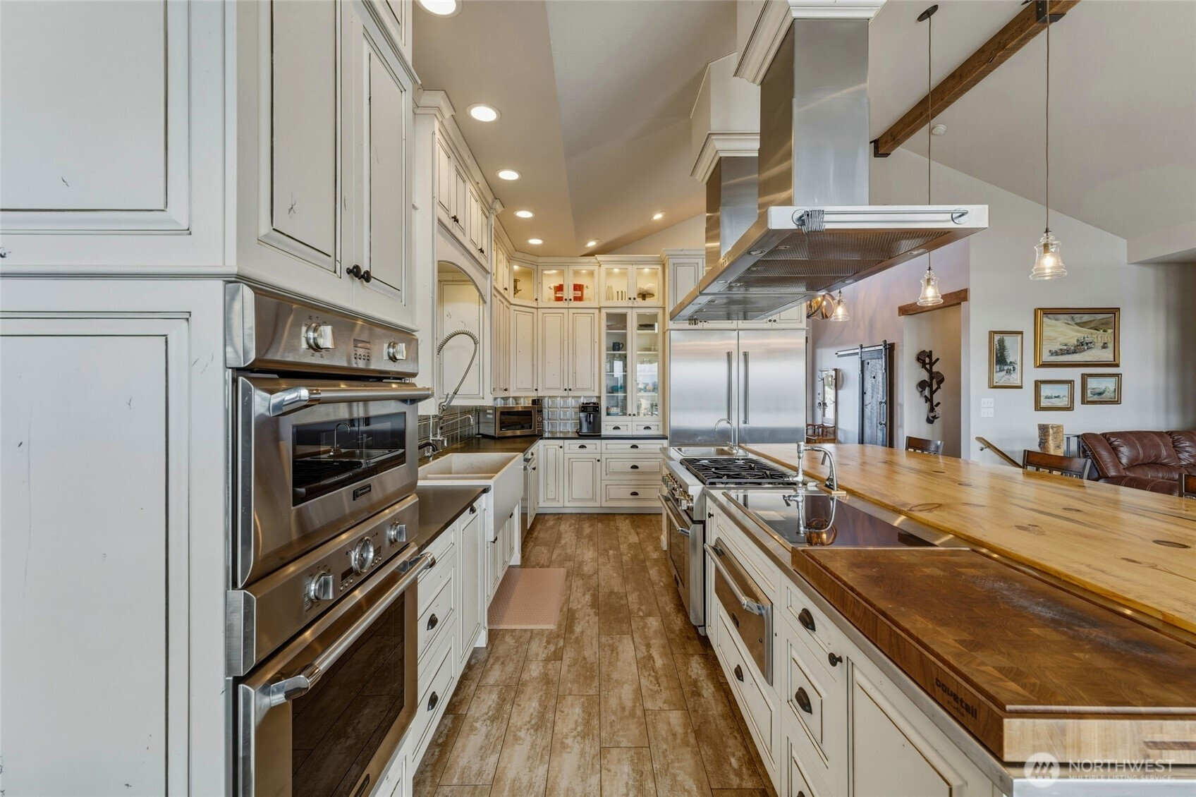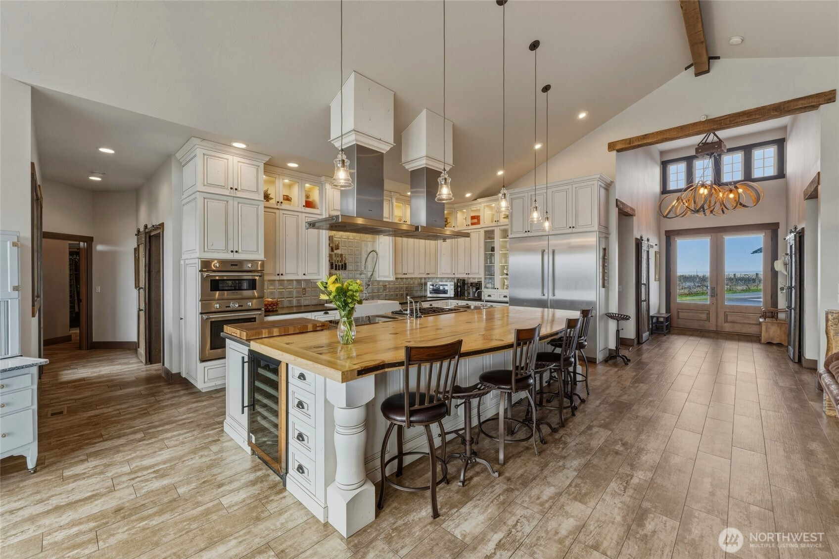 Welcome to this stunning N.W. Contemporary 'Architectural Farm-House Masterpiece', that perfectly marries the warmth of old growth timber w/the beauty of the great outdoors, creating an extraordinary sanctuary. Nestled on a sprawling 36.87 Acres w/Senior Water Rights,' this Estate boasts views of the Blue Mt Range & scenic Walla Walla Valley. As you approach the home, you are greeted by a charming 360-degree wrap-around porch that invites you to explore the 4,145 sq ft home. Step inside, the foyer opens to a grand view across the spacious great-rm & Chief Designed Kitchen, framed by a full bank of southern windows that showcase breathtaking Mt Vista's & overlook an 8+ Acre Vineyard. The reclaimed wood accents have been thoughtfully restored from 1882 & enhance the stairway, barn doors, F.P. mantle, & beams that exude rustic charm. The thoughtfully designed fl plan facilitates effortless entertaining & family living. This remarkable estate features 2 Luxurious Primary Suites, each offering dedicated deck views & spacious walk-in-closets, plus one suite with a handsome fireplace. 3 additional generously sized bd rms provide ample space for everyone. The expansive Acreage is fenced & cross-fenced & features a (2,592' Barn), (2,400' Shop) & (1,344' garage w/work-out gym & work-shop). Truly a once in a lifetime opportunity to own a blend of luxury, nature & functionality. Be sure to request the full Feature List to discover all the exceptional details this property has to offer.