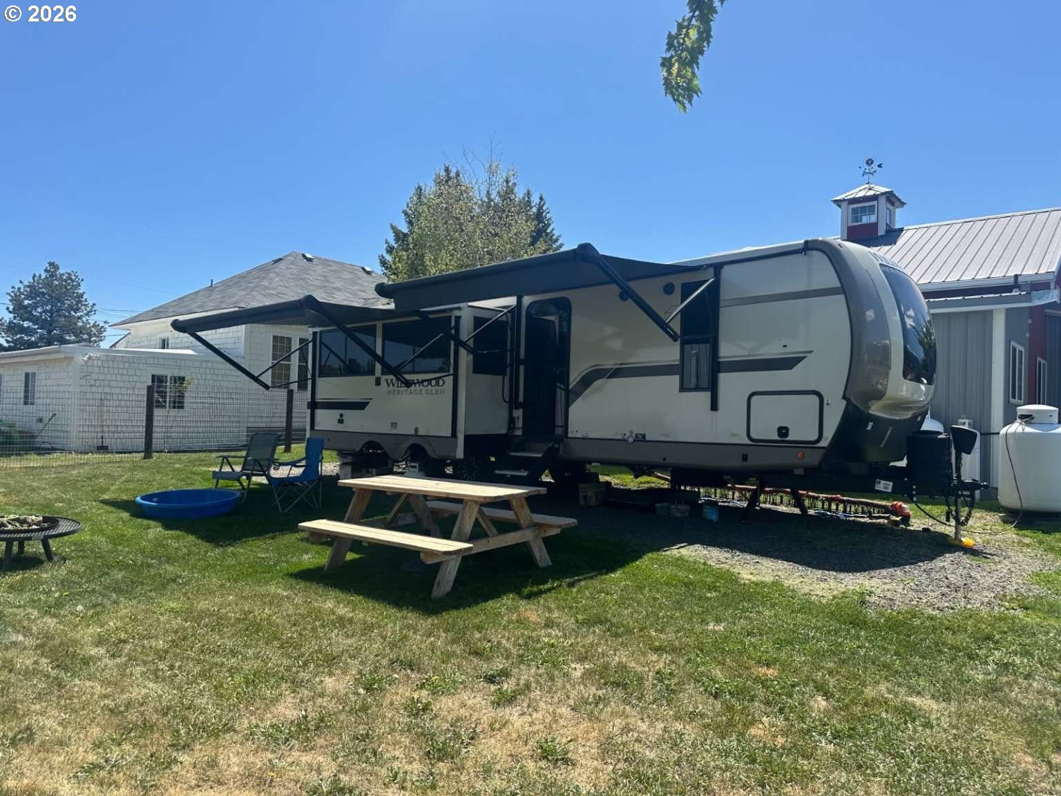 Residential/Commercial Property for sale in beautiful Enterprise, OR!With views of the Wallowa Mountains and walking distance to downtown, grocery stores, and the hospital, this versatile residential/commercial property boasts stunning mountain views and is ideally situated next to the fairgrounds which hosts many events throughout the year.The 720 sqft metal building was built in 2013 and has been updated with a restroom, office space, and prep kitchen. Recently home to an established business, there are many existing fixtures, such as handwashing sinks and a 3-compartment commercial sink, in the prep kitchen. The metal building is climate controlled with a new heat pump that was installed in summer 2025. This space is perfect for launching or expanding your business. Whether you envision a retail shop, food service, or creative studio, this space is perfect!A 2024 Forest River RV sits on a 17' x 35' crushed rock pad located at the rear of the property complete with full water, sewer, and electric hookups originally designed for a tiny home. The 27-foot RV has a rear living area with two slide outs and a spacious pantry. There is ample storage both inside and out including 3 closets in the queen-sized bedroom and pass-through storage under the bed. The bathroom hosts a stand-up shower, toilet, and vanity.All of this and a spacious yard with maple trees are surrounded by beautiful mountain views and a split rail fence. Live on-site while you build, run your business, or both!Serious Inquiries only please.