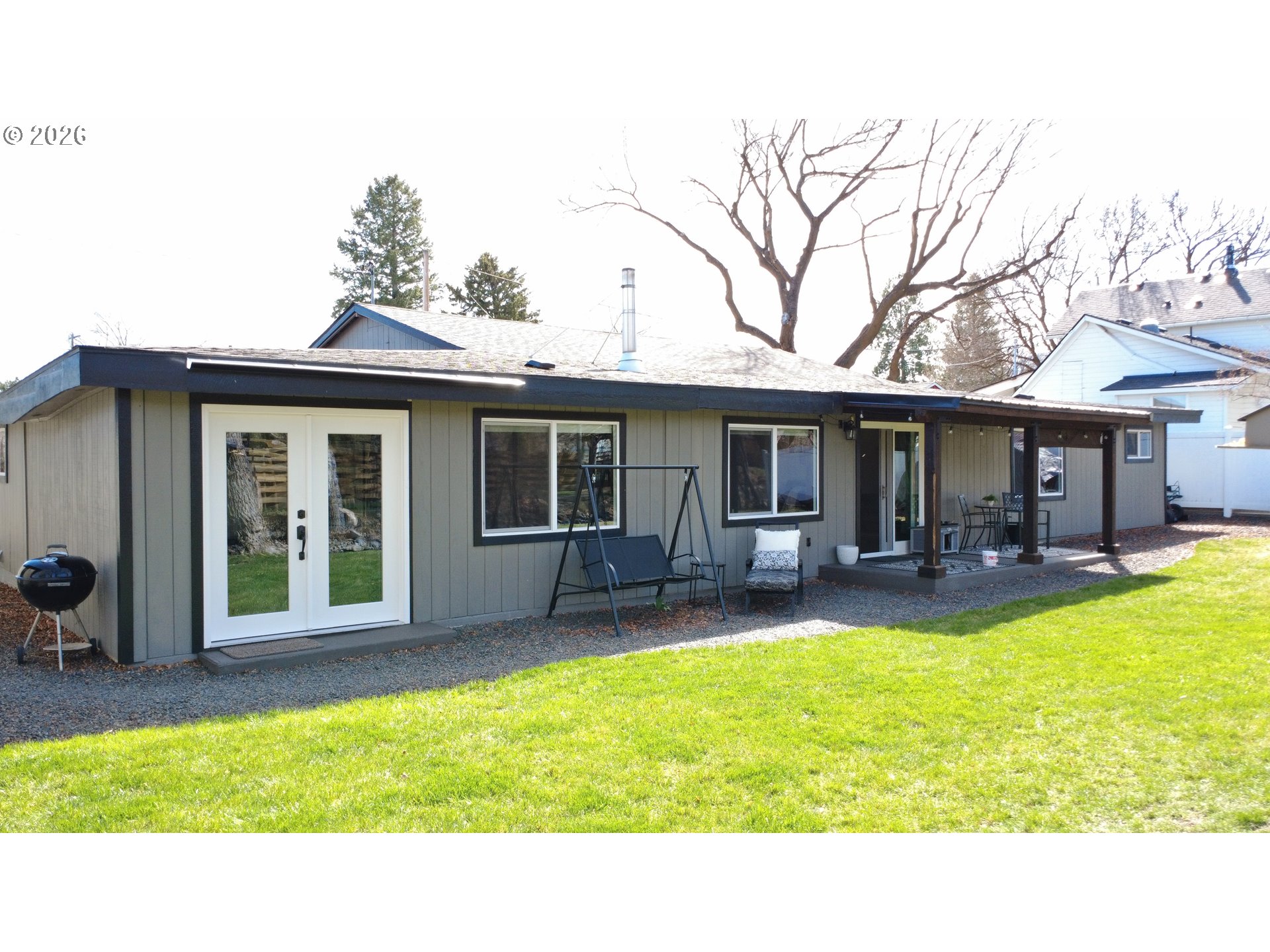 Charming 4-bedroom home with scenic parklike backyard. Nestled in a great city location, this completely remodeled residence offers a perfect blend of style and functionality, making it an ideal sanctuary for families and nature enthusiasts alike. This inviting home features 4 generously sized bedrooms and 2 well-appointed bathrooms, providing ample space for family living and guests. Each room is designed to maximize comfort and ease, ensuring everyone feels right at home. Brand new kitchen outfitted with sleek countertops and an abundance of cabinetry. Stylish interior with new flooring and windows that flood the space with natural light, creating a warm and welcoming atmosphere. The freshly painted walls and new doors add to the modern allure, making it easy for you to personalize and make it your own. Step outside into an enchanting park-like setting that features a tranquil creek flowing through the backyard. Imagine spending your evenings unwinding by the water, hosting summer barbecues, or simply soaking in the mountain views that serve as a beautiful backdrop. The property includes a spacious detached garage, providing convenient parking and RV hookup. Located in a desirable area, this home is just minutes away from city amenities; including shopping, dining, parks and schools. Enjoy the best of both worlds with easy access to all of the outdoor activities that Eastern Oregon is famous for. Don't miss your chance to own this beautifully remodeled home with its captivating features and stunning outdoor space. Schedule your private tour today.