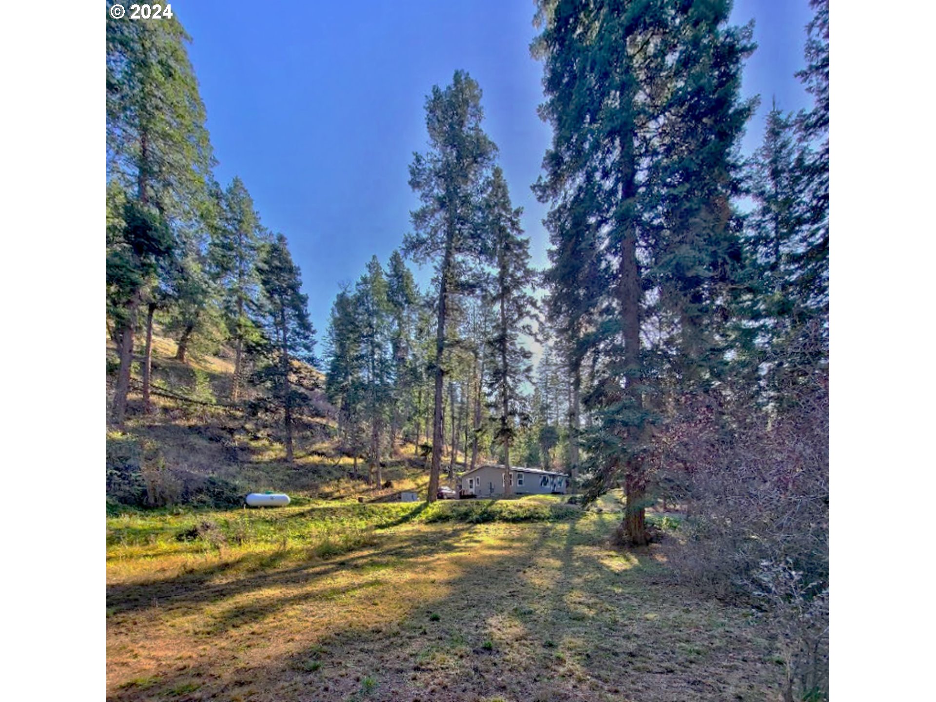 A filtered view of the beautiful Imnaha River. This 'Park Like' property has beautiful trees and a view across the canyon. A quality built Modular that the County has as a Class 3 home. It is high quality and set up for energy efficency. Even a fireplace. Yes it is remote living but it is worth all it provides. The property adjoins US Forest Service lands. Hunting, Fishing, Recreation for you. Possible Owner Carry Terms OAC.