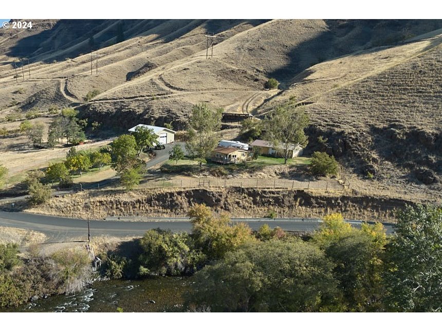 Immerse yourself in the slower way of life near Imnaha. 21± acres with fishing and plentiful recreational opportunities nearby. The house sits on a hill to take advantage of the incredible views of the Imnaha River and canyon bluffs, while the property boundary extends down to the river. Peaceful and tranquil setting. Take advantage of the warmer climate that the canyon provides, meaning less snow and a longer growing season. Yard area has 6’ animal-fencing and a power driveway gate, and there are mature trees such as Walnut, apricot, and Asian pear. House has 2 bedrooms, 2 bathrooms, an extra storage room, deck and attached carport. There is also a detached garage with one insulated garage bay and a finished heated/cooled bonus space that is currently used as a craft room. The shop is impressive with double-layer galvanized steel measuring 36’ x 48’ for a total of 1,728 sq.ft. Features include a 12’x14’ garage door, 10” thick walls and 12” thick ceiling, which are fully-insulated, and two sources of heat: a woodstove and Laser oil heater. Full-service RV hookup with 30-amp electric plug and sewer dump. House is on a well and water softener system and is wired for generator back-up. The septic system was replaced about 8 years ago, roof replaced about 6 years ago, furnace and heat pump are about 5 years old, and the house is freshly painted. Shared irrigation system with the neighbor, with some water rights from the Imnaha River. Pump house at the river and irrigation handline included. Property is about a ten minute drive from the town of Imnaha or a one hour drive from Enterprise, with paved access the entire way.