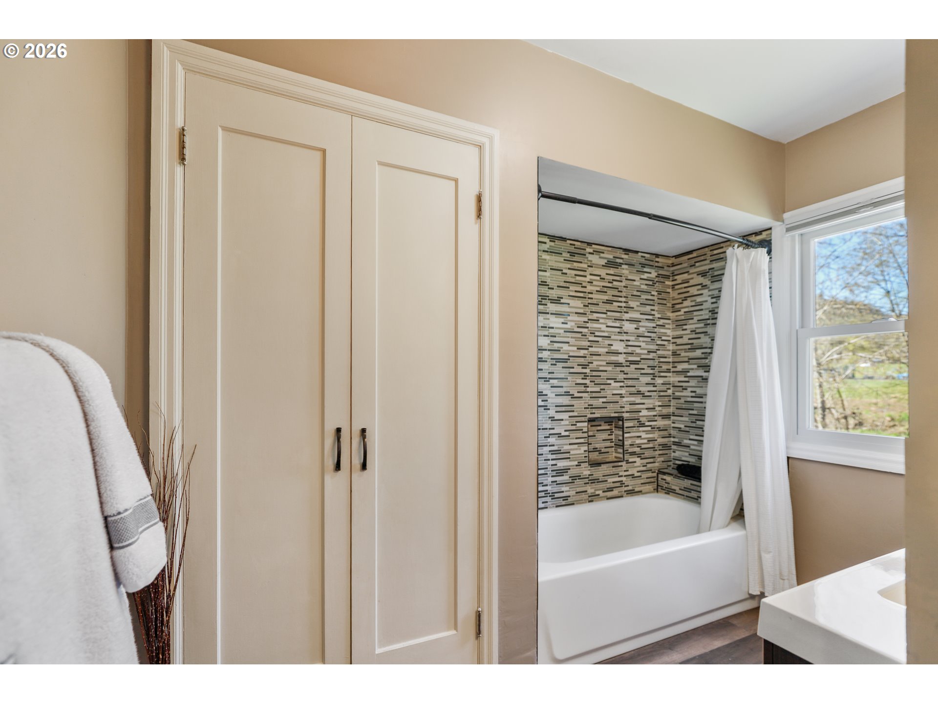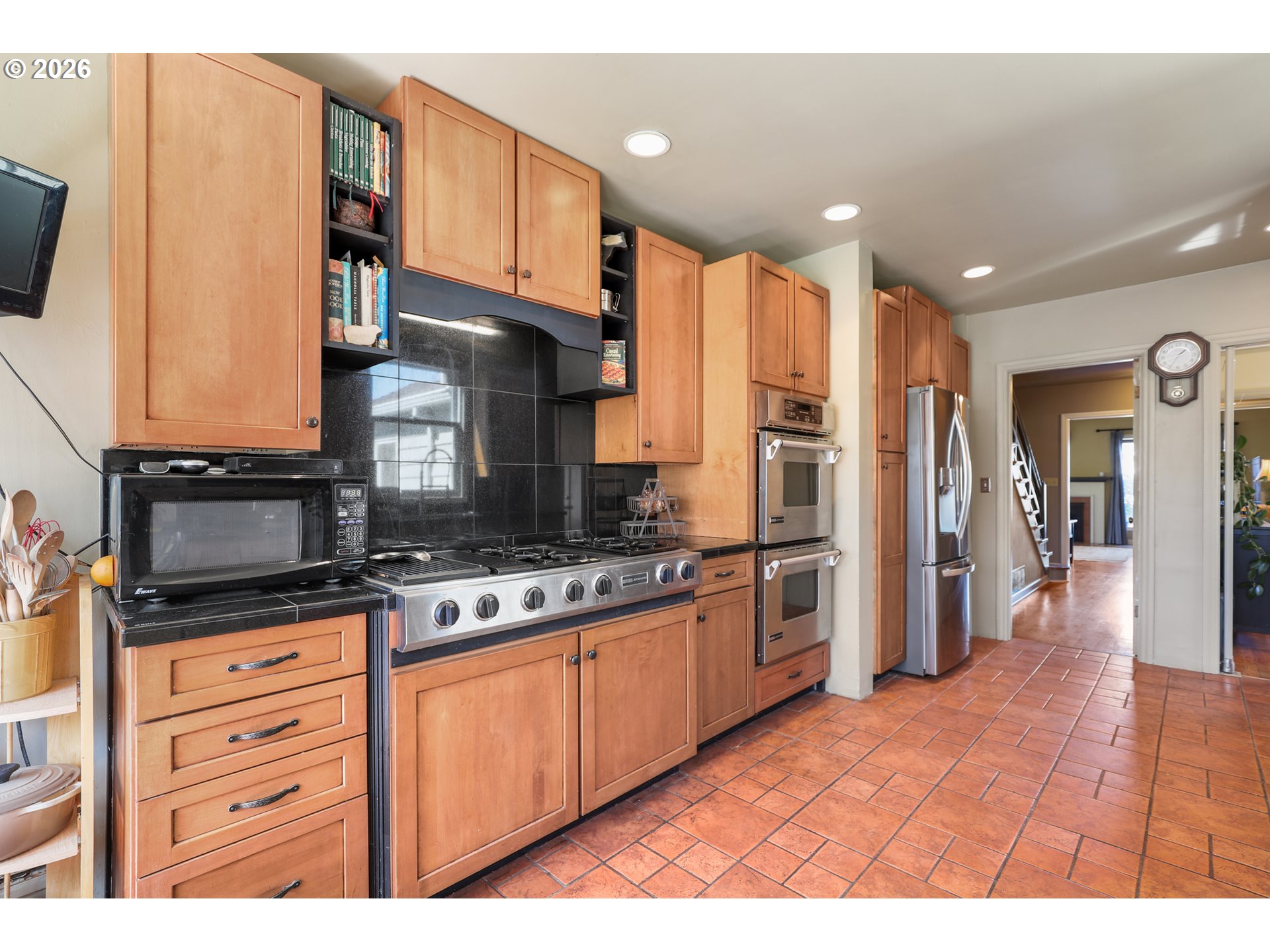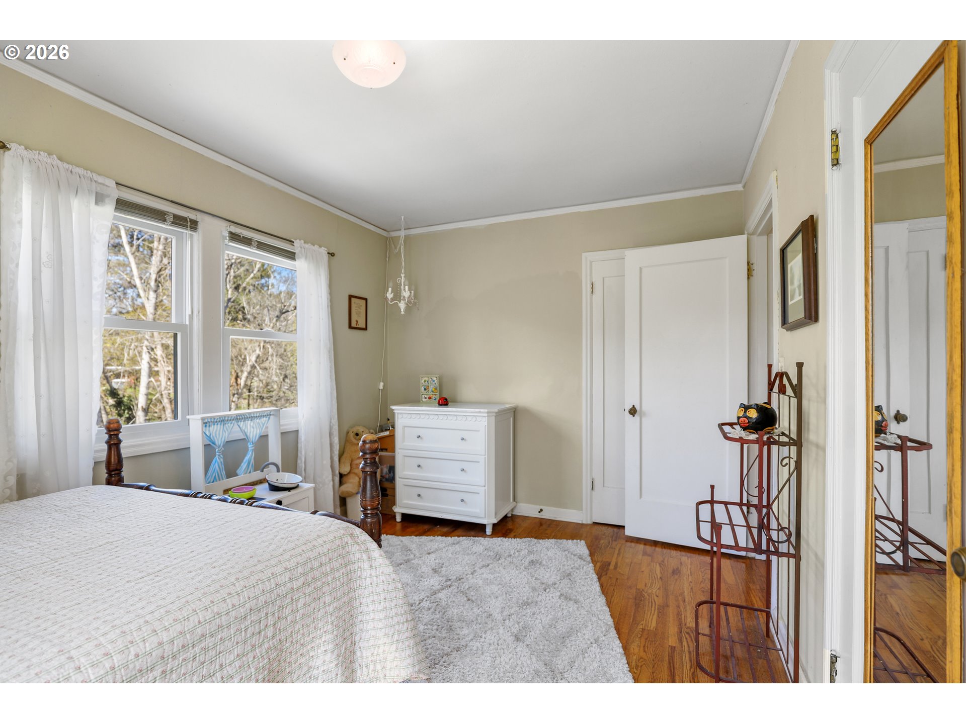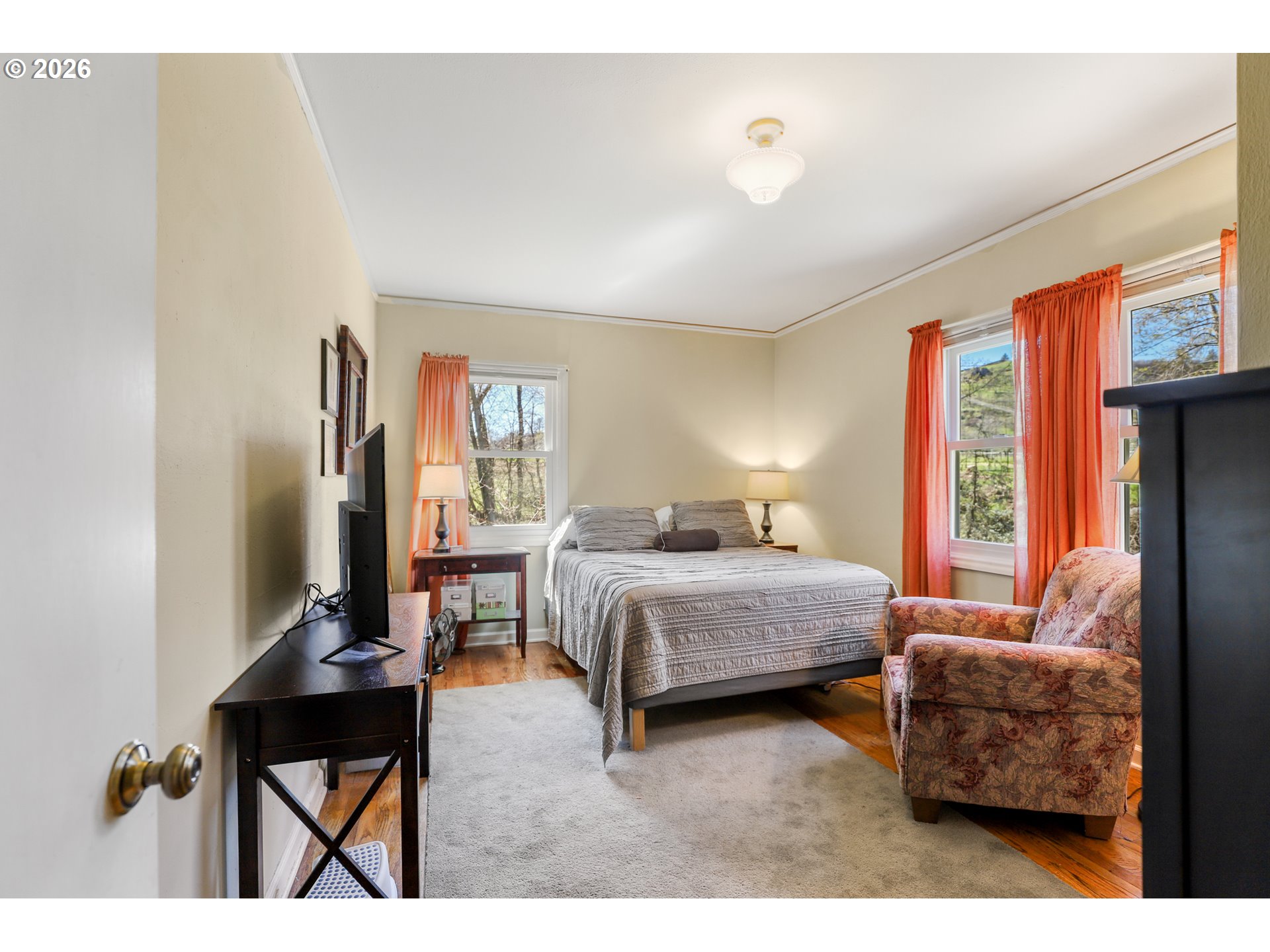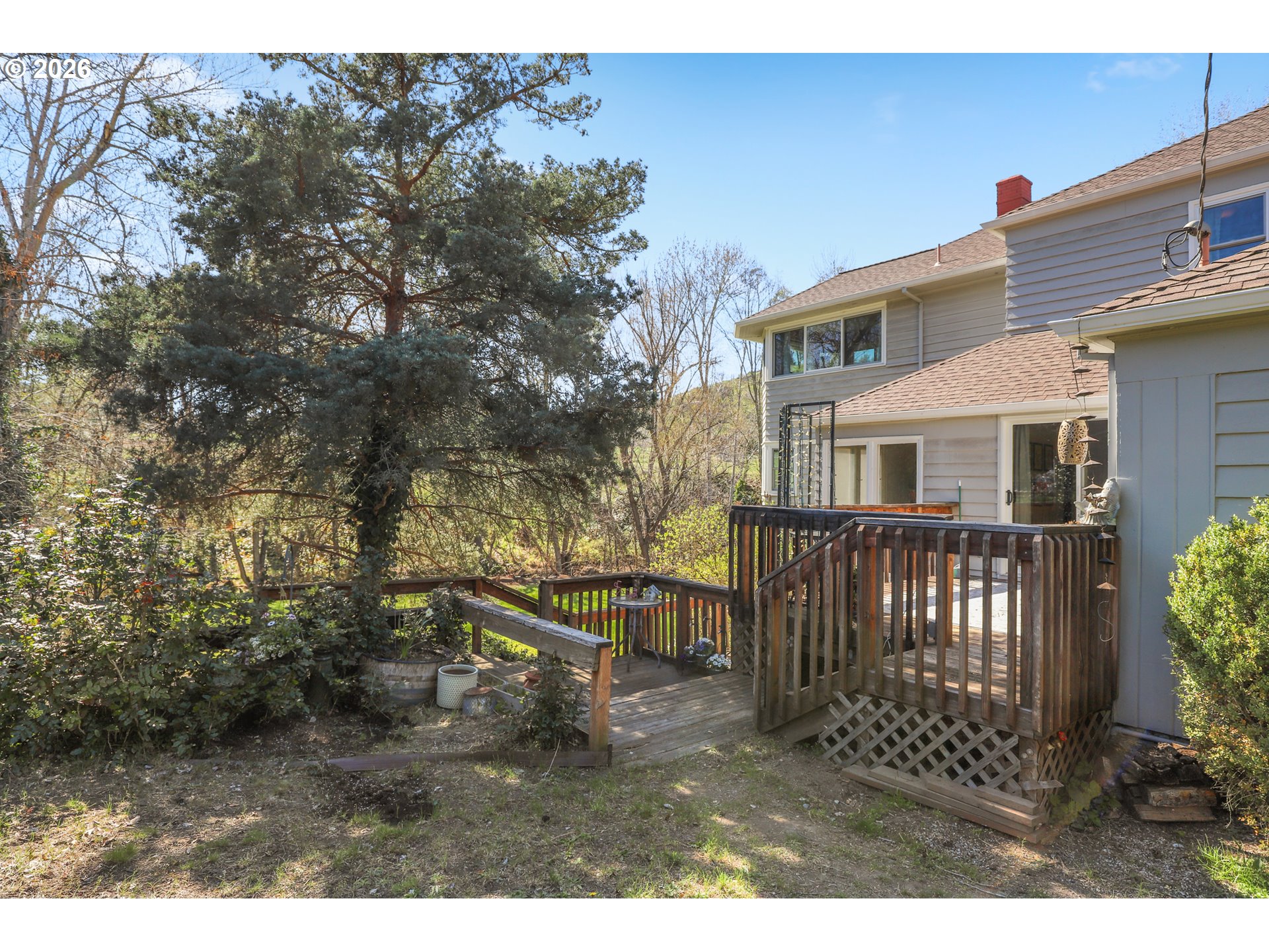 (503) 893-8874Classic 1930s home perched above Mill Creek. This home includes many custom features from the era, including hardwood floors on both the main and upper floors, laundry chutes, numerous closets, and built-in storage. The covered porch entry allows access from the garage to the front door. A nice foyer enters the formal living room and common halls, leading to the kitchen, the open stairway to the upper level, and the office at the base of the stairs.The spacious formal living area has abundant natural light and a view of Mill Creek from the "piano" nook. There is also a lovely fireplace flanked by two picture windows.The formal dining room is situated between the living room and the kitchen, it features corner cabinets for storing collectibles or your fine china and a sliding door that leads to the deck for outdoor entertaining.The kitchen has been updated with heated tile floors, granite countertops, cherry cabinetry and Jenn-Air built in ovens and a gas cooktop with a grill feature. Banquet seating with a wall of windows overlooks the creek at the back of the kitchen. Around the corner from the kitchen is a nice-sized bedroom with a creek view and a full bathroom featuring a tile shower.An open banister leads upstairs to four more bedrooms with views. Hardwood floors are throughout this level and there is one and a half bathrooms. The spacious primary suite includes two separate closets, one of which is a walk-in closet. This bedroom is filled with natural light, could also serve as a second family room and has balcony access overlooking the creek. The half bath is easily accessed from this primary suite.From the kitchen there is access to the stairway leading to the exterior access for the lower-level deck and a few more steps to the basement. This stairwell serves as an atrium, featuring numerous windows and lovely plants. This outside access allows entry to the basement without coming through the house. The basement features a full bathroom with a tile