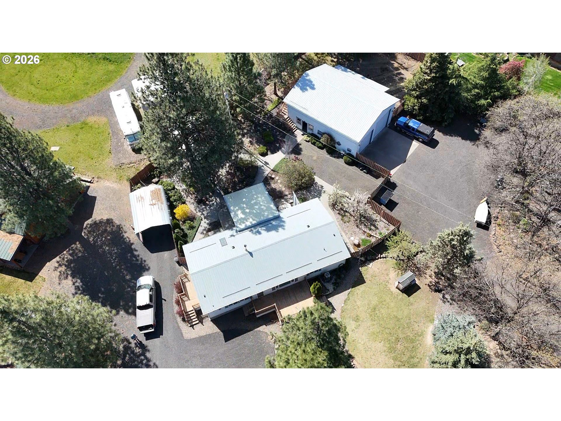 Your opportunity to purchase two full lots at Pine Hollow Reservoir. One lot has a nicely landscaped 2001 manufactured home, well maintained. The roof was replaced in 2025 and the hot water heater was replaced in March 2026. The adjoining lot has a high ceiling 30'x40' RV barn with enclosed woodshop. just a few steps from Pine Hollow's park, boat ramp and fire station. Pine Meadow Golf Course is just south of the home Pine Hollow Reservoir is an outdoor lover paradise. Mt Hood National Forest to the west Deschutes and the Columbia River activities waiting for you. Boating, golf are at your doorstep. This is the "dry side of the Cascades. Investing in this recreational community will reward you, your family and friends with recreational. If you are looking for lots of recreational activities and living options this is for you. Now make it yours.