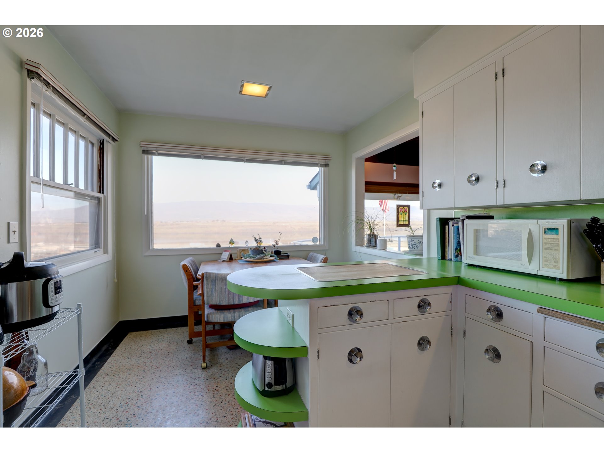 (503) 893-8874Perched on a bluff overlooking the town, this 1932 Tudor-style home showcases timeless craftsmanship and custom details throughout. The views of the Columbia River and Washington hills are breathtaking. Beautifully refinished original hardwood floors, picture molding and a leaded glass window in the entry coat closet is the first glance of classic features. The hardwood floors flow through the formal living room and two of the bedrooms. The formal living room has a fireplace flanked by two wood framed windows with four pane detail at the top. The fireplace surround has been tastefully updated withnatural stone tile.One of the three bedrooms enters from this living space. Each bedroom has an ensuite bathroom which is quite convenient and unique two of the three have walk-in closets. The primary suite has windows facing the views, lots of custom built-ins and twp cedar lined closets. The hallway has a built-in bookshelf and alcove for artwork and arched doorways add to this list of charming things. The dining room has two built in glass front cabinets for your fine china or nic-nacs. Through the dining room onto the kitchen with a wall of windows facing the views of the river and city from the breakfast nook. What a wonderful space to wake up to every day! The kitchen is a time capsule of the mid-century modern era with solid wood cabinets (painted white) and round chrome drawer/door pulls. The green countertops and painted white cabinetry are bright and cheery. The kitchen is an efficient work space that overlooks the spacious family room, making it easy for conversation and entertaining even while doing dishes.This family room is just a couple steps down from the kitchen, dining and formal living room. The family room has open beam ceiling, soffit lighting, a stone hearth for a freestanding woodstove and a large wood framed sliding glass door to the composite deck. This deck is great for outdoor entertaining with custom glass surround.