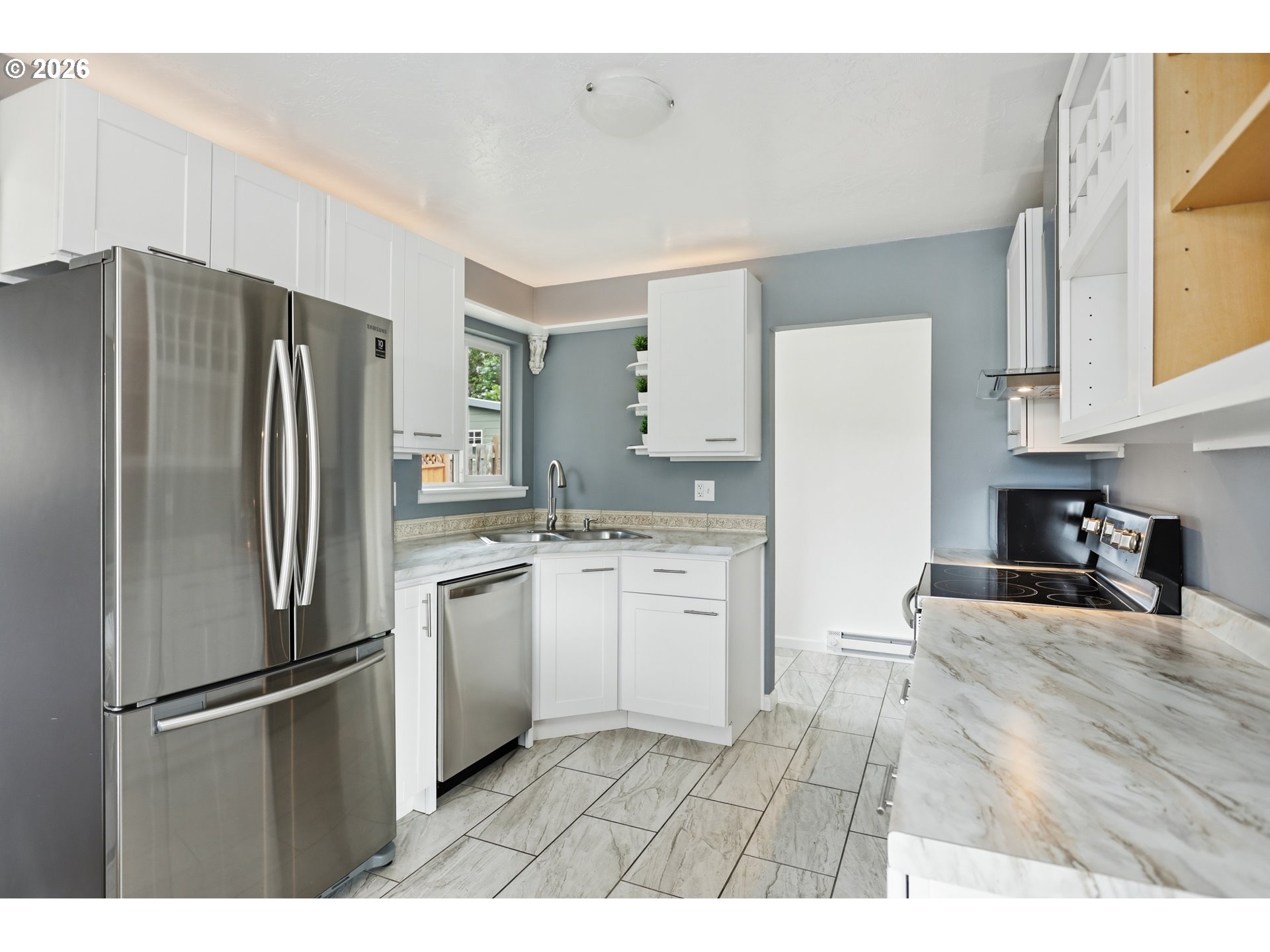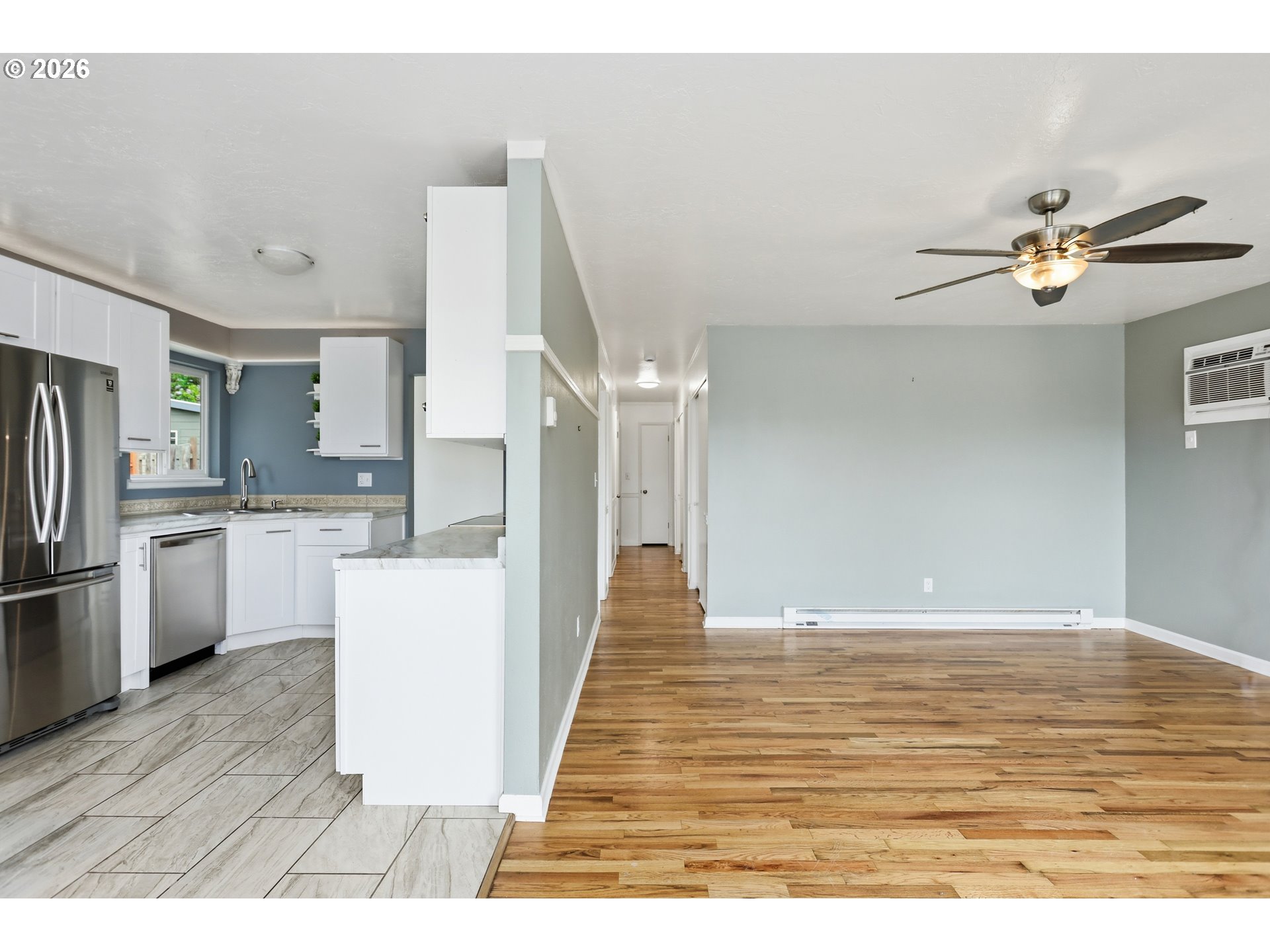 Updated 3 bed, 2 bath home offering 1,649 SQFT of comfortable living space. Beautiful hardwood floors and a large picture window fill the living room with natural light. Updated, functional kitchen features tile flooring and stainless steel appliances. Spacious bonus/family room with sliding glass door provides great flex space for entertaining or relaxing. Primary suite includes a private bathroom. Exterior has a sprinkler system, patio in backyard and a private yard space.